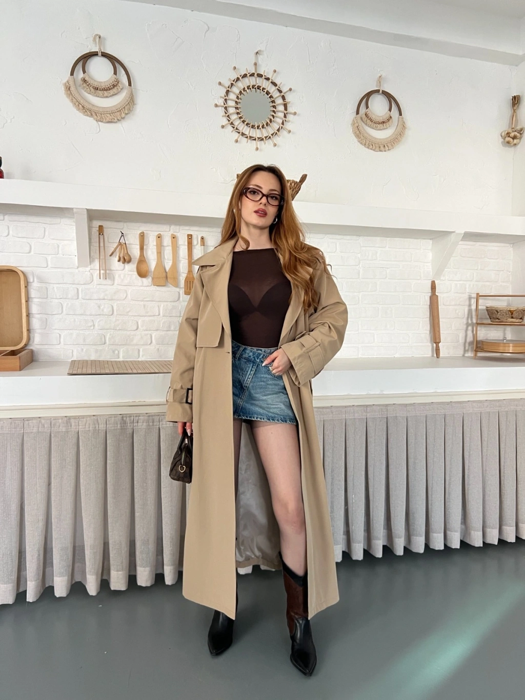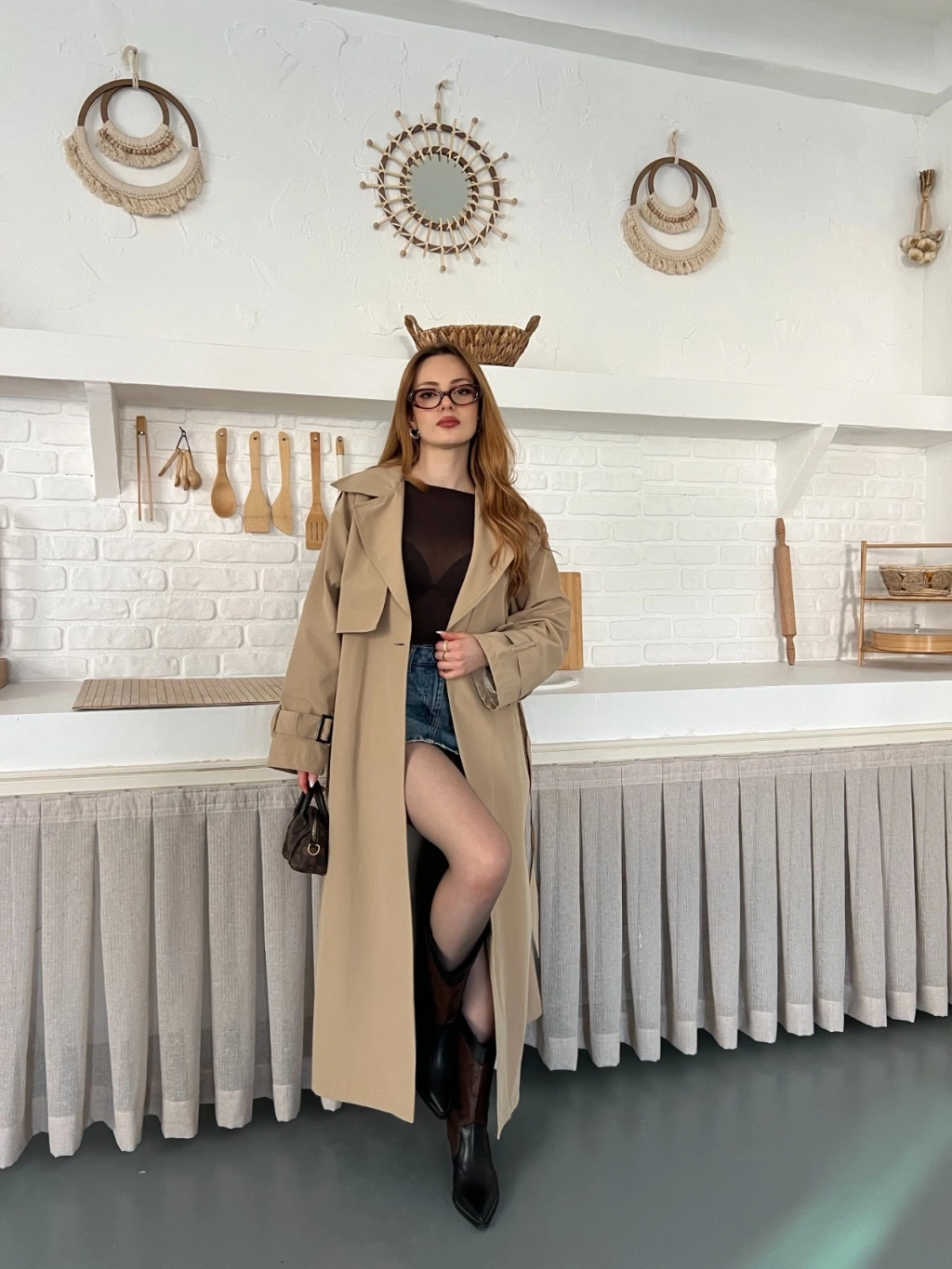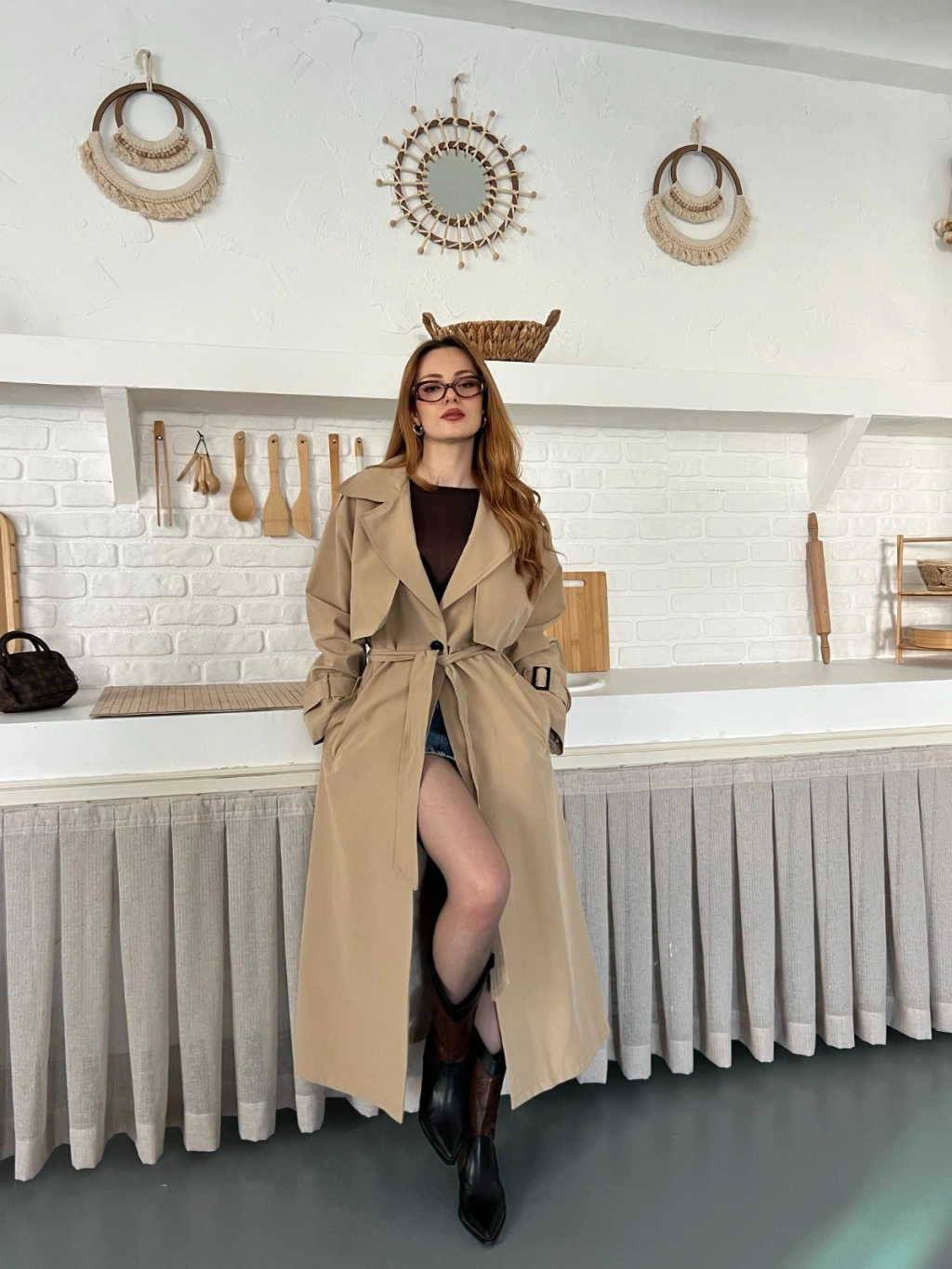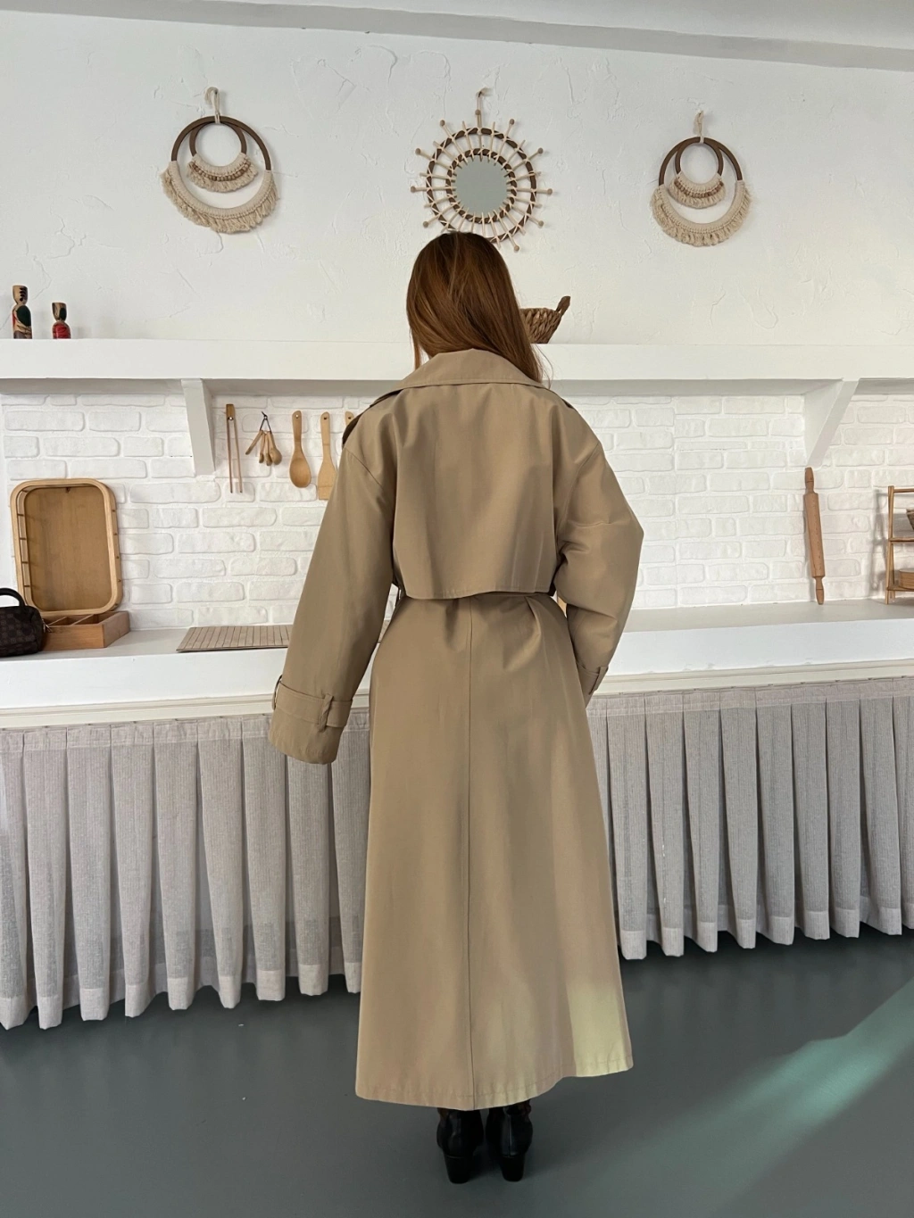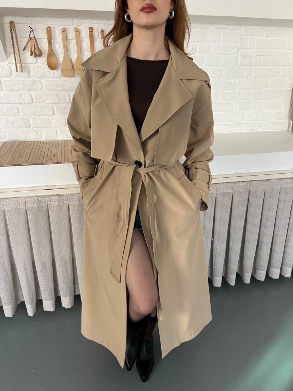 Kemer ve Manşet Detaylı Uzun Trençkot