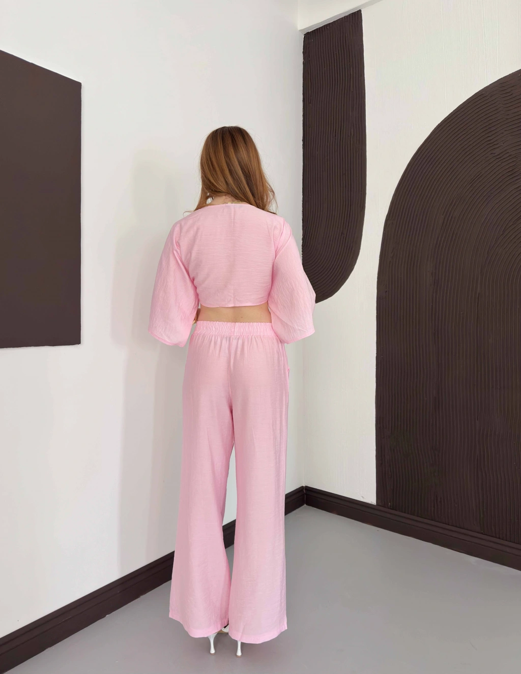 Sırt Detaylı Double Kumaş Takım Pembe