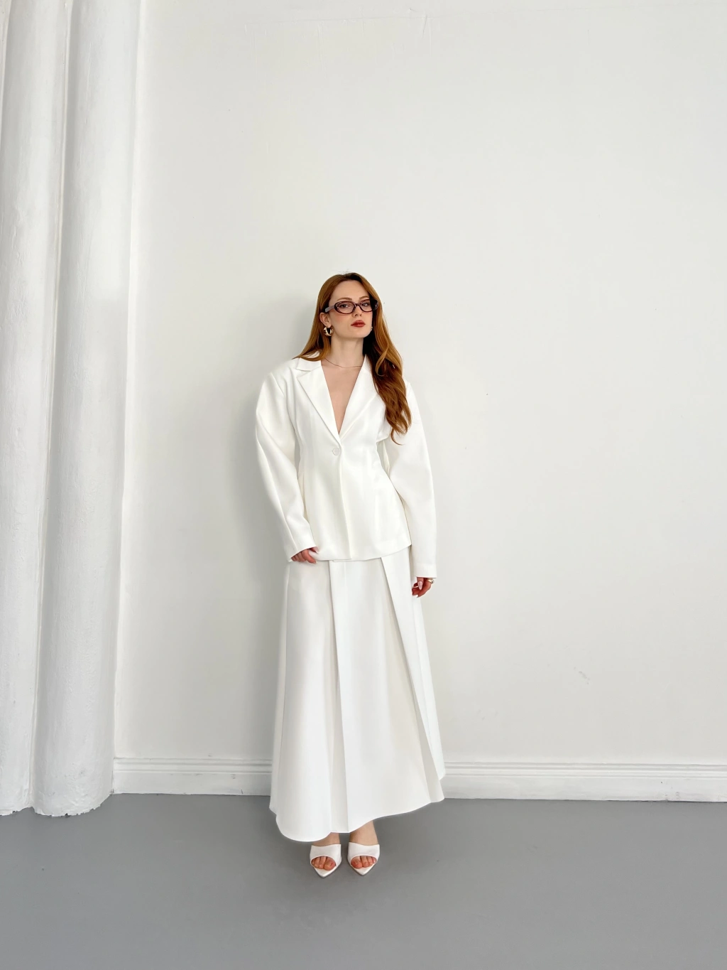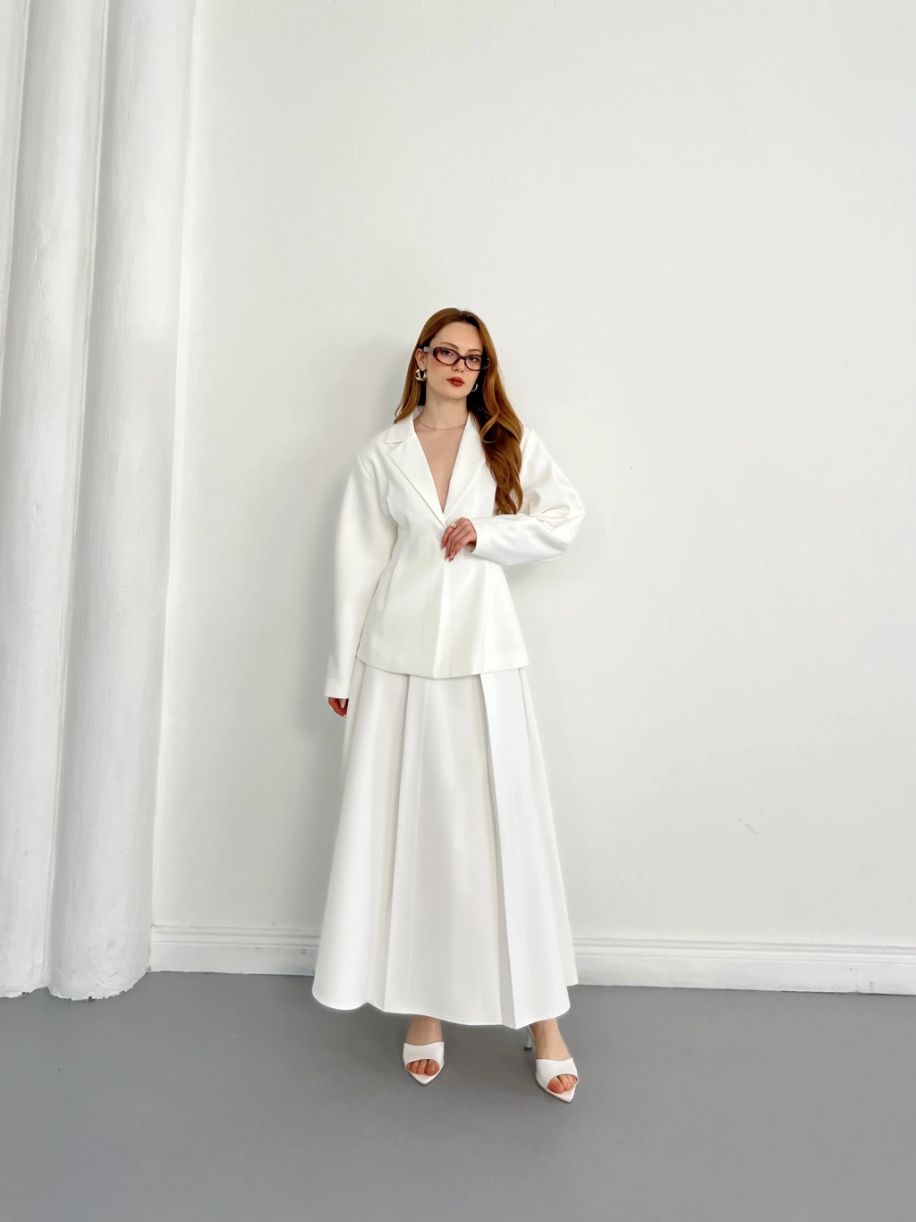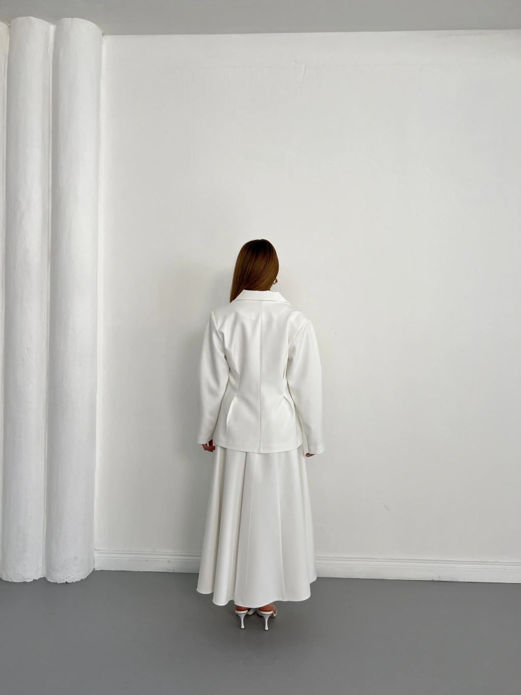 Kruvaze Yaka Ceket-Etek Takım Beyaz