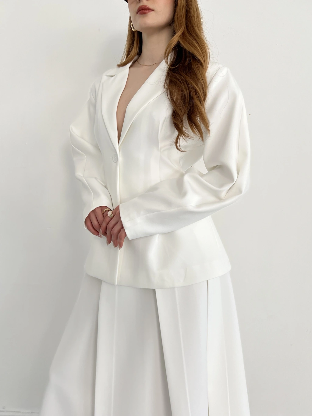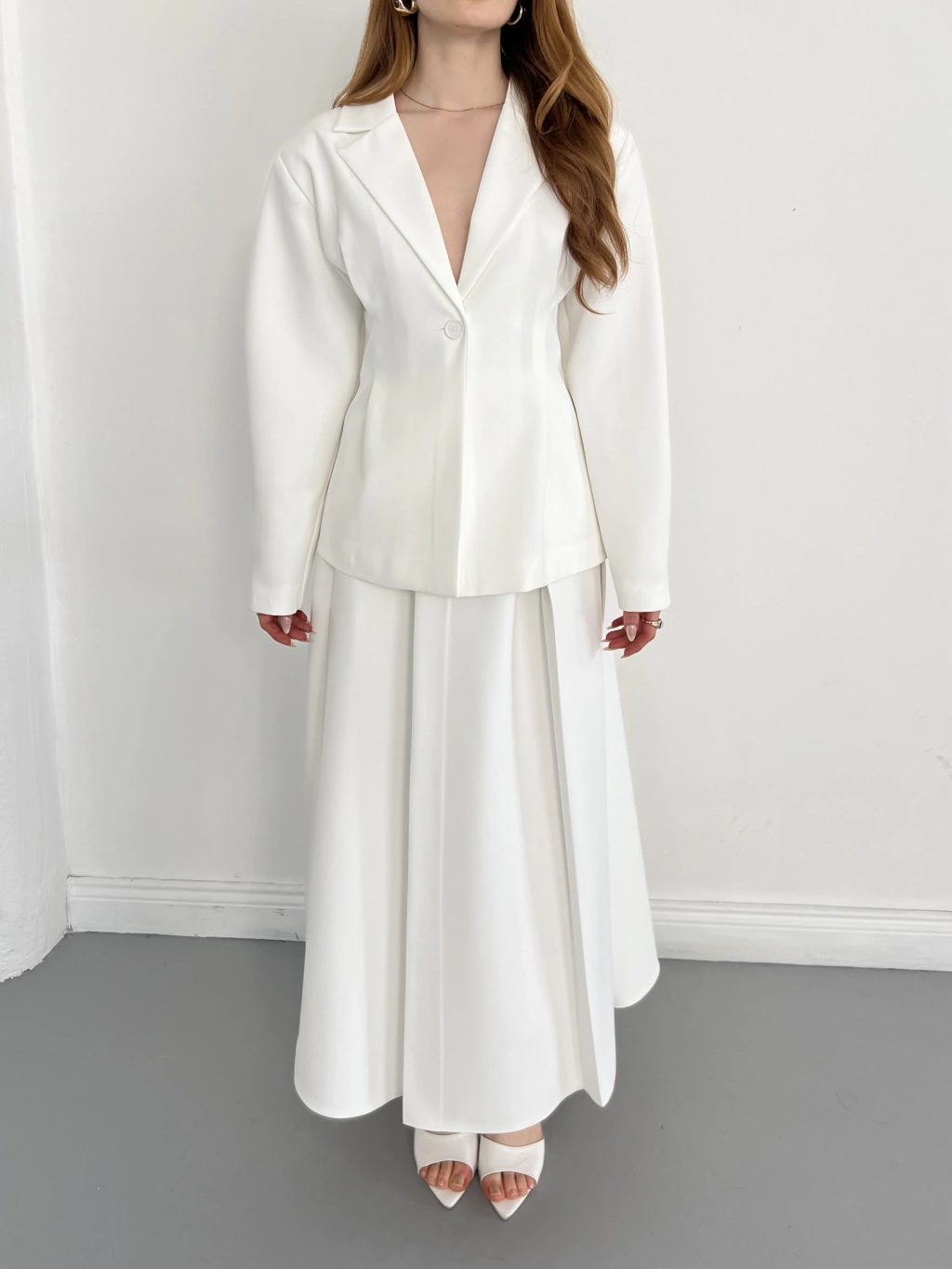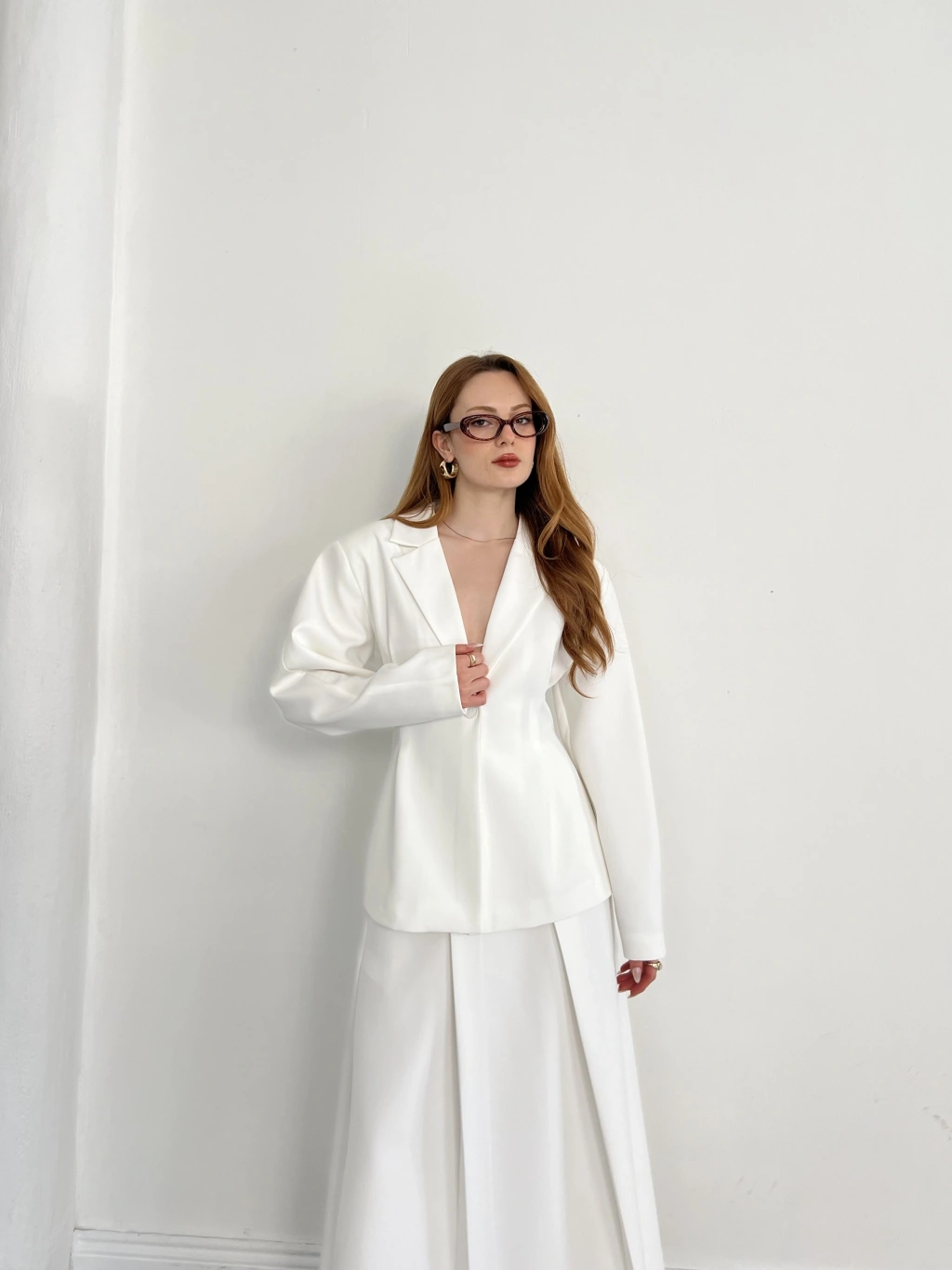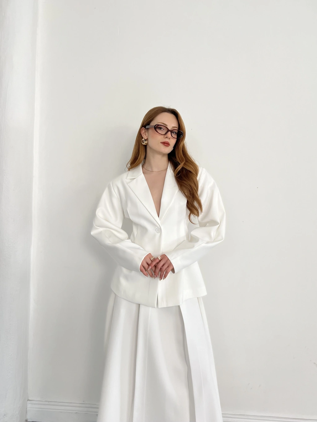 Kruvaze Yaka Ceket-Etek Takım Beyaz