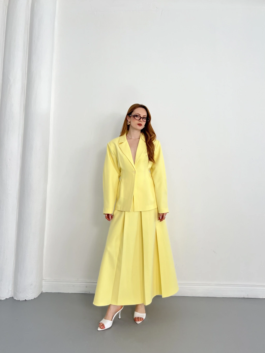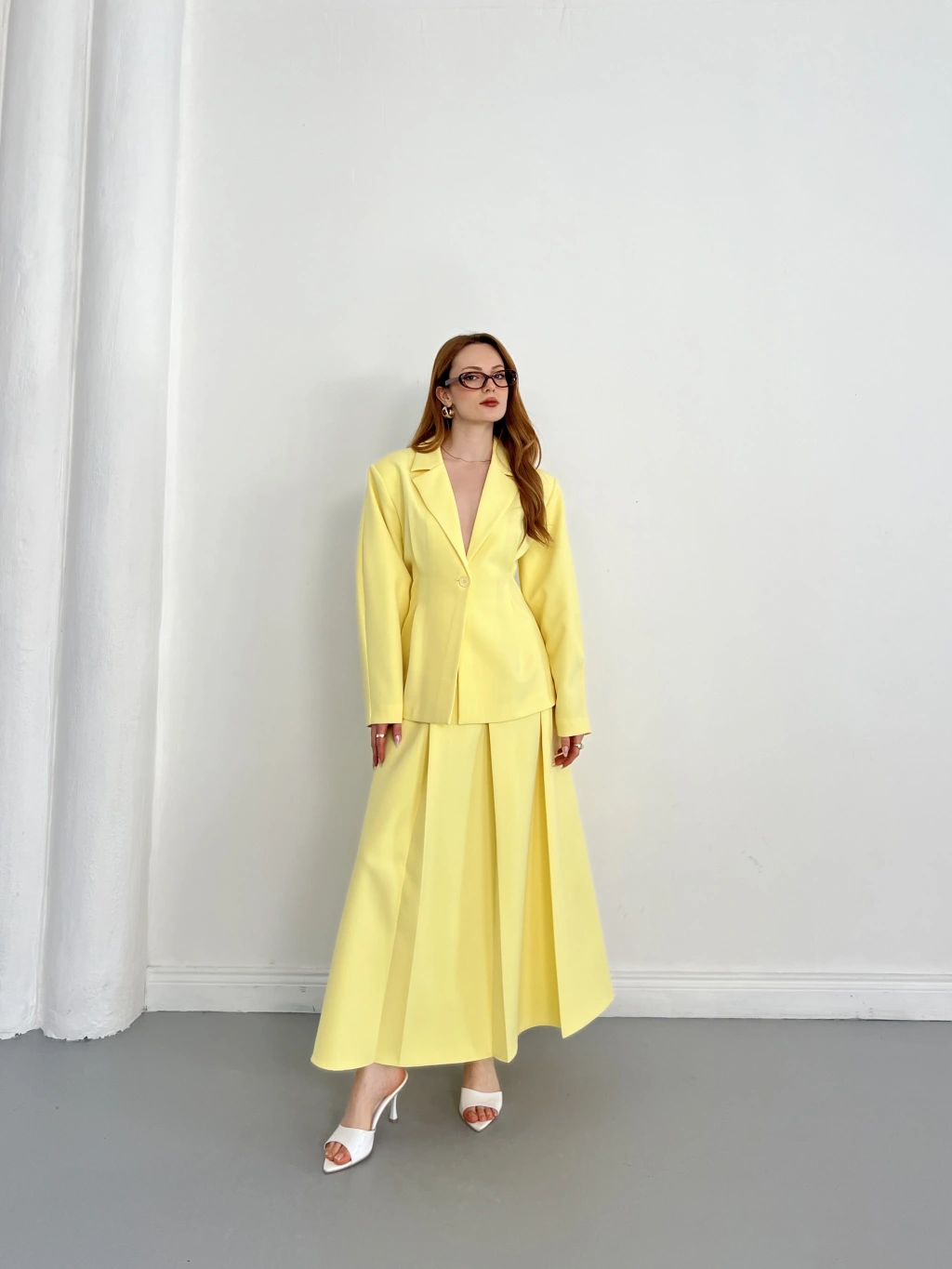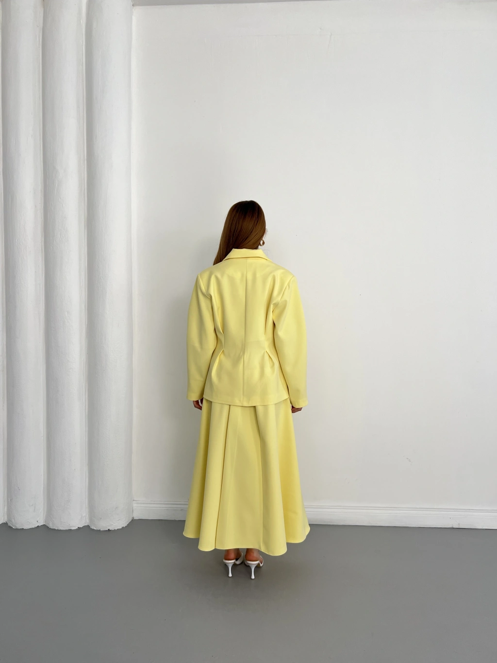 Kruvaze Yaka Ceket-Etek Takım Sarı
