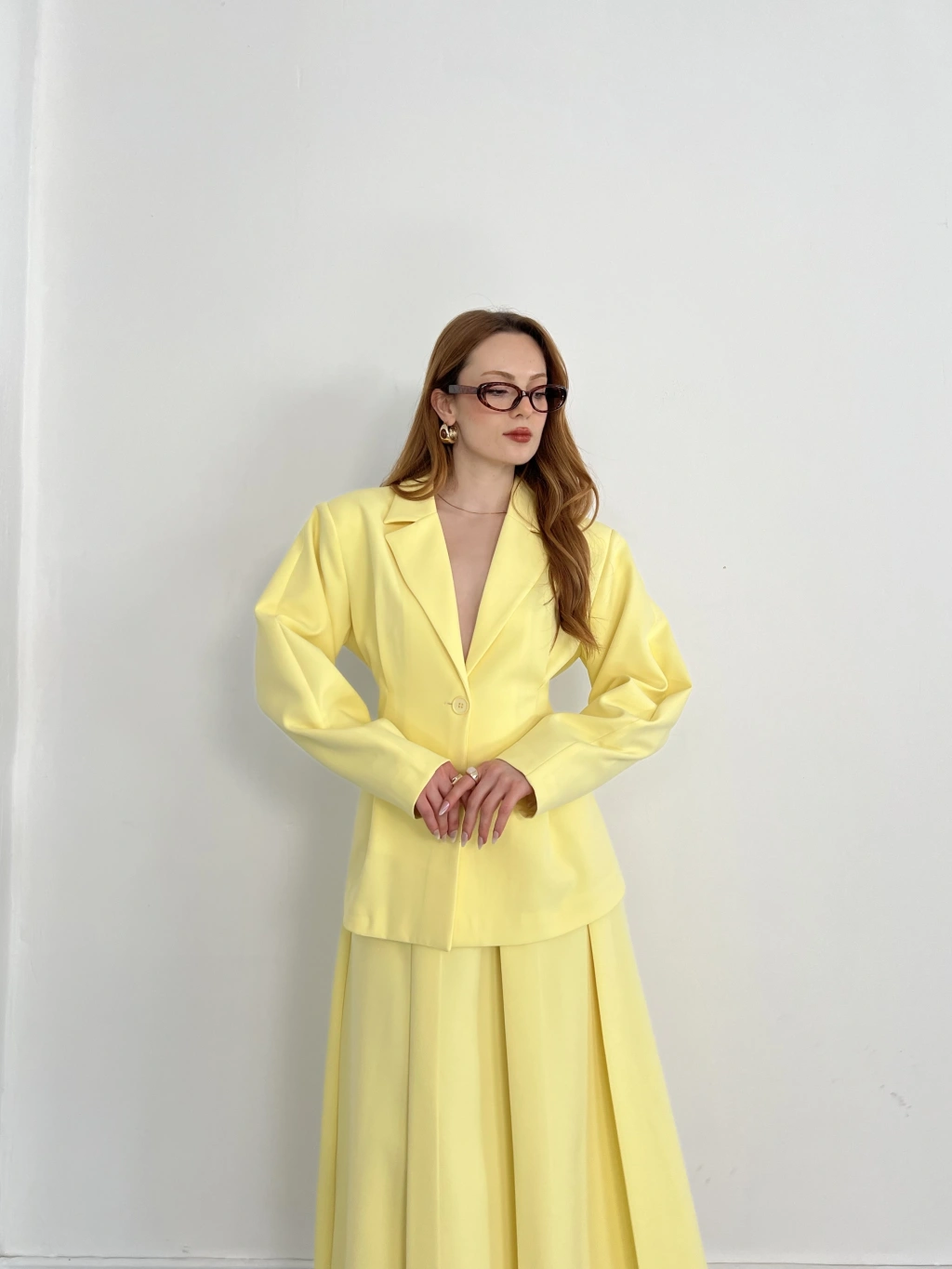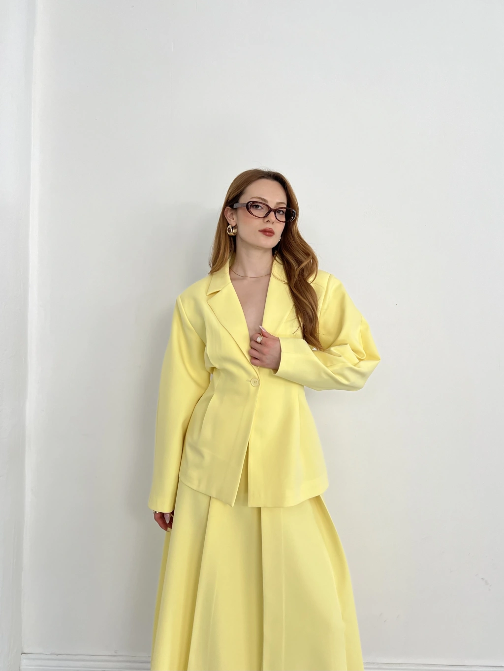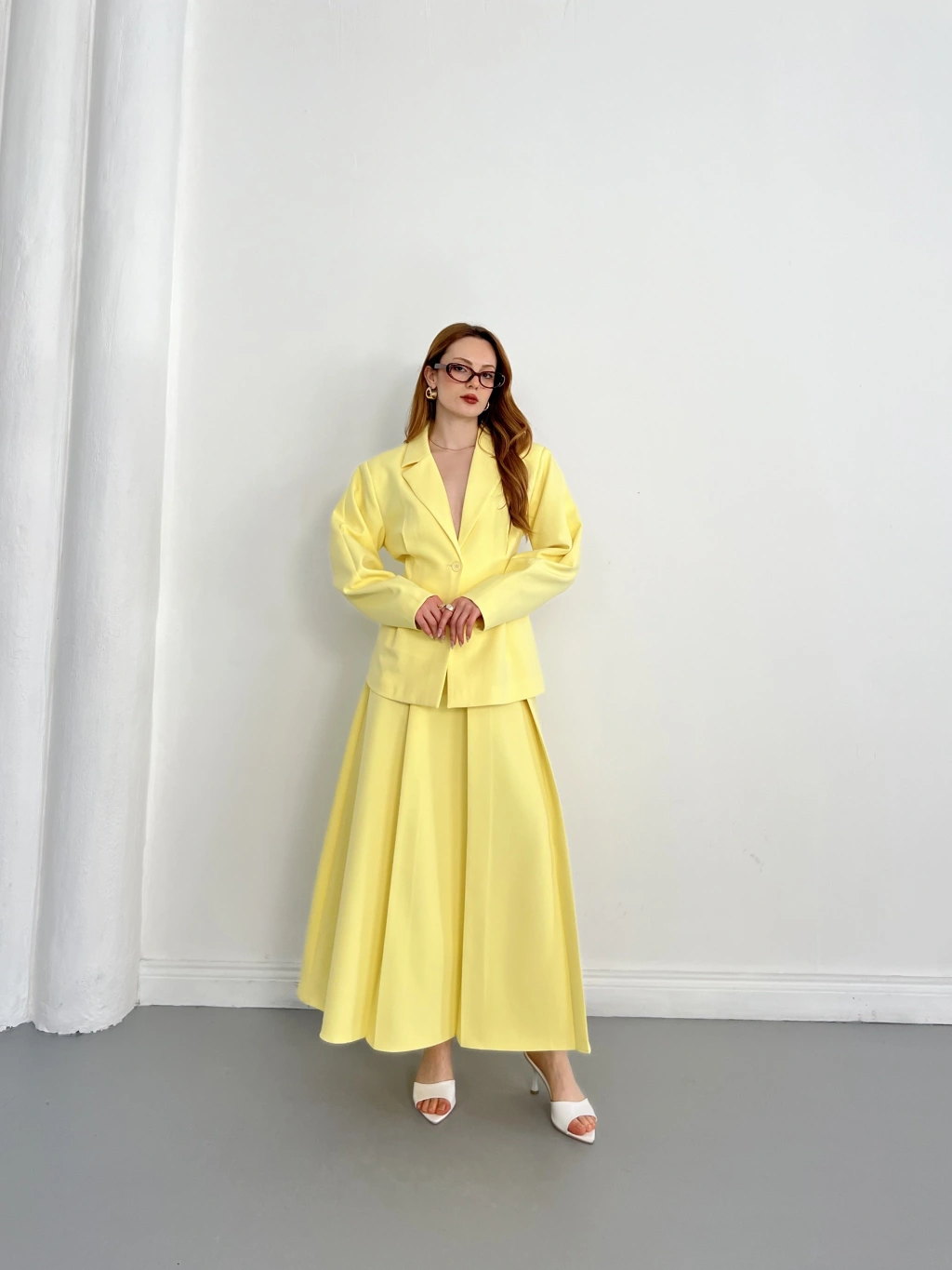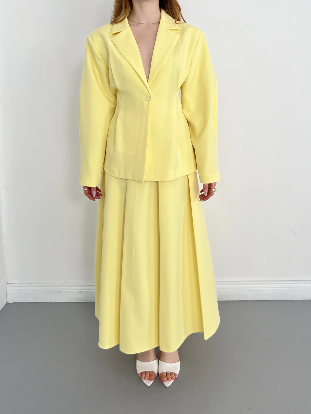 Kruvaze Yaka Ceket-Etek Takım Sarı