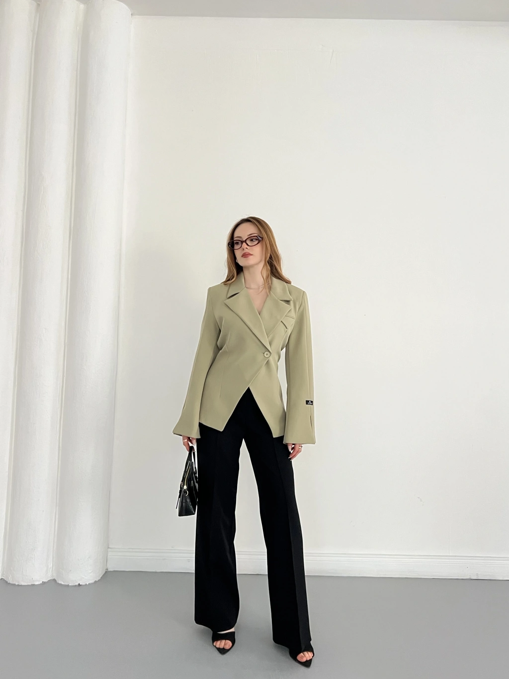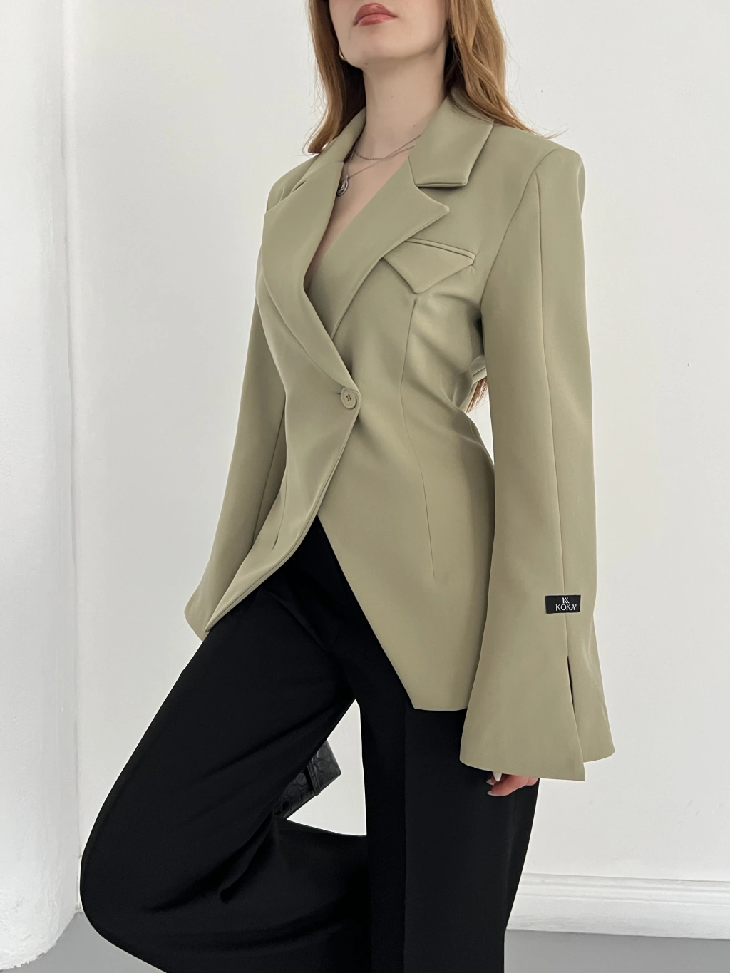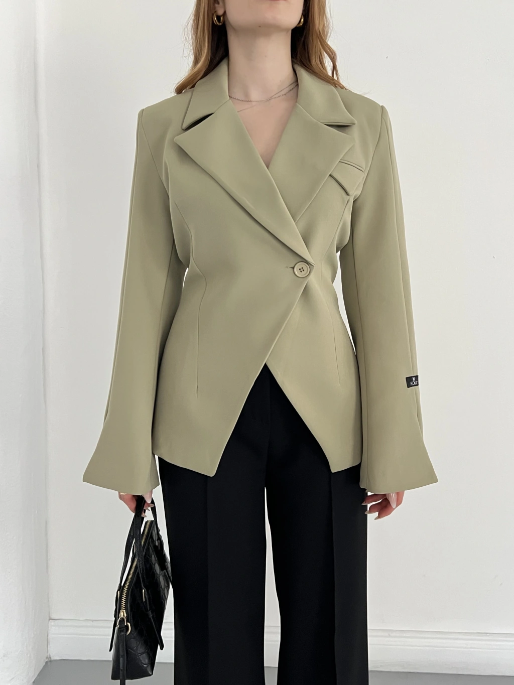 Kruvaze Yaka Tek Düğme Detaylı Tasarım Ceket Haki