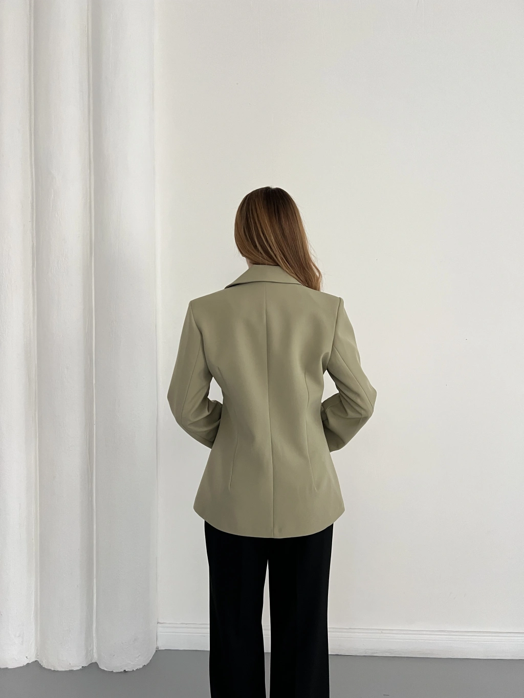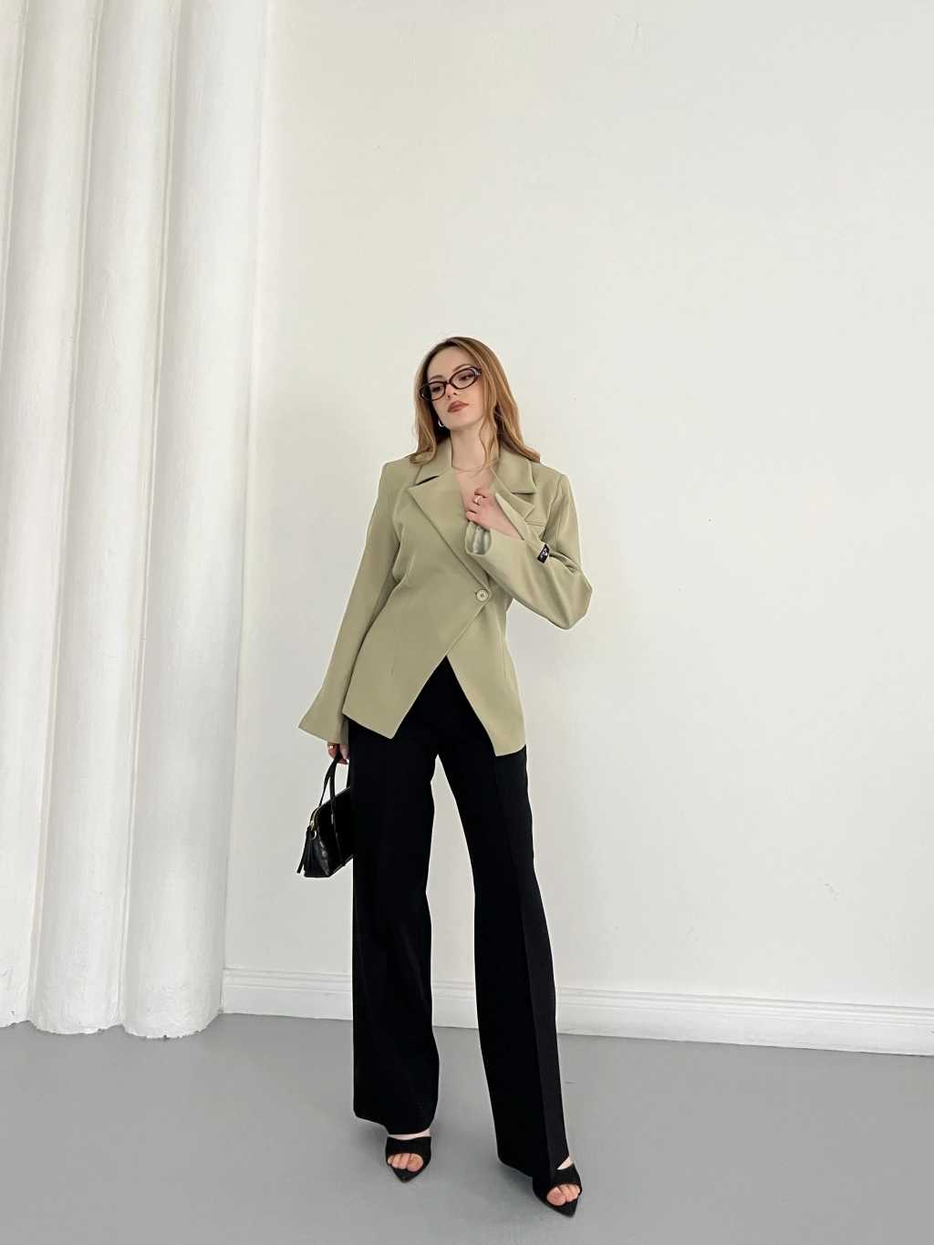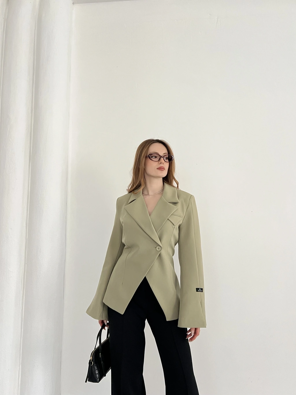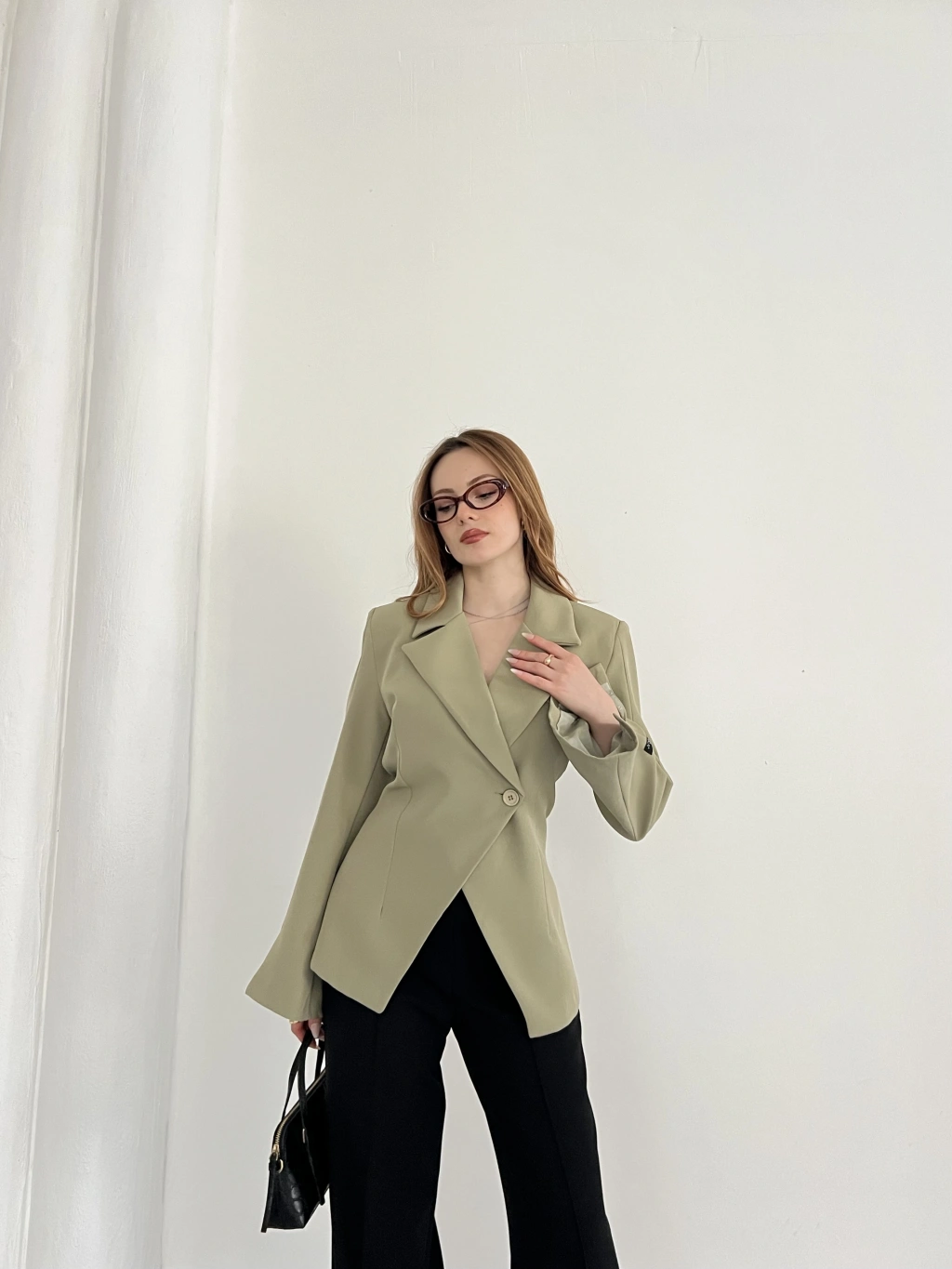 Kruvaze Yaka Tek Düğme Detaylı Tasarım Ceket Haki