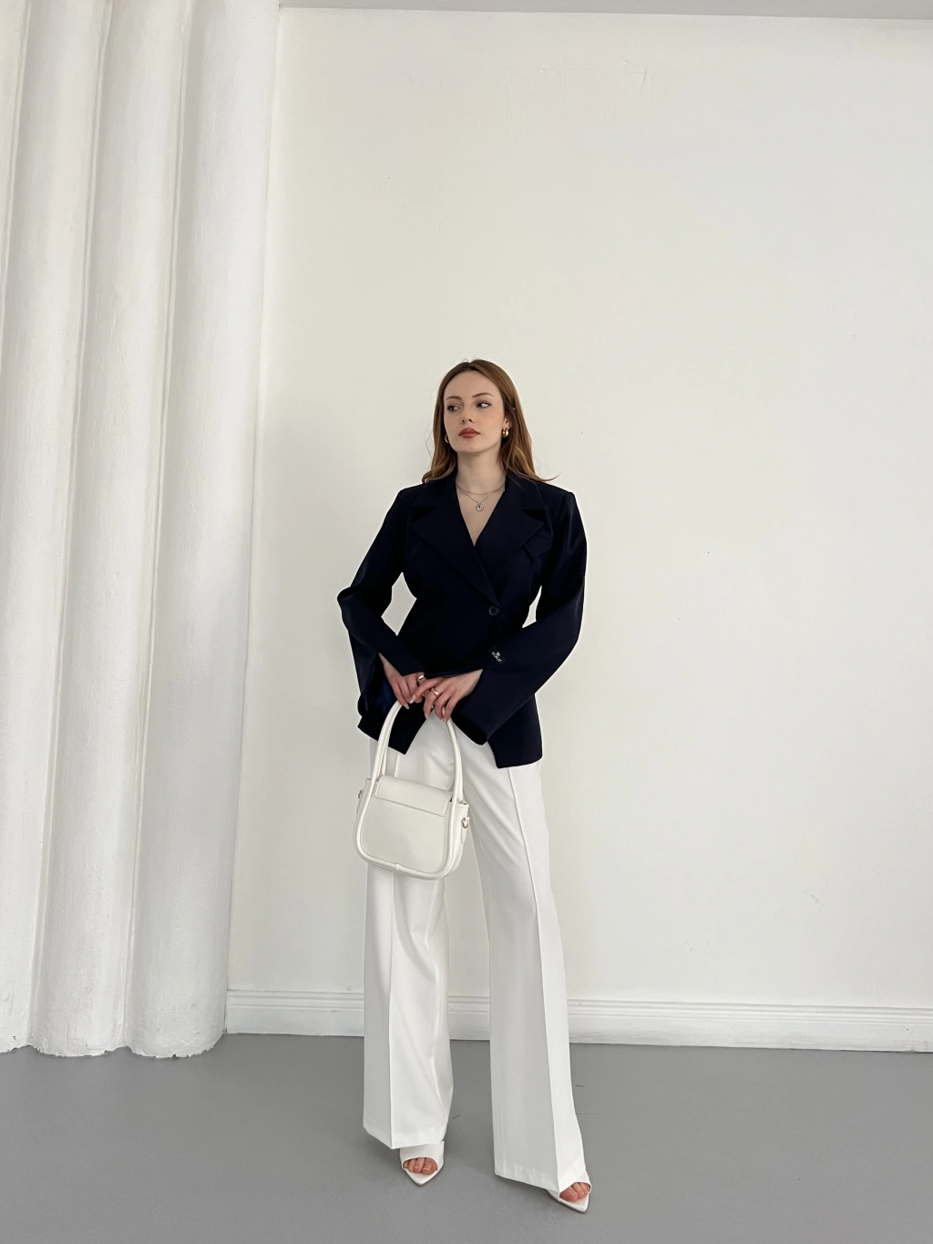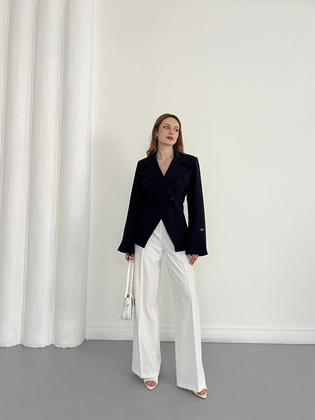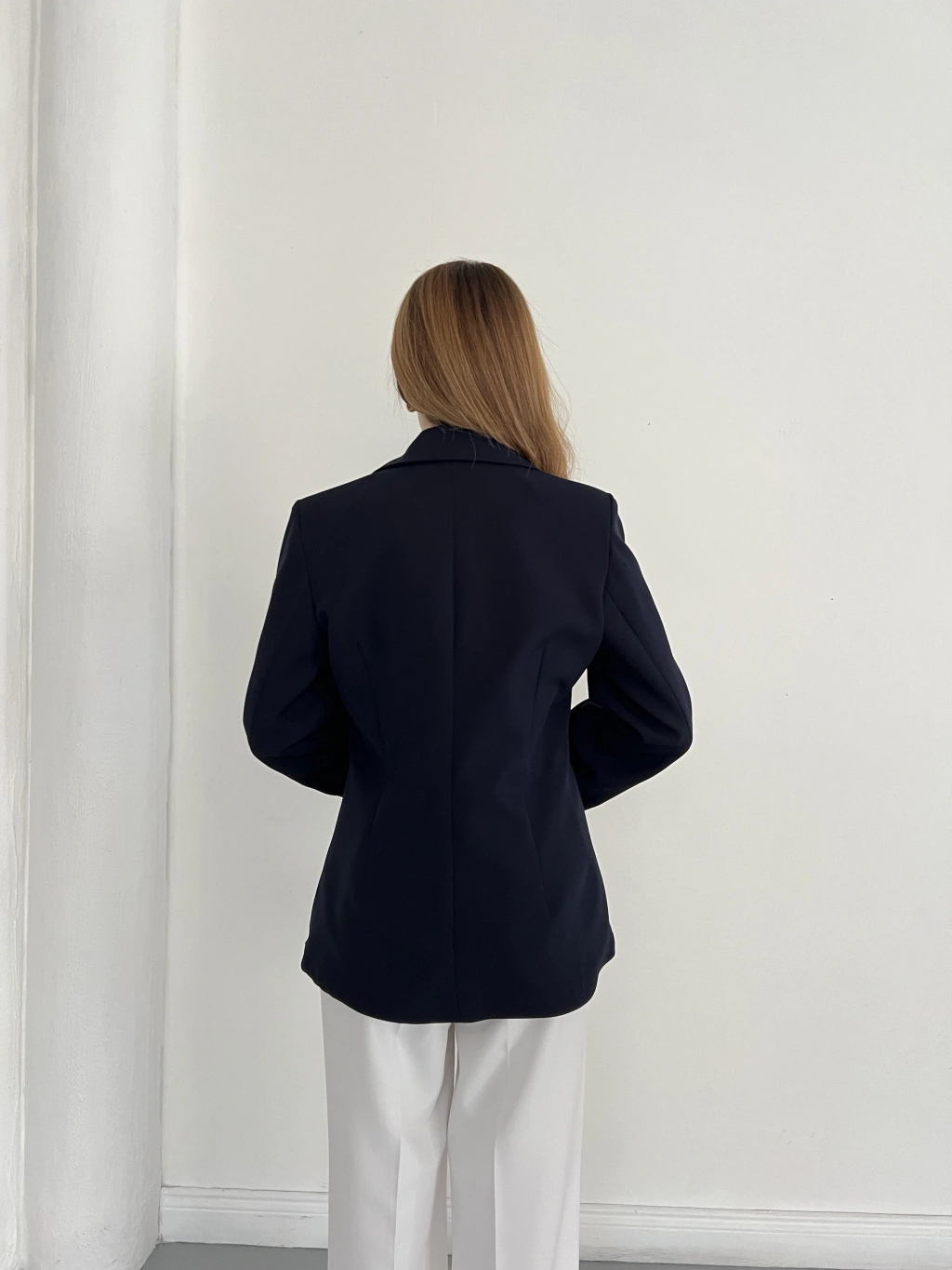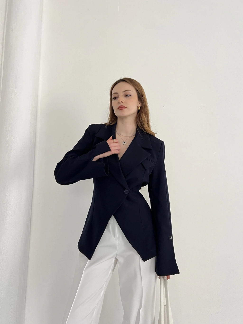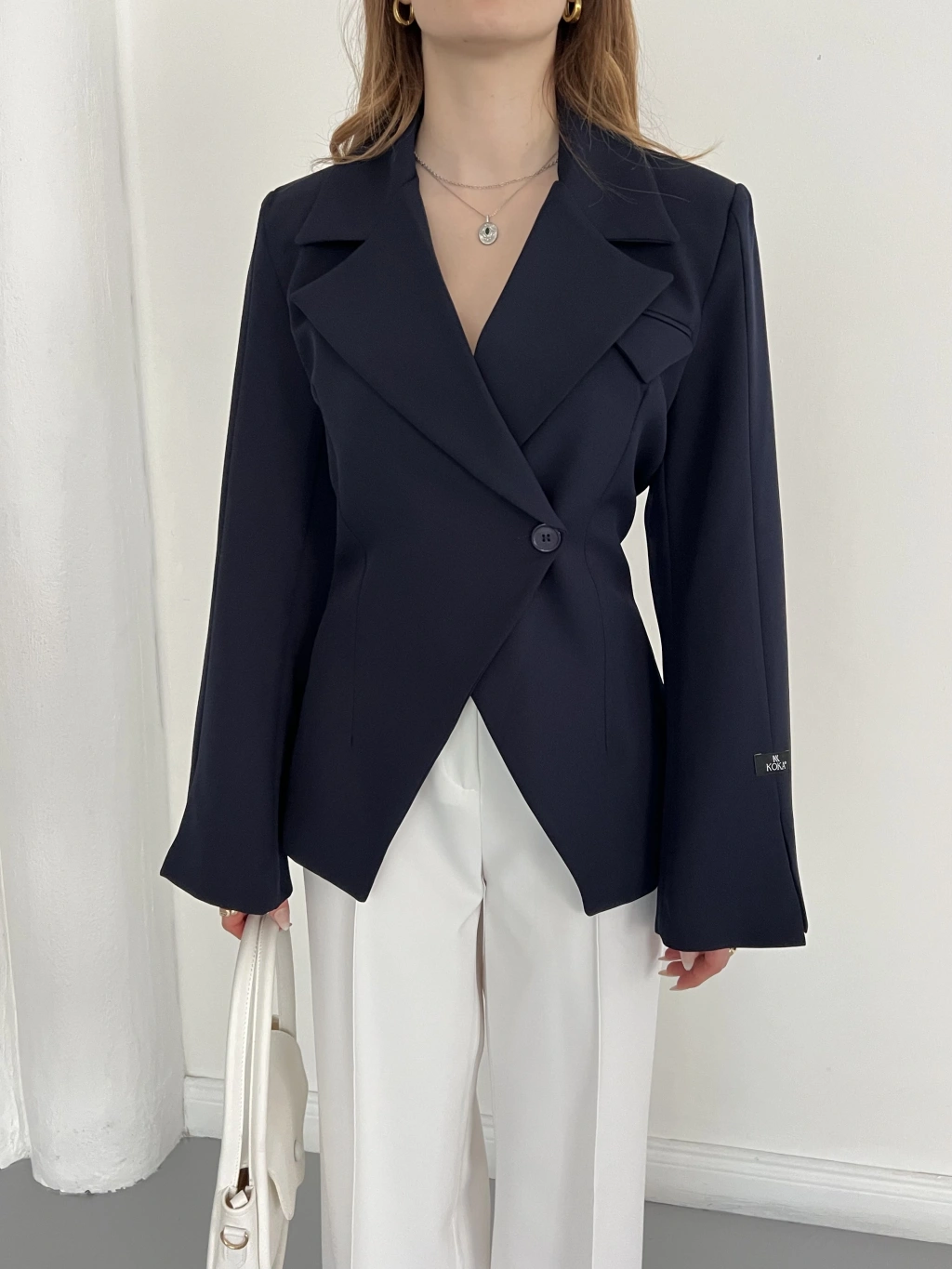 Kruvaze Yaka Tek Düğme Detaylı Tasarım Ceket Lacivert