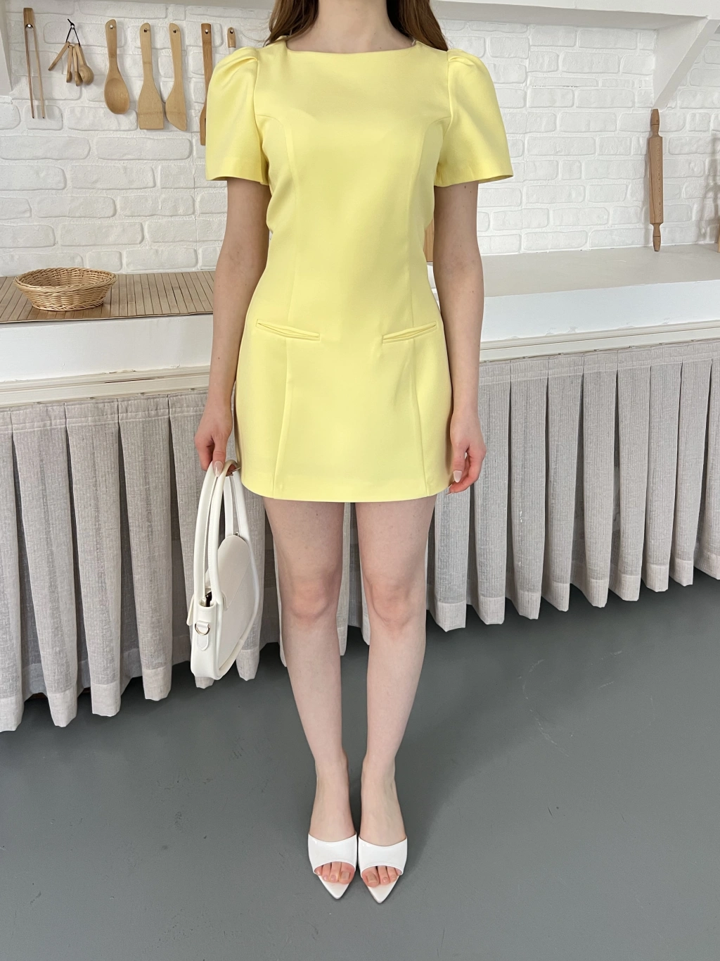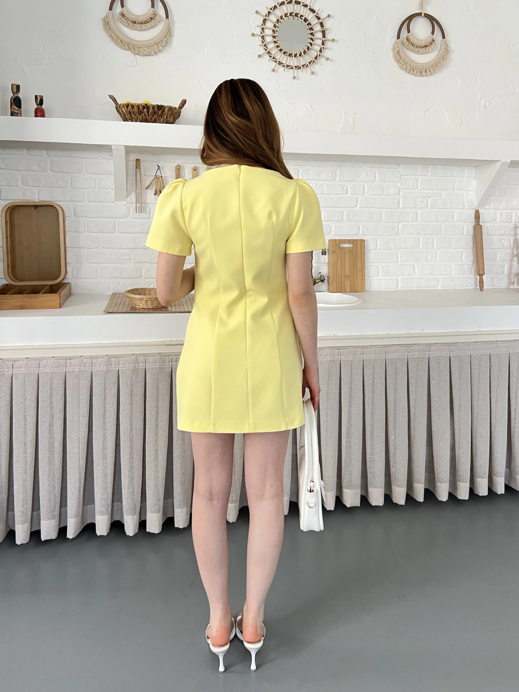 Minimal Çizgisi ve Modern Omuz Detaylı Mini Elbise Sarı