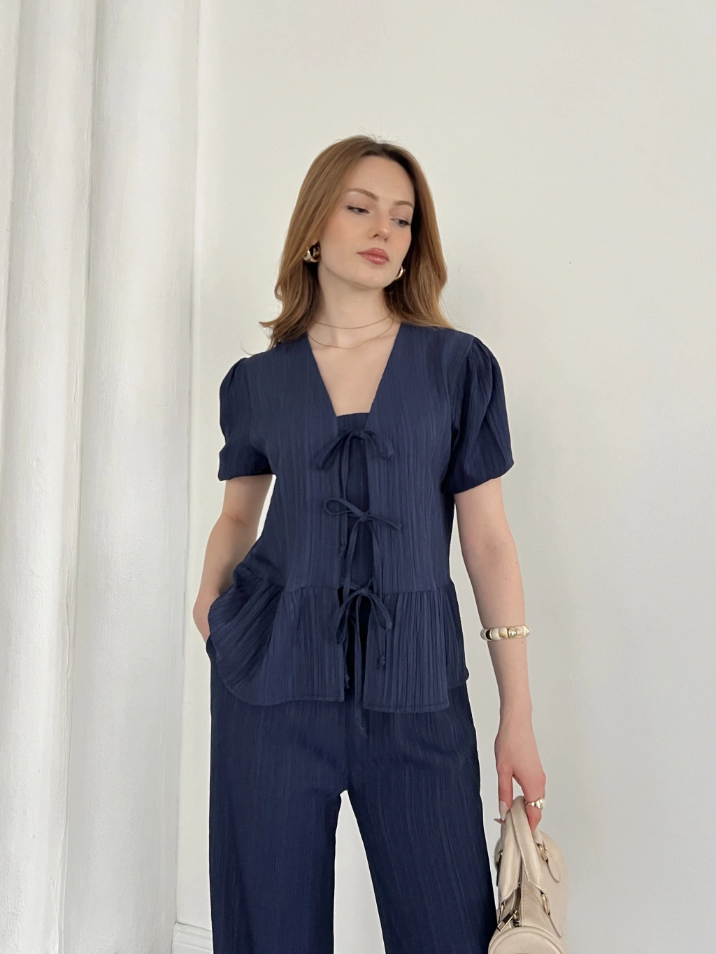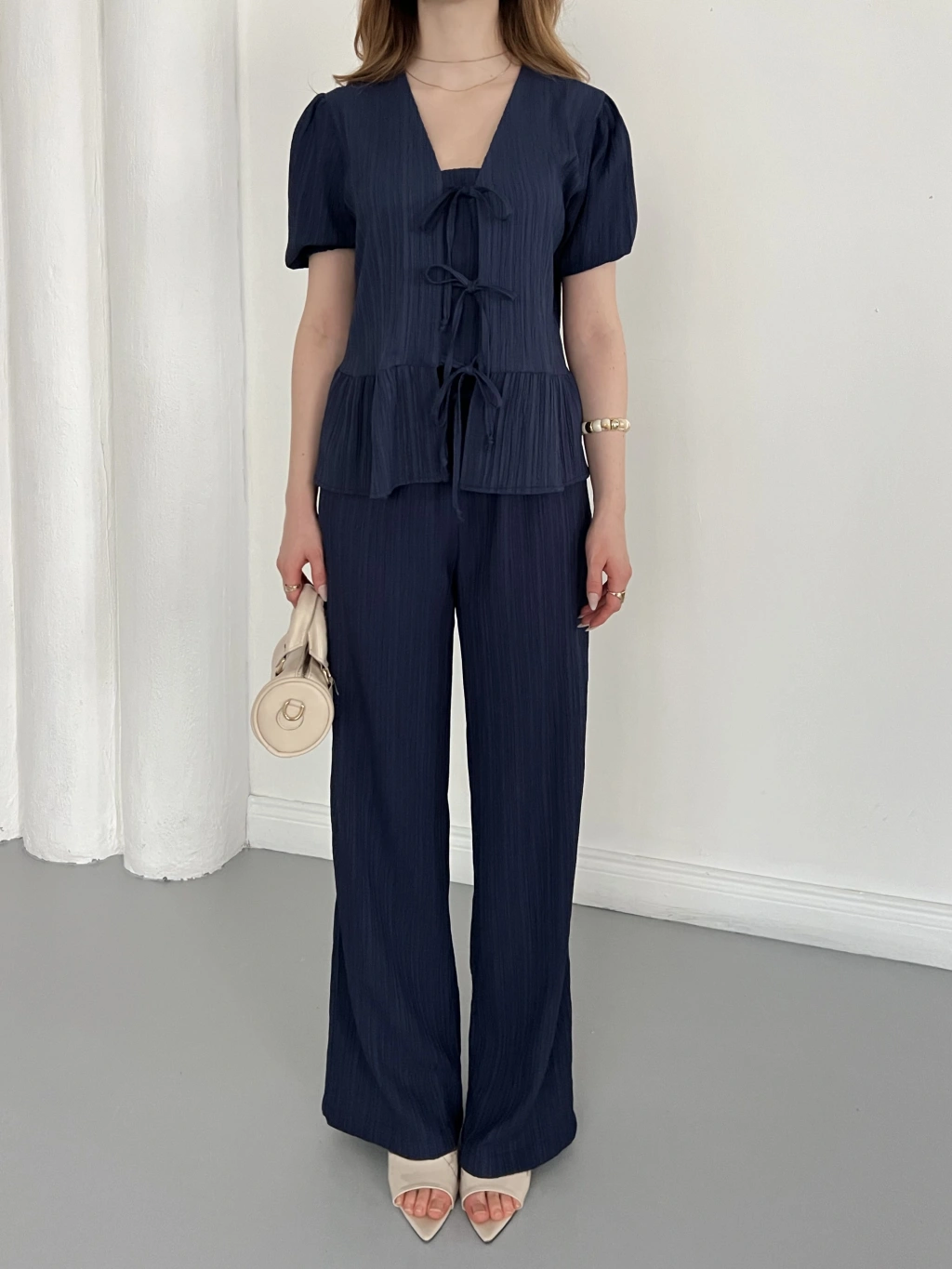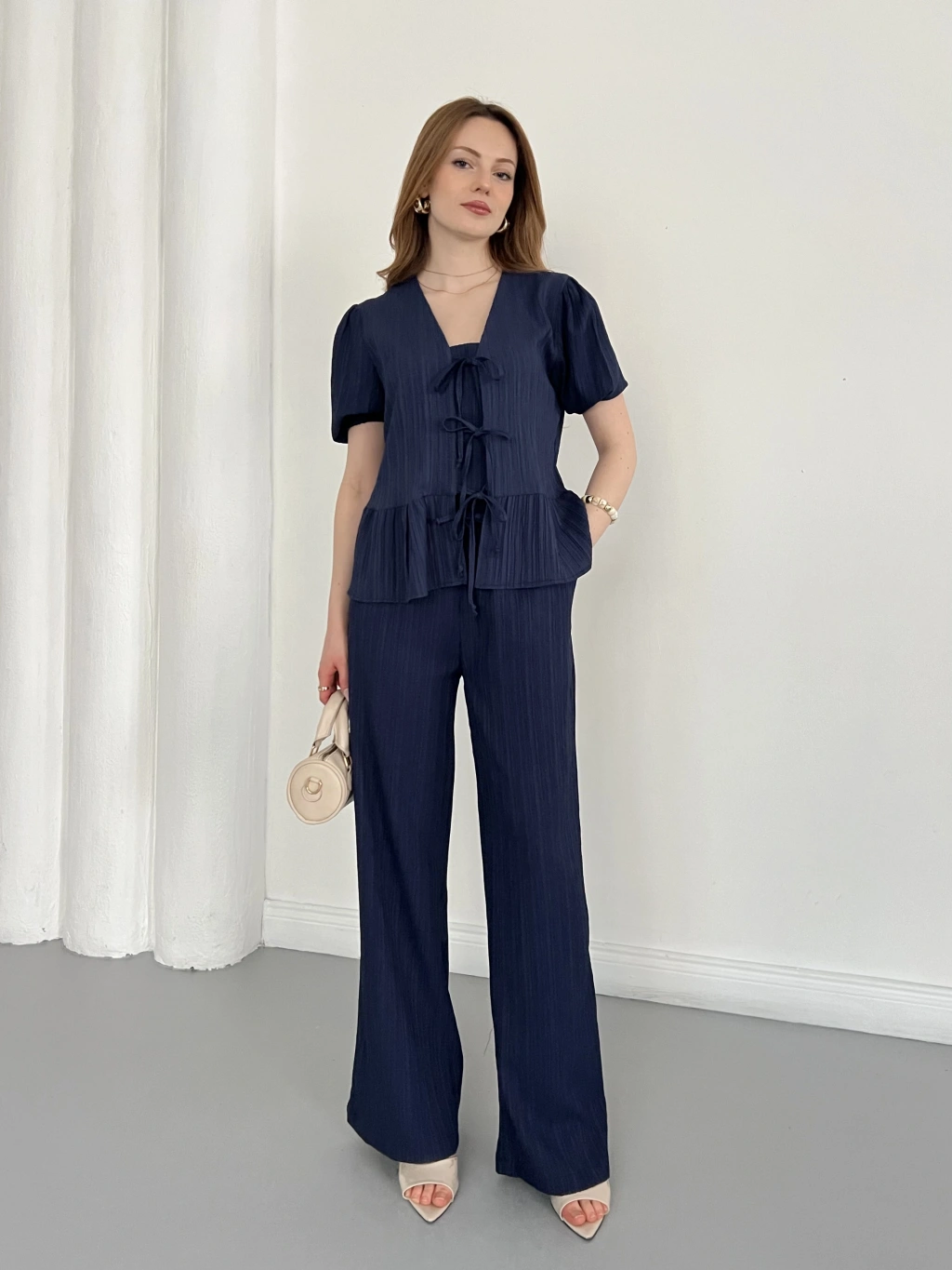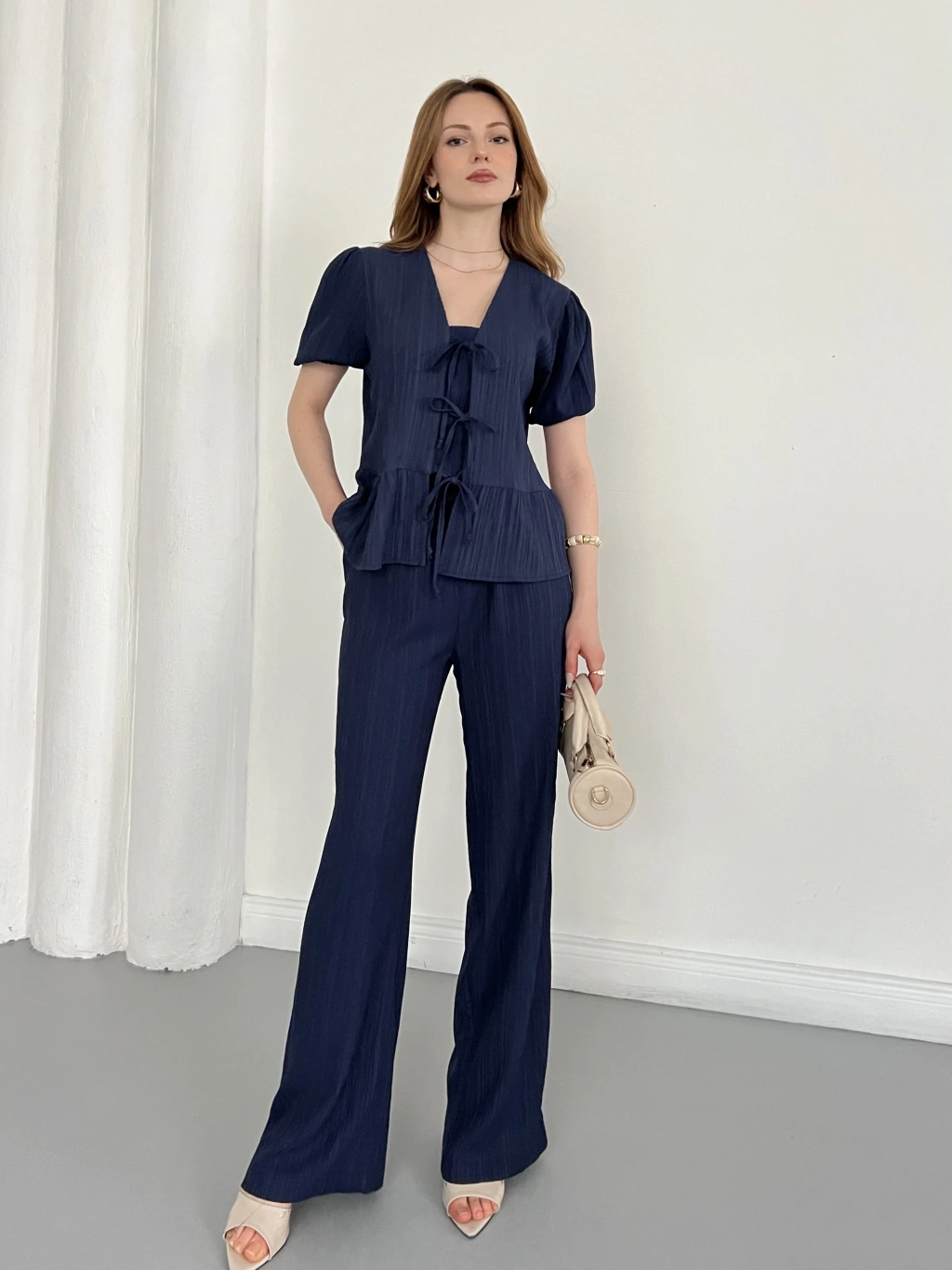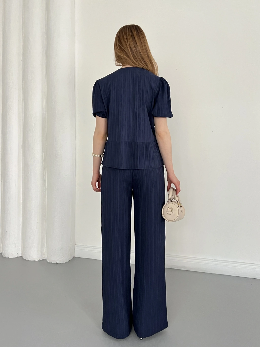 Modal Kumaş Bel Büzgü Detaylı Rahat Takım Lacivert