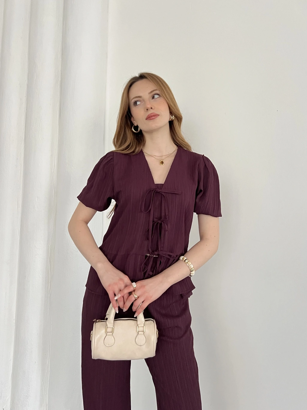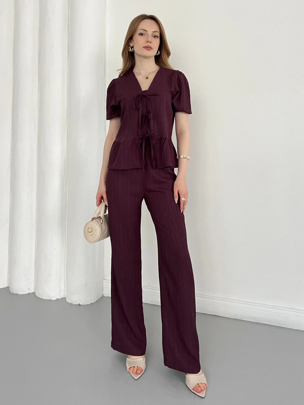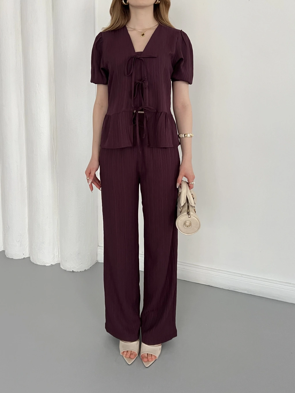 Modal Kumaş Bel Büzgü Detaylı Rahat Takım Mürdüm