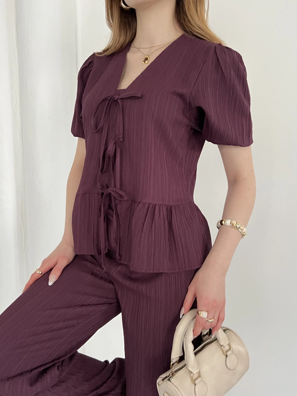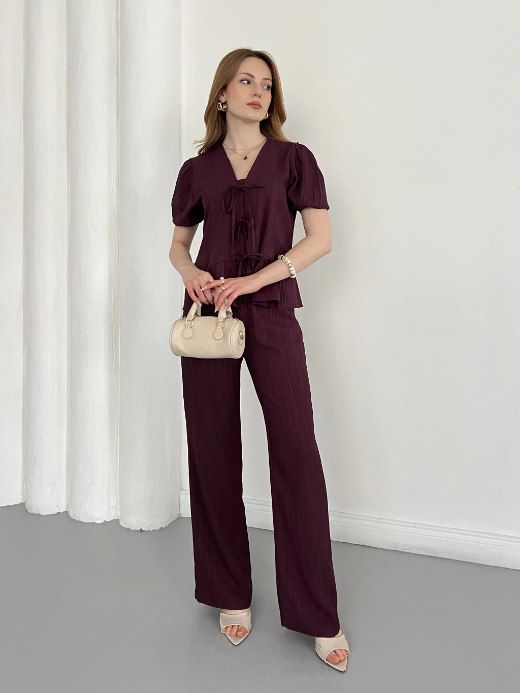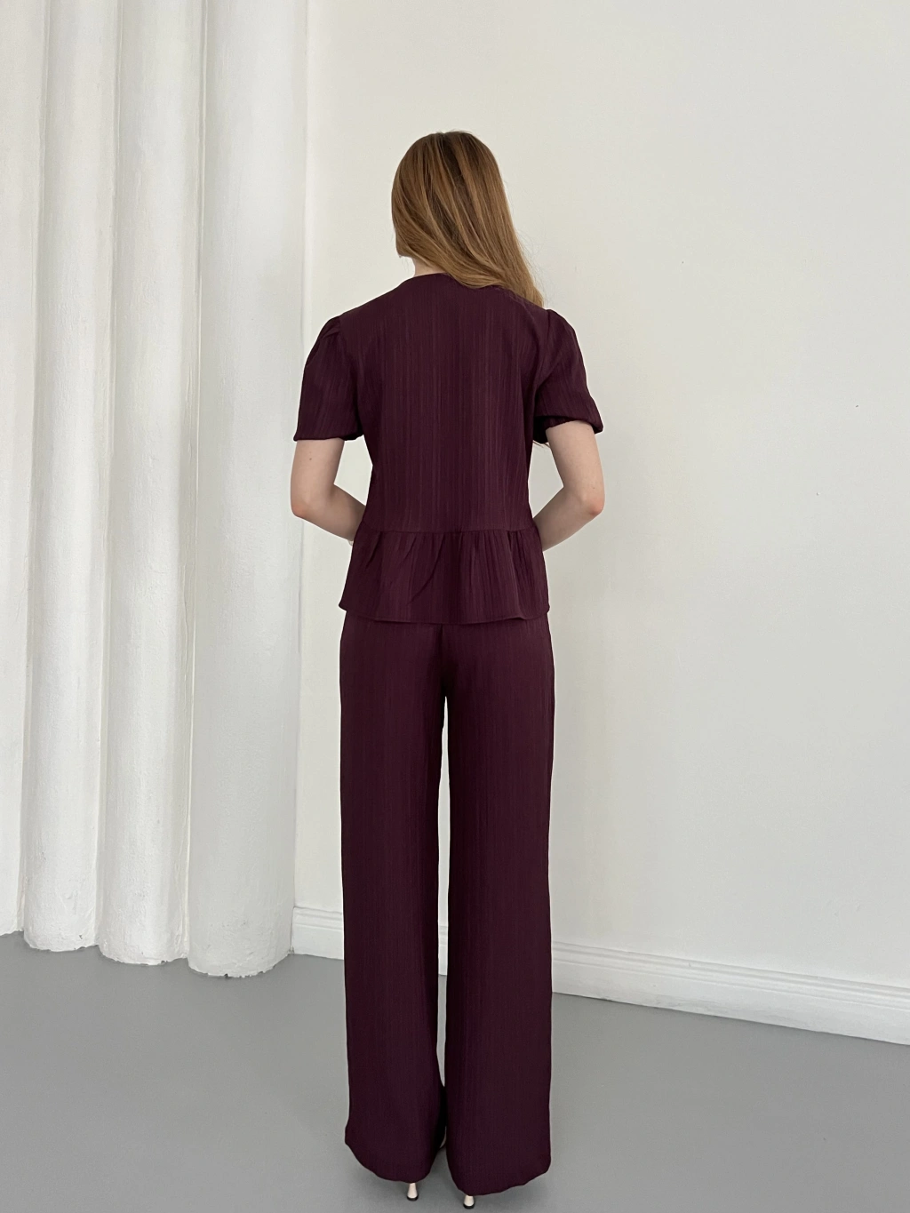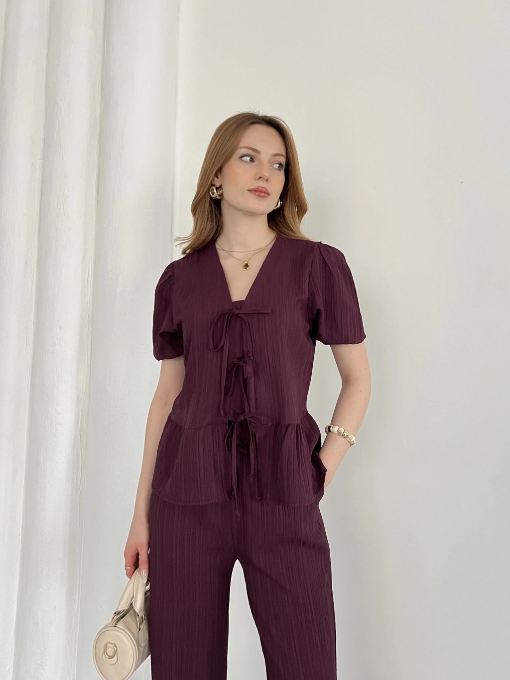 Modal Kumaş Bel Büzgü Detaylı Rahat Takım Mürdüm