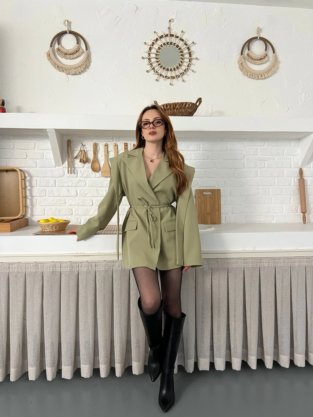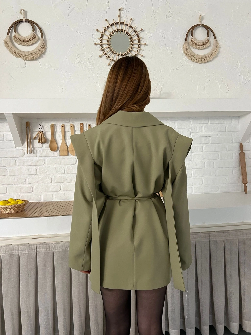 Omuz Detaylı Belden Bağlamalı Ceket Haki