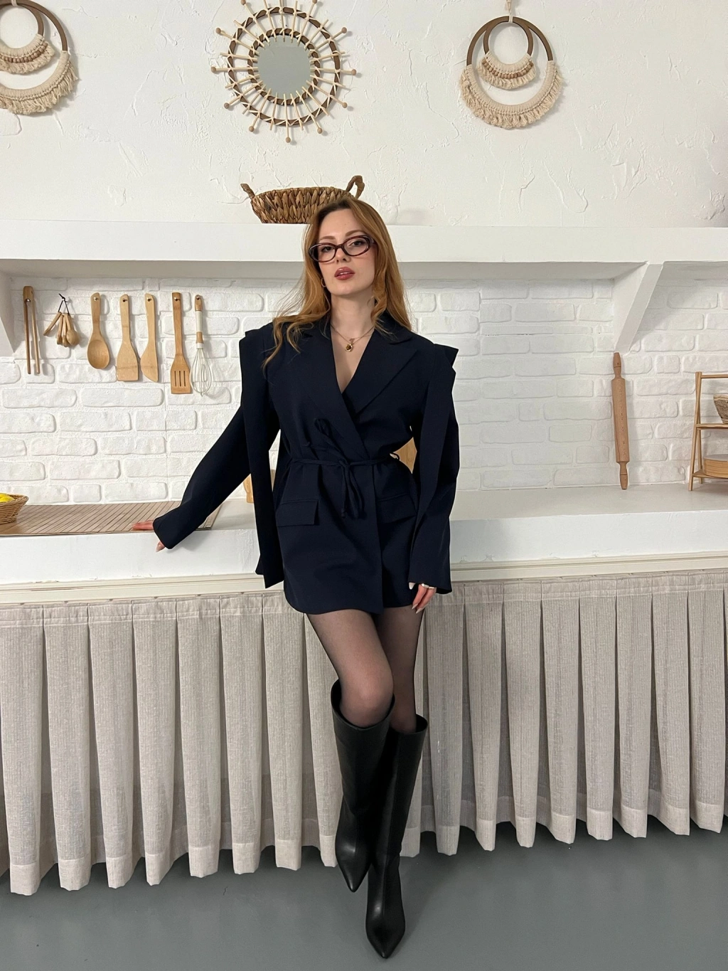 Omuz Detaylı Belden Bağlamalı Ceket
