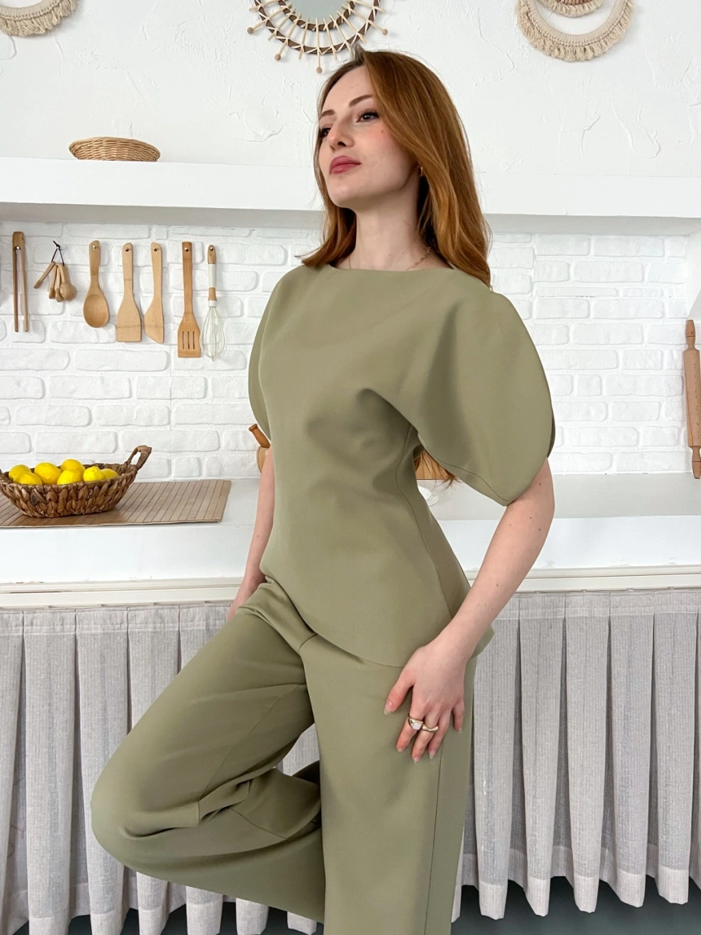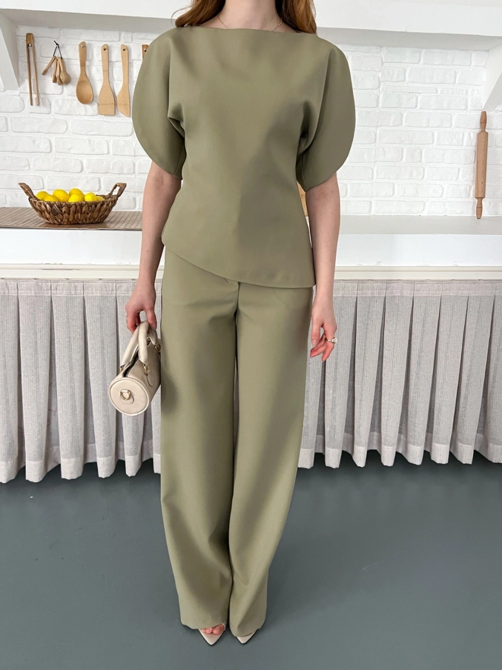 Kemerli Yüksek Bel Bol Paça Pantolon Haki
