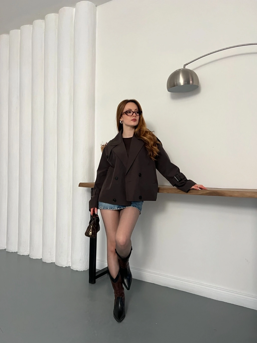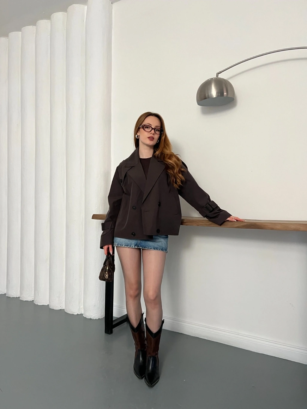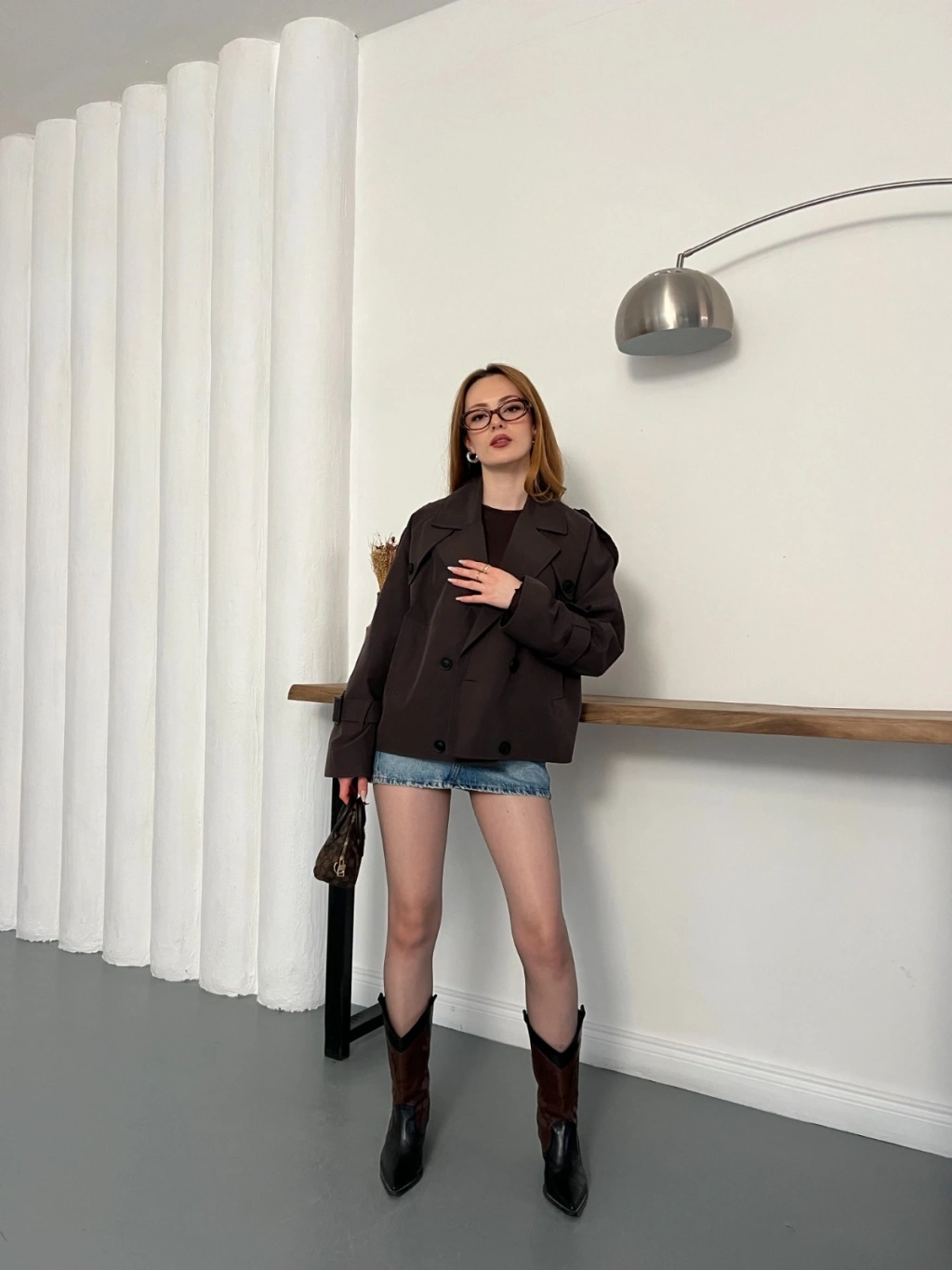 Fular Detaylı Düğmeli Ceket Kahve