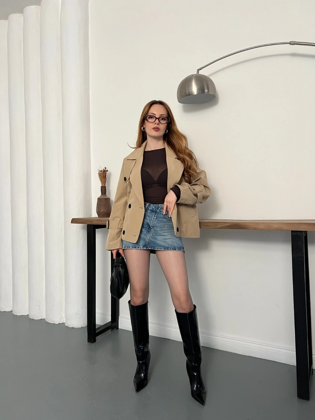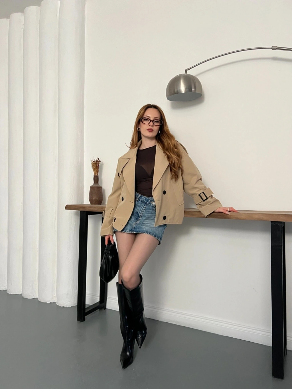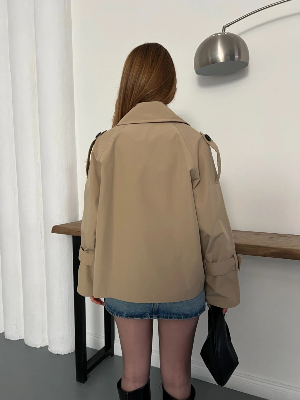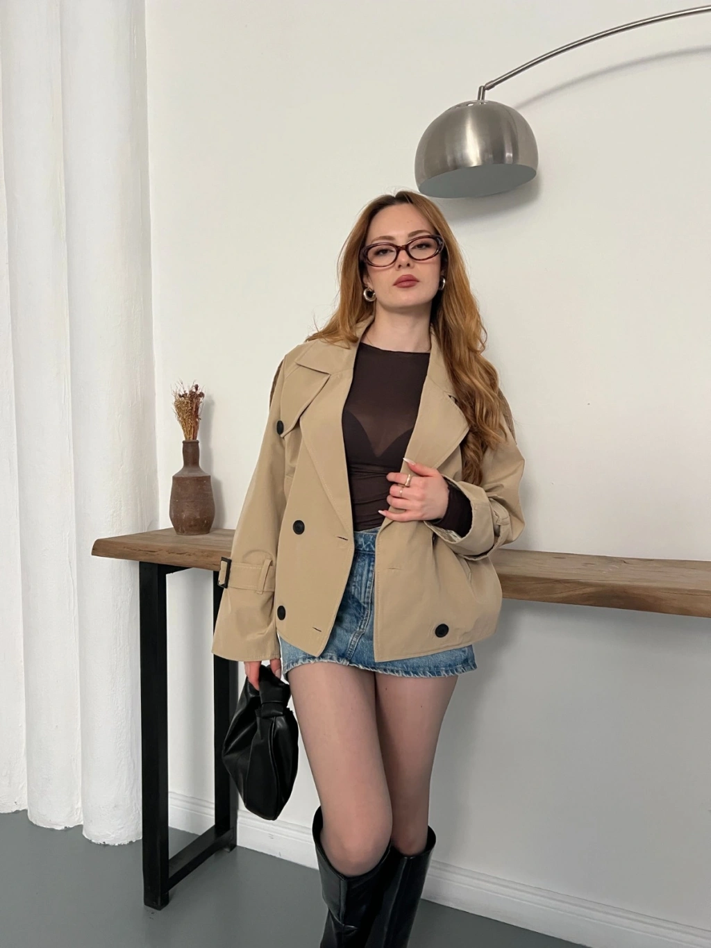 Omuz Kol Manşet Detaylı Cepli Trenç Ceket