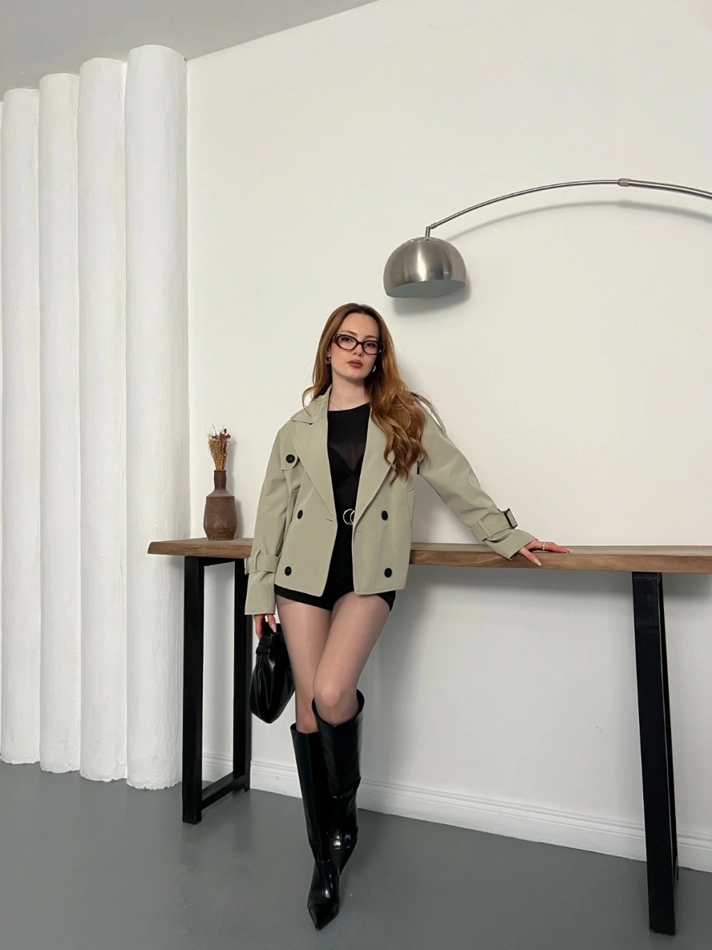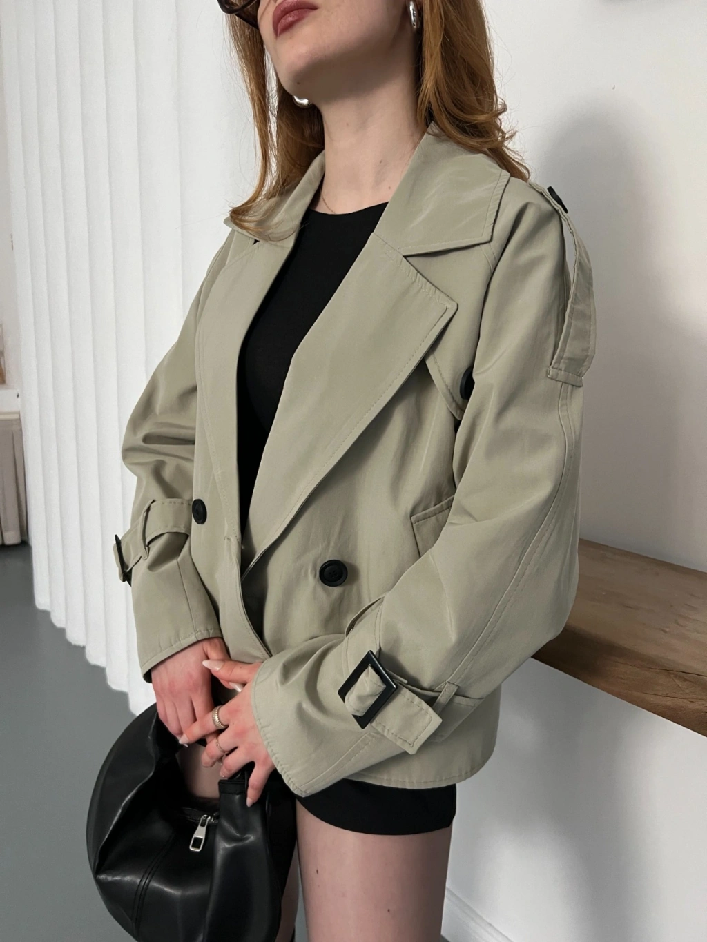 Omuz Kol Manşet Detaylı Cepli Trenç Ceket