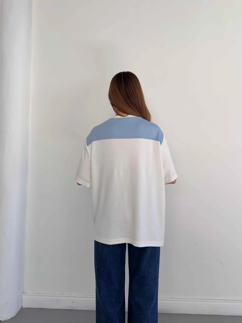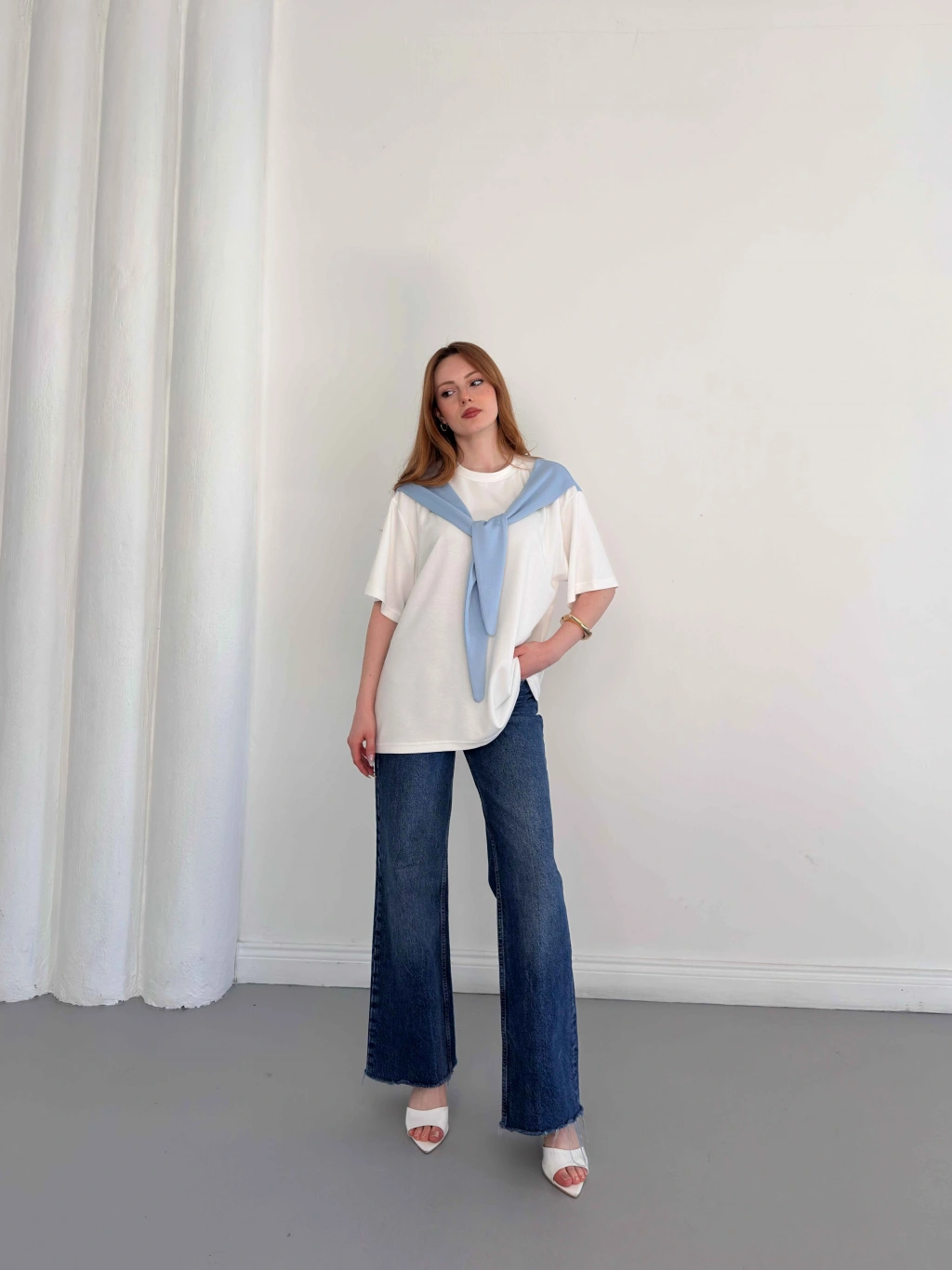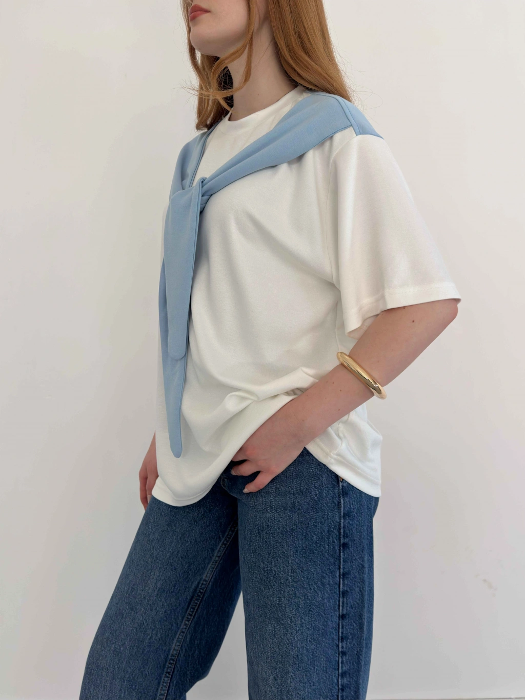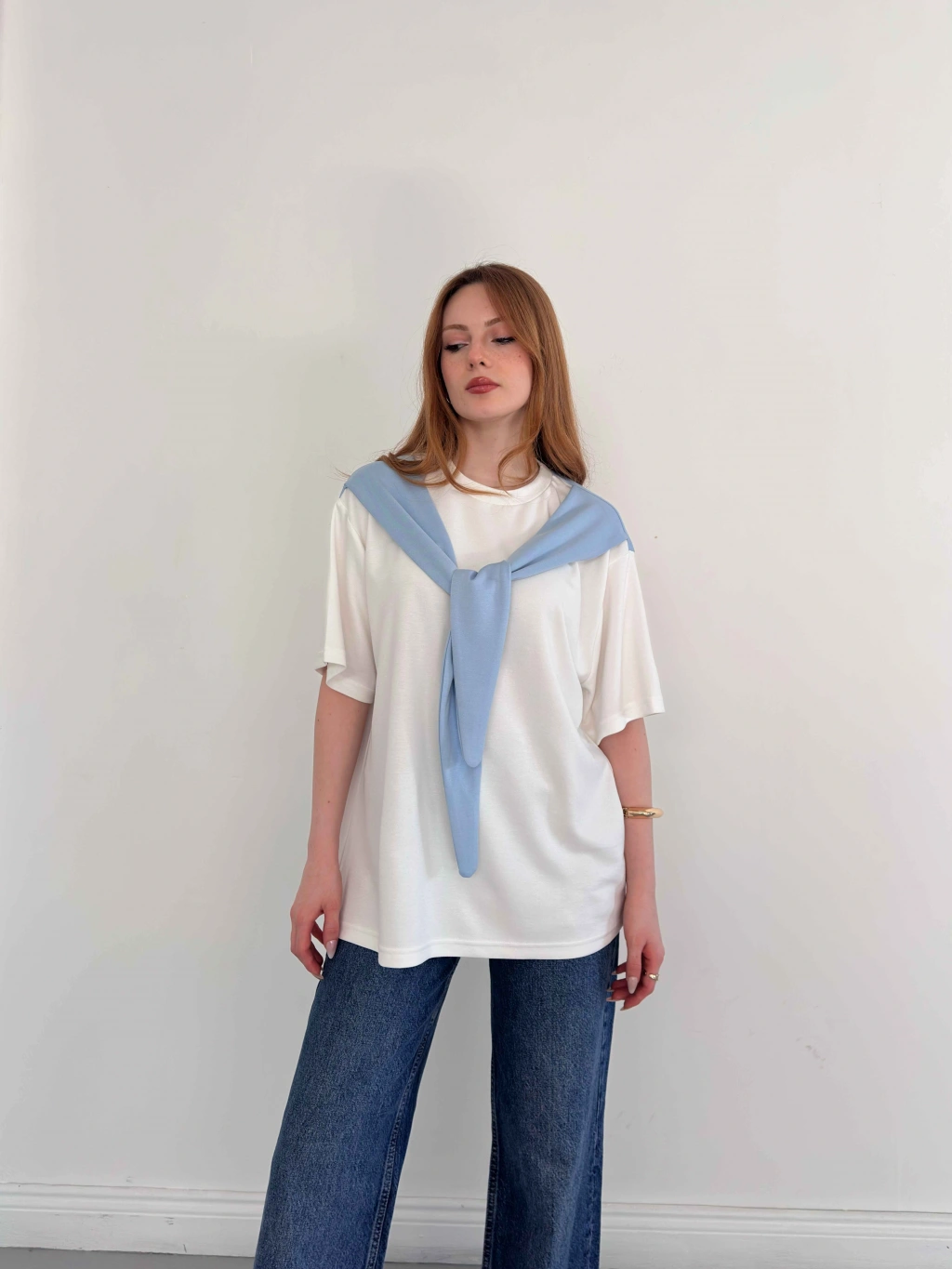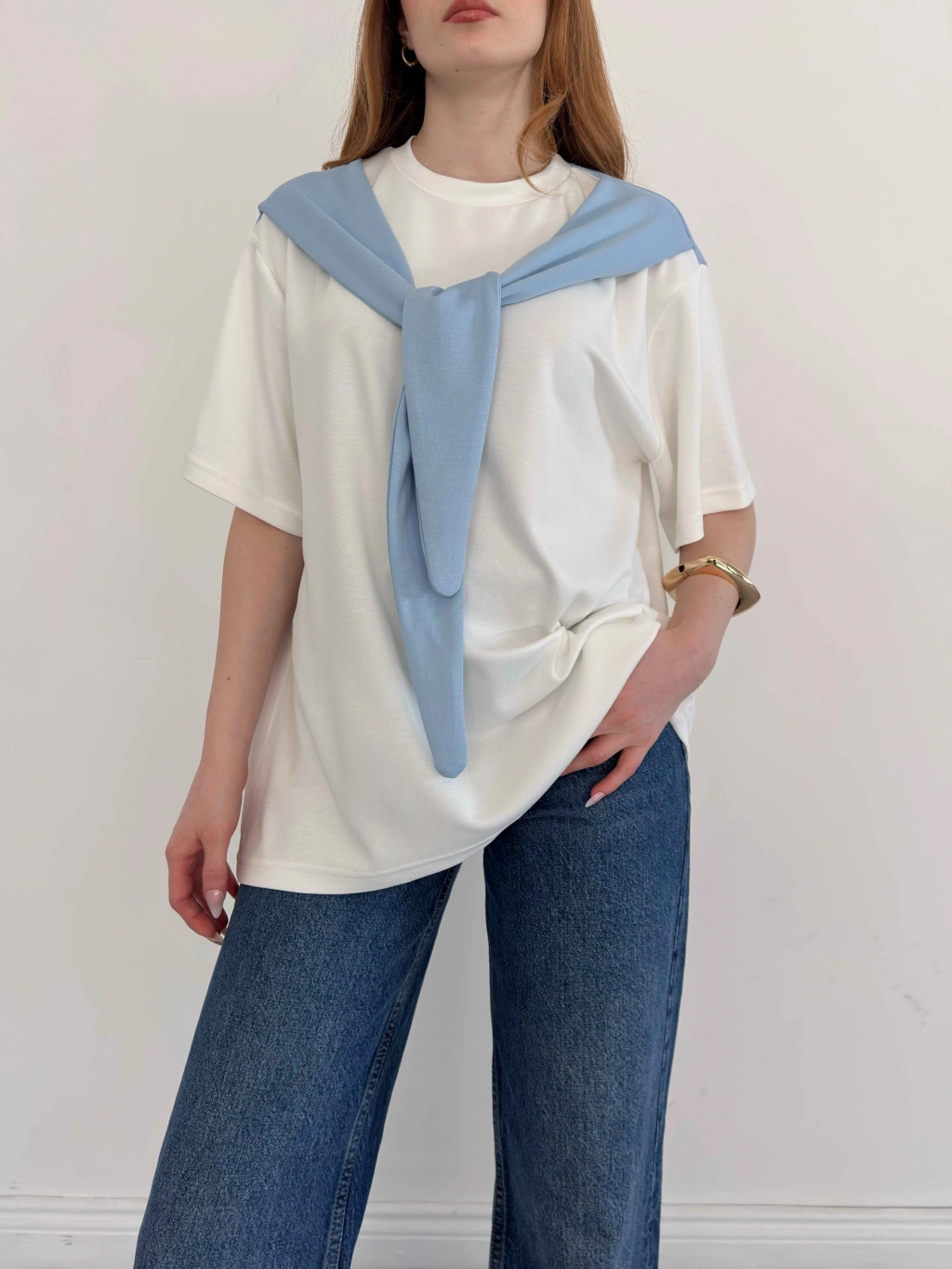 Omuzdan Bağlama Detaylı Oversize Tişört Mavi