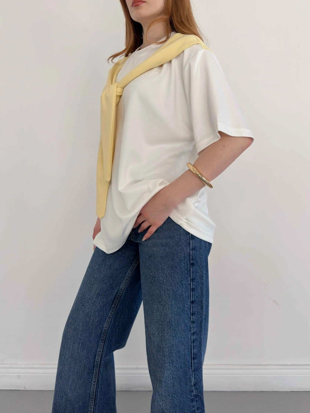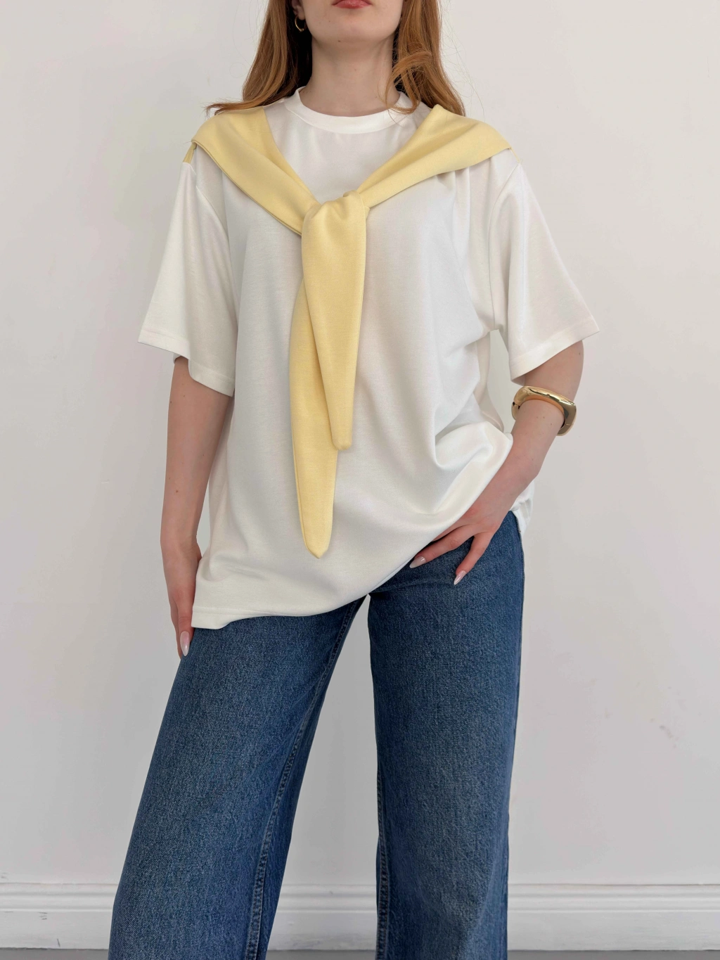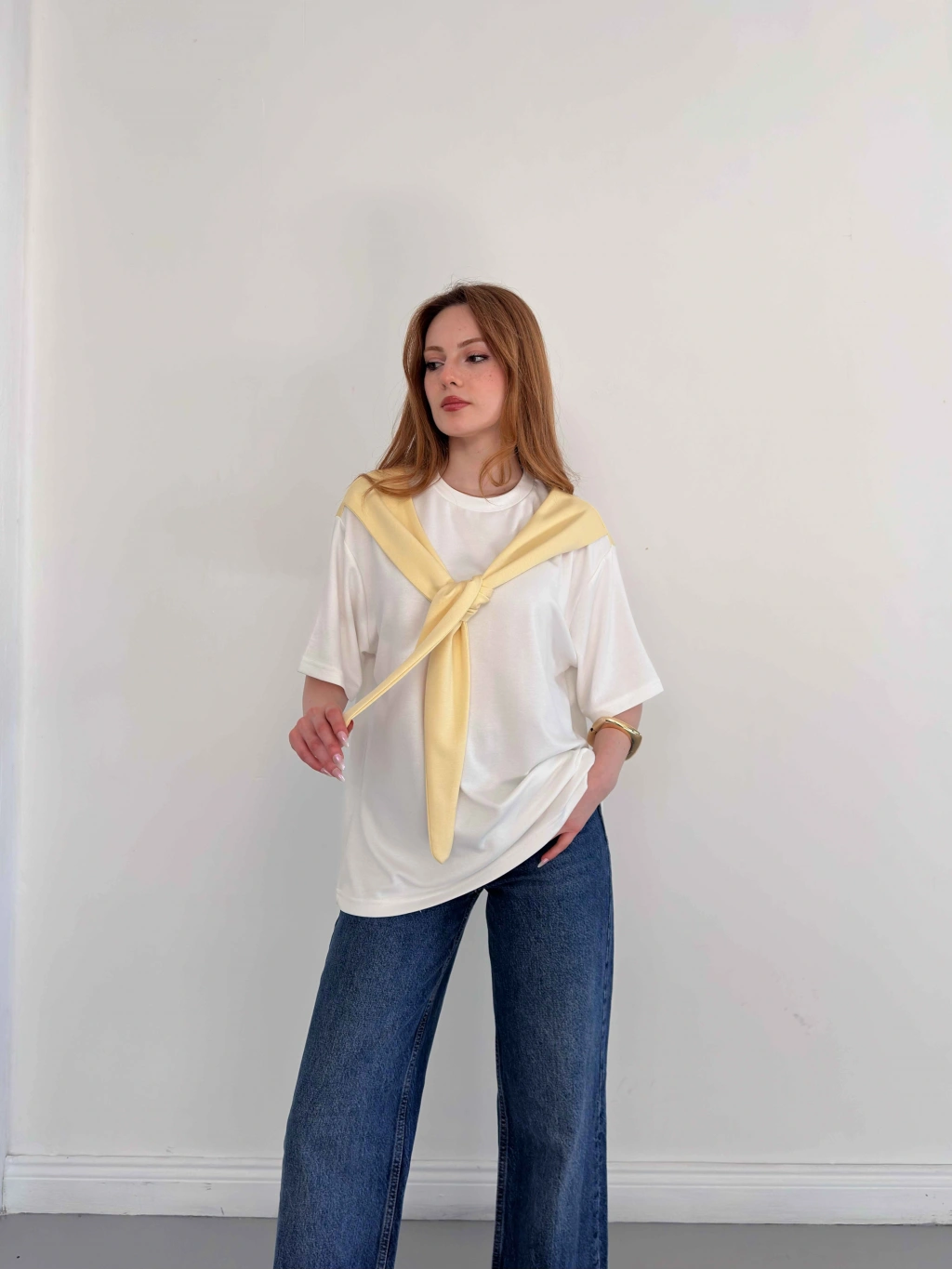 Omuzdan Bağlama Detaylı Oversize Tişört Sarı