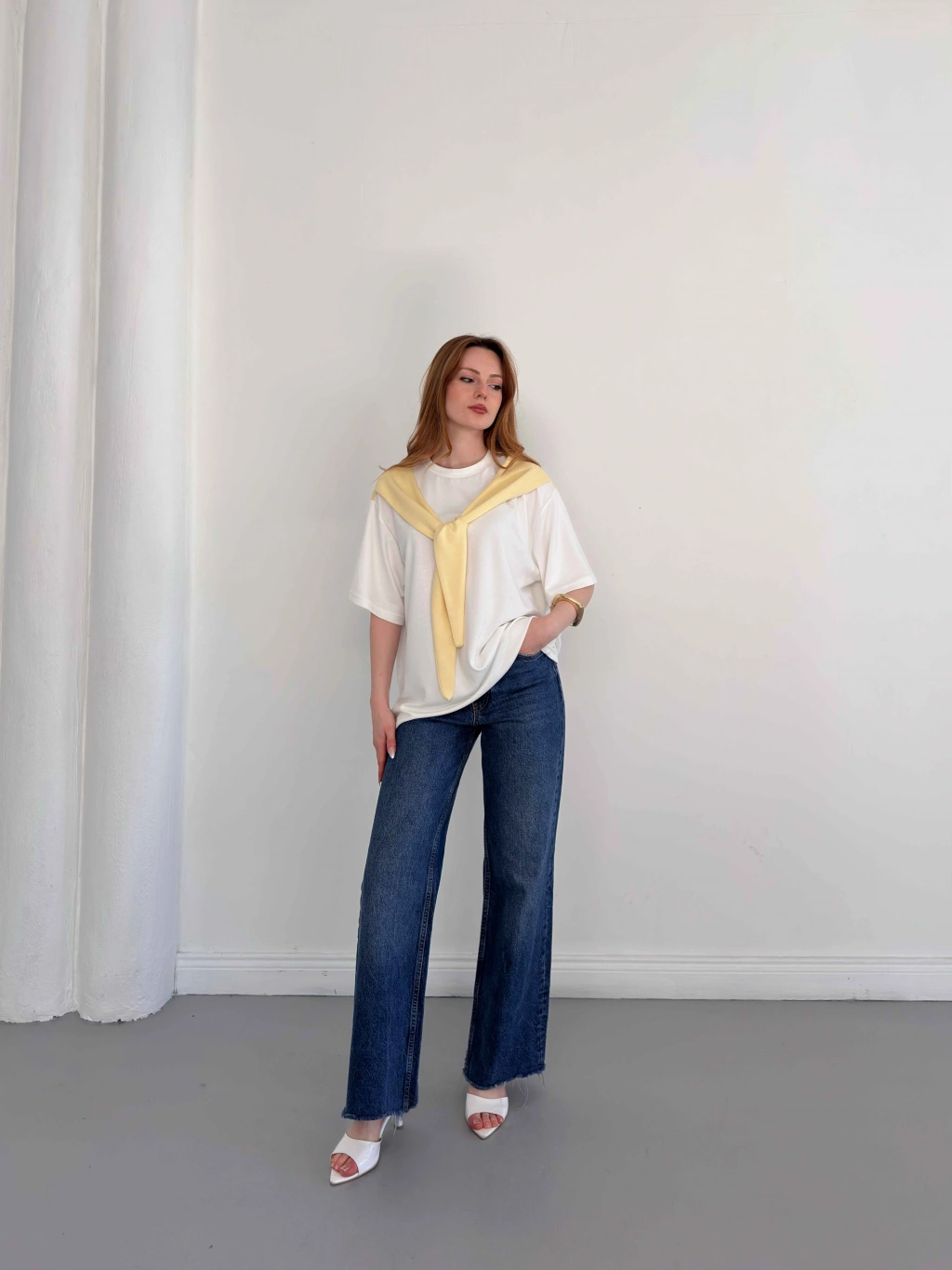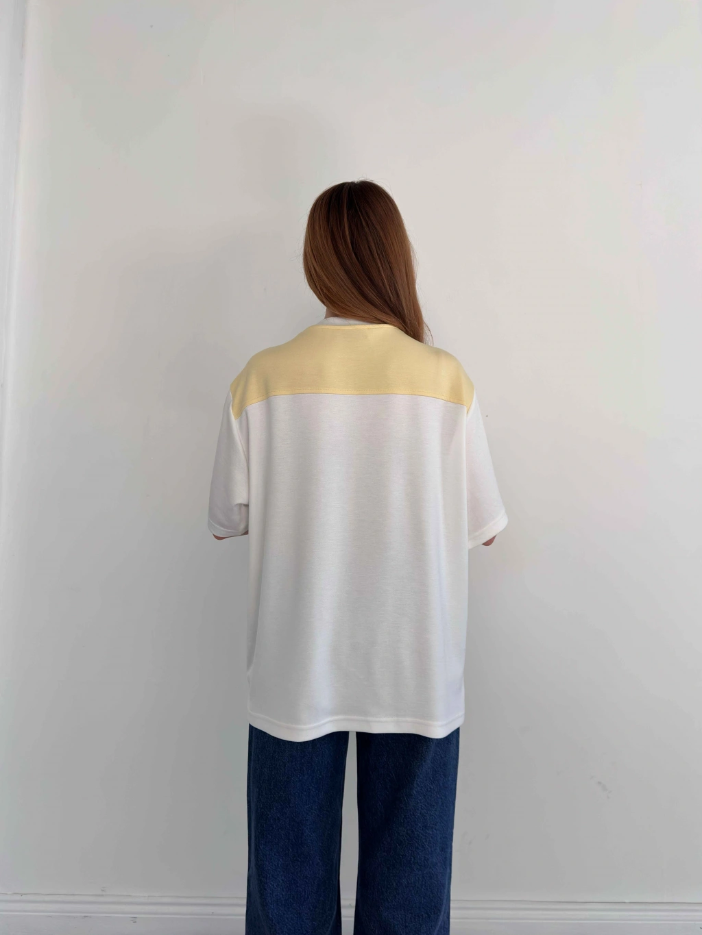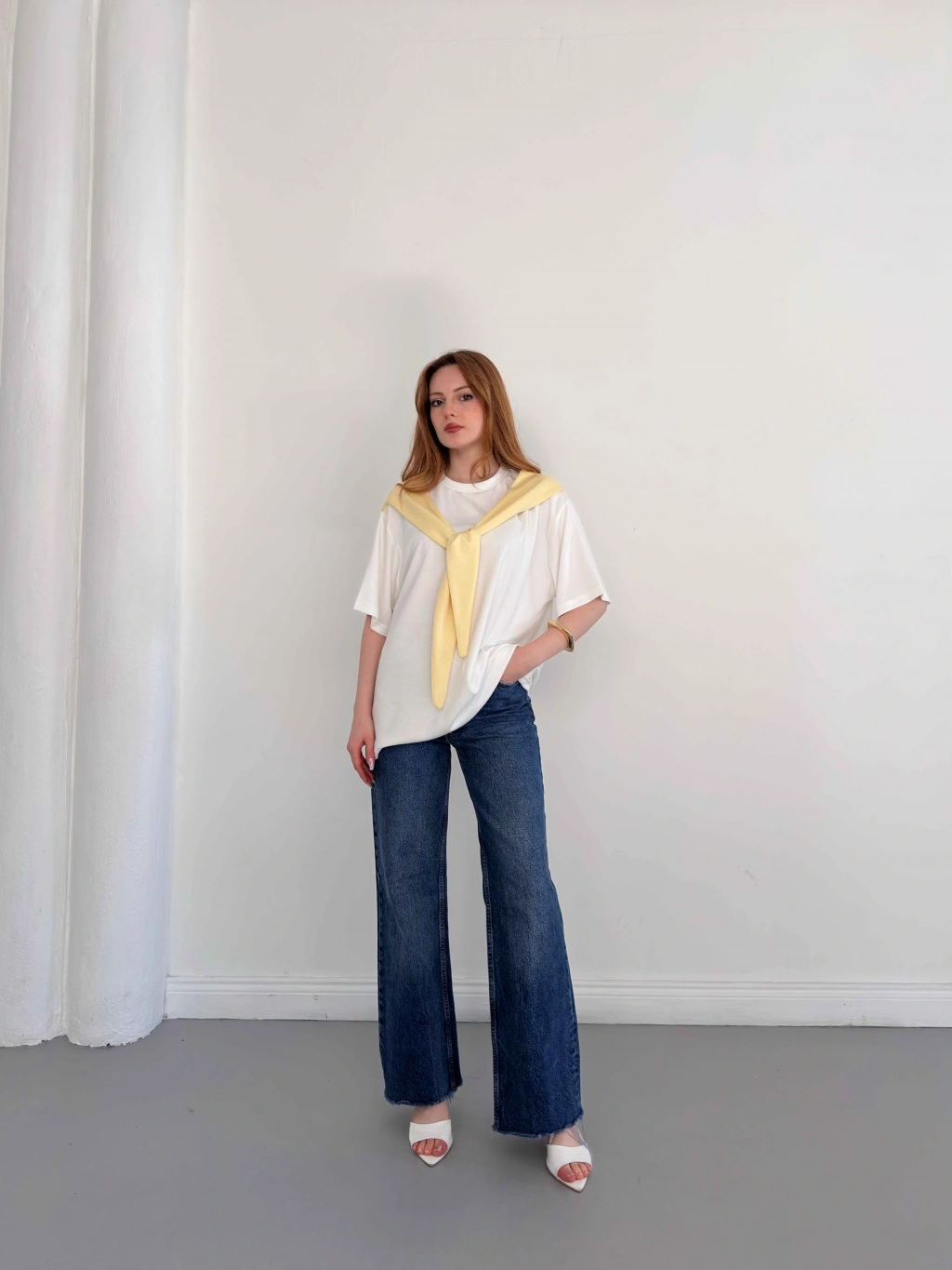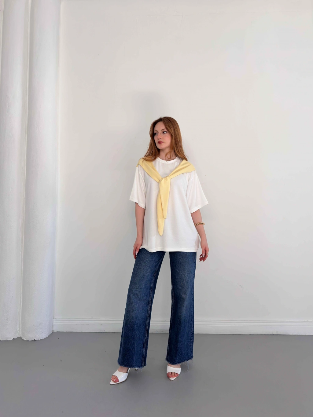 Omuzdan Bağlama Detaylı Oversize Tişört Sarı