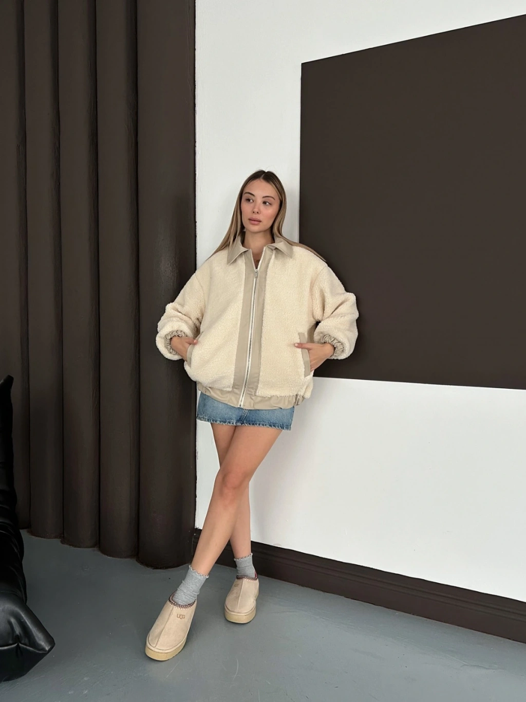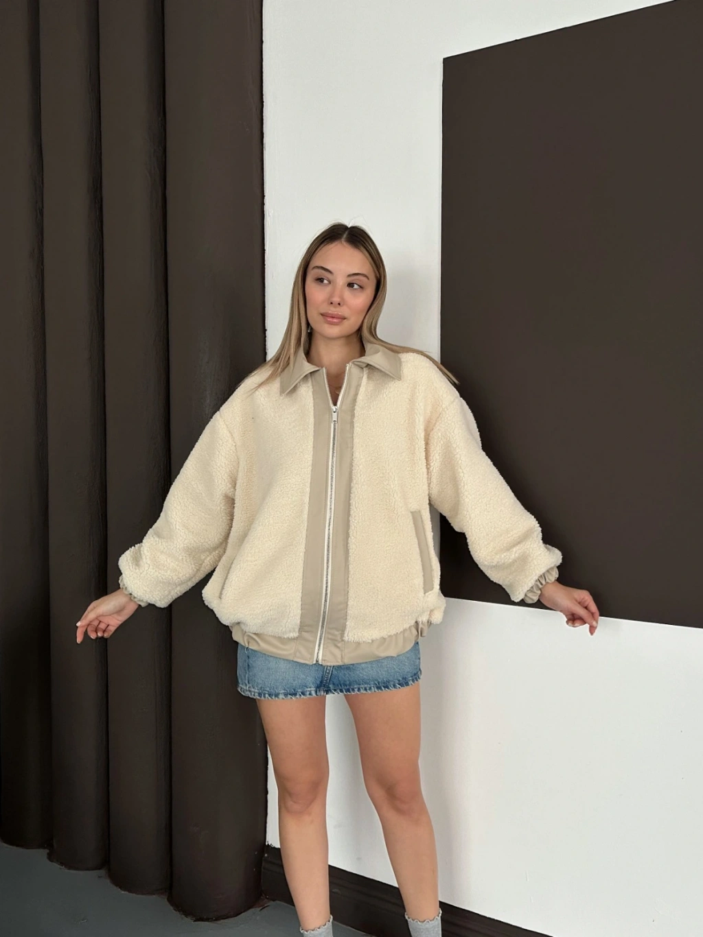 Oversize Salaş Teddy Peluş Ceket Ekru