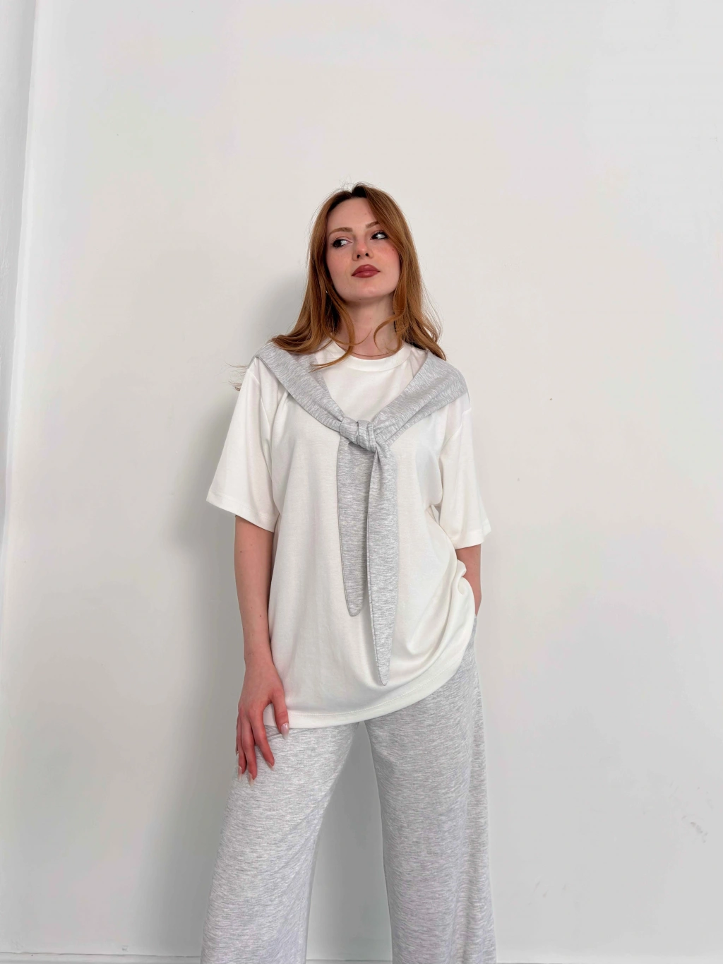 Omuzdan Bağlama Detaylı Oversize Tişört Siyah