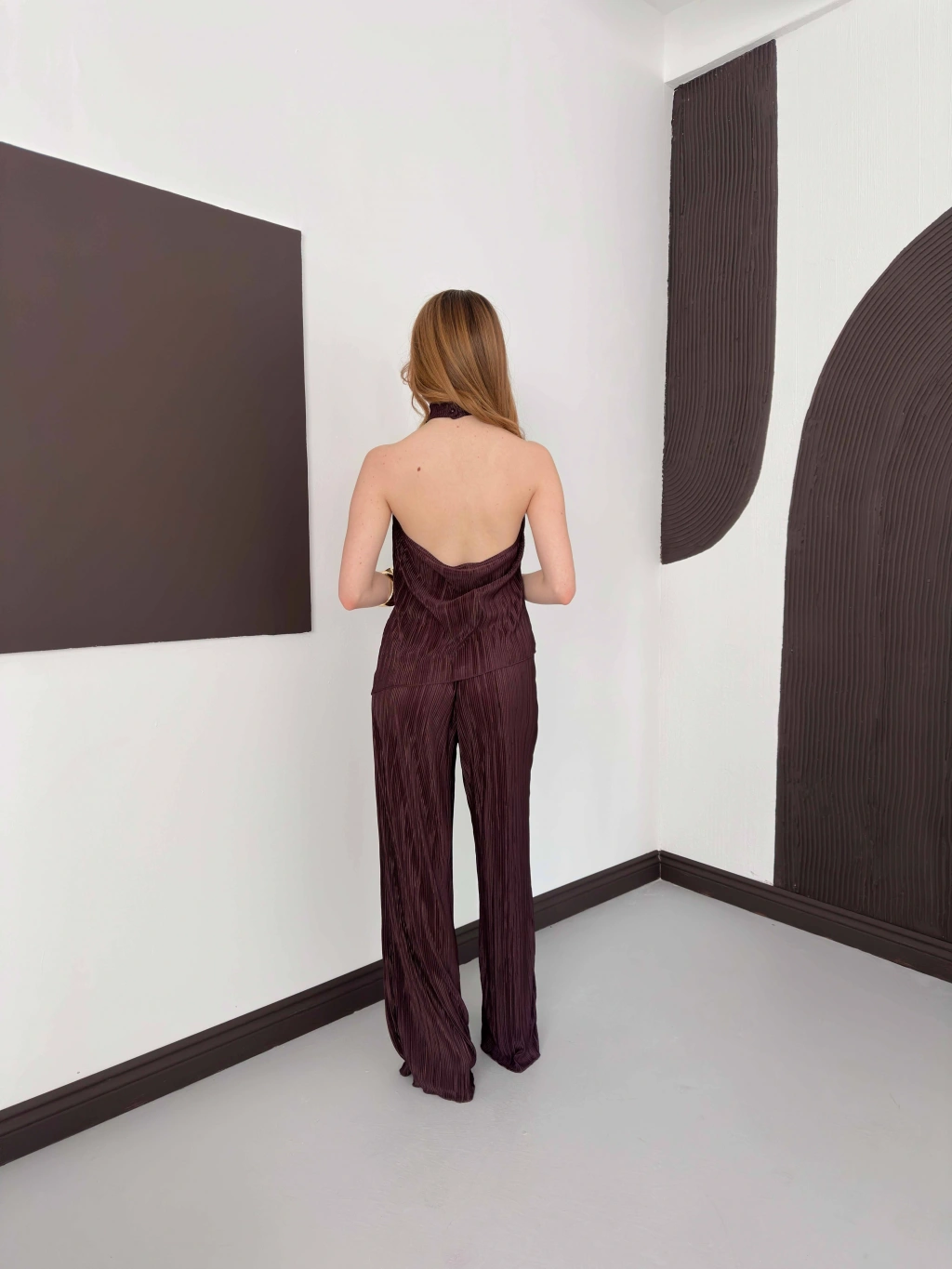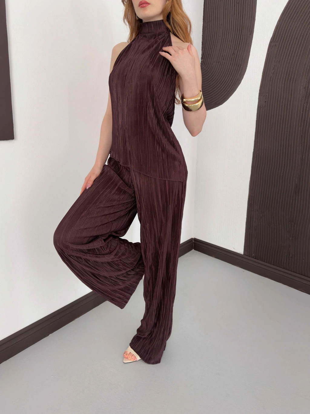 Piliseli Sırt Detaylı İkili Takım Kahve
