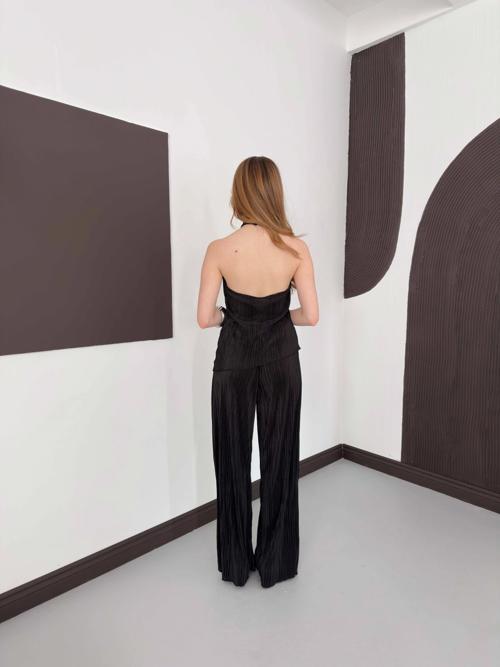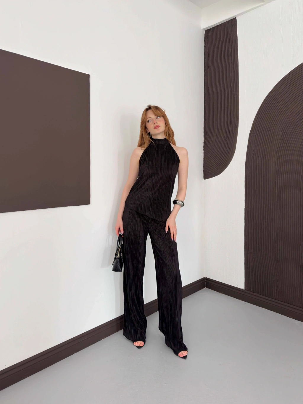 Piliseli Sırt Detaylı İkili Takım Kahve