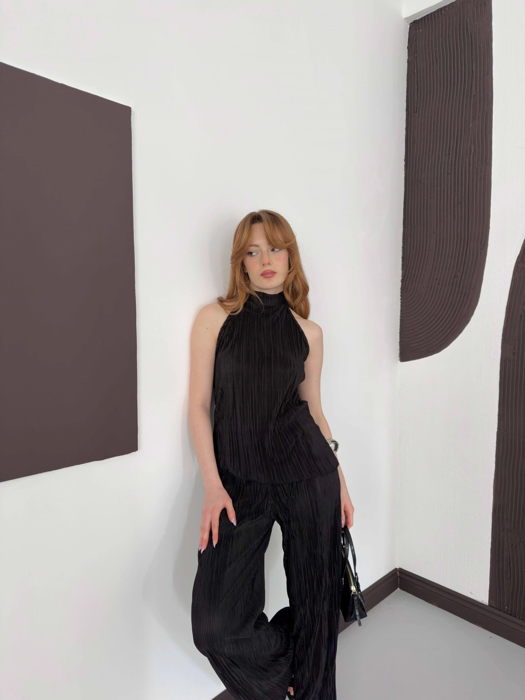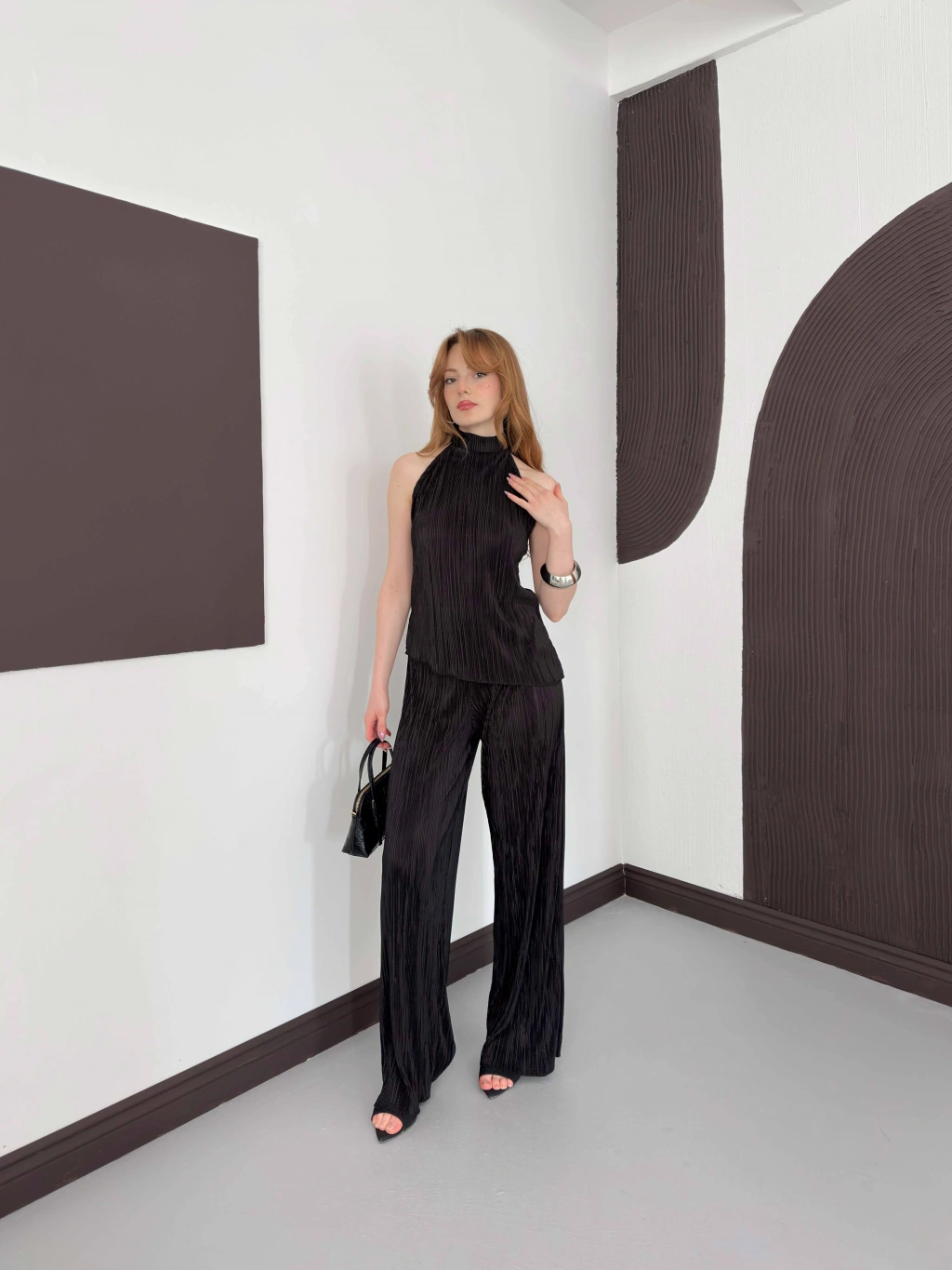 Piliseli Sırt Detaylı İkili Takım Siyah