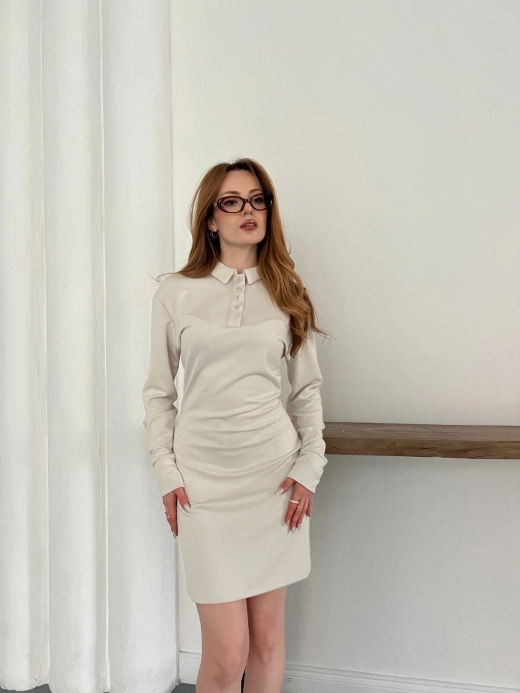 Polo Yaka Düğme Detaylı Uzun Kol Mini Elbise