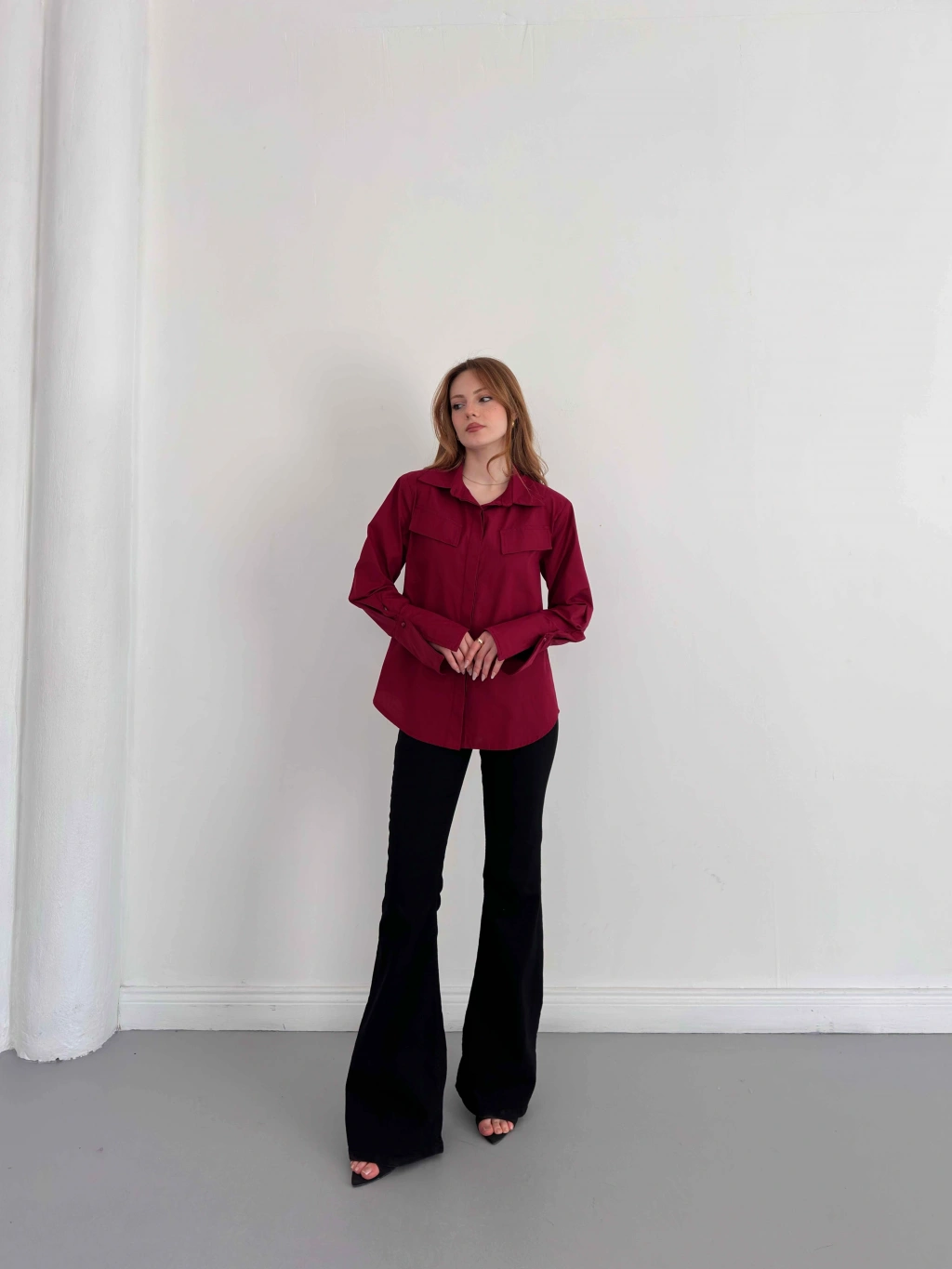 Kemer Detaylı Kruvaze Yaka Yelek Bordo