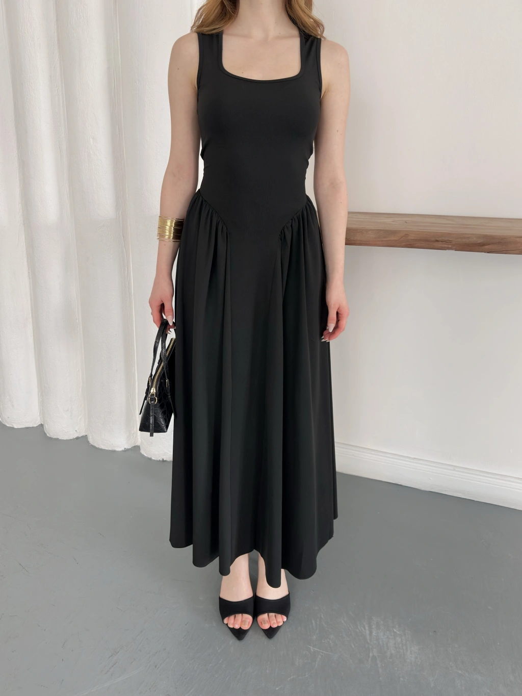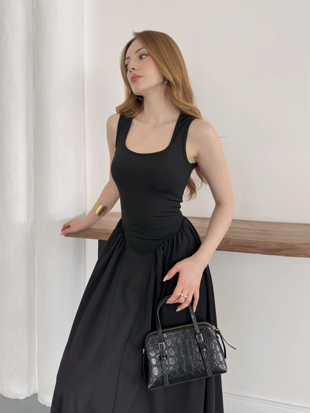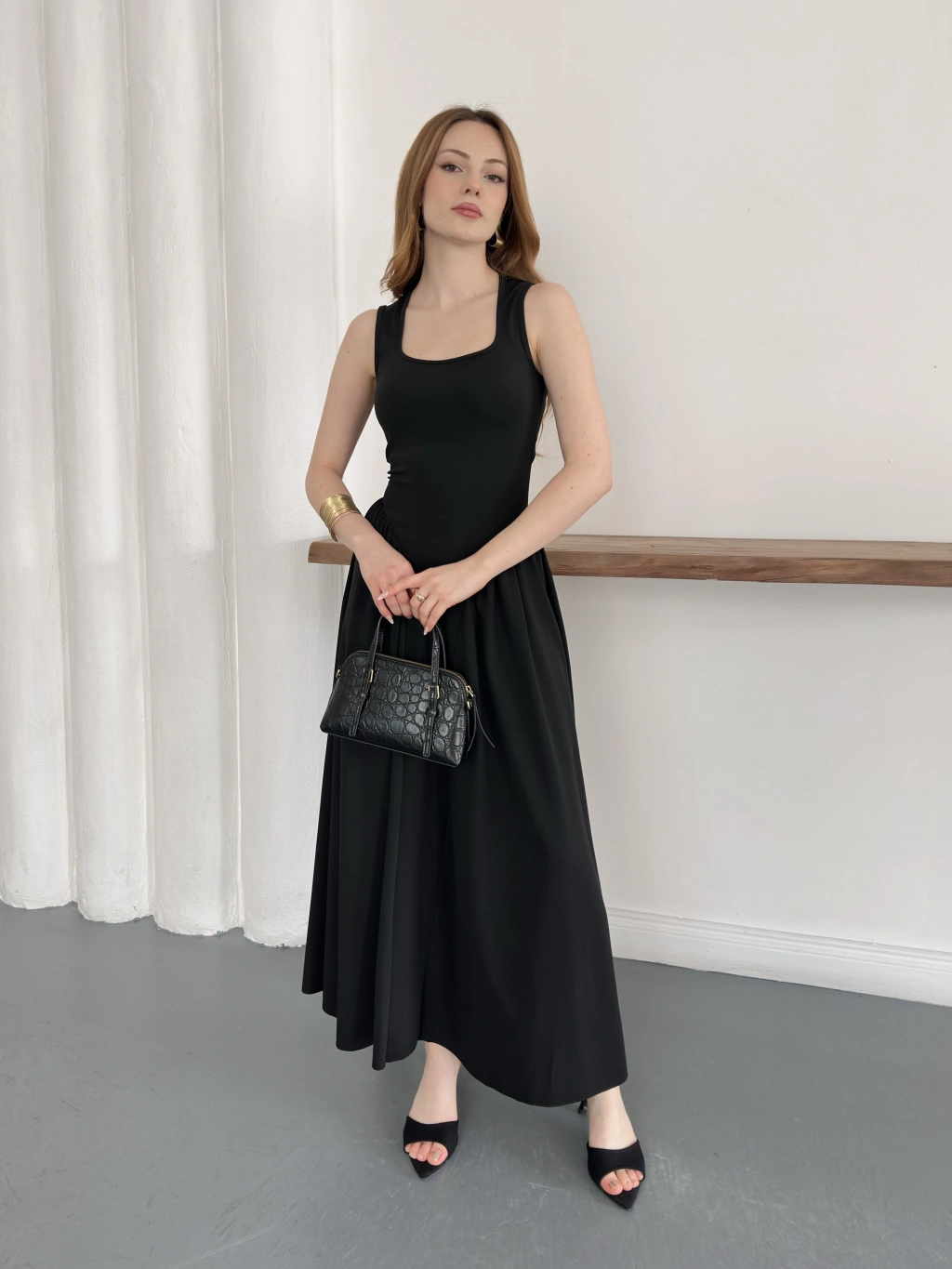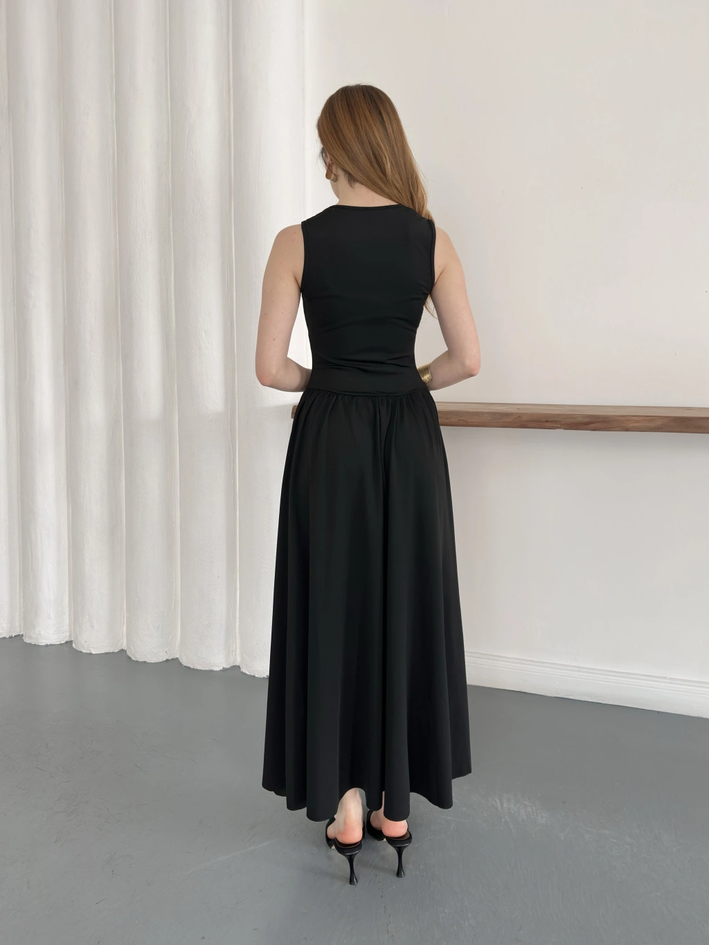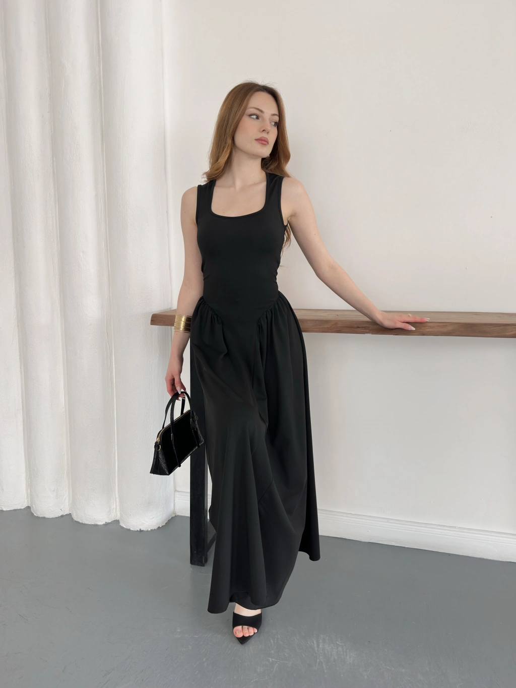 Premium Dokulu Prenses Uzun Elbise Siyah