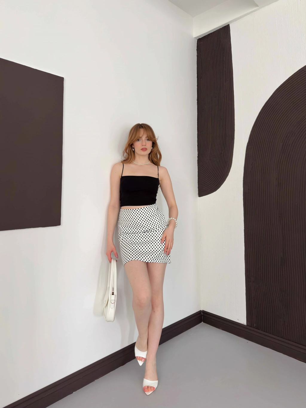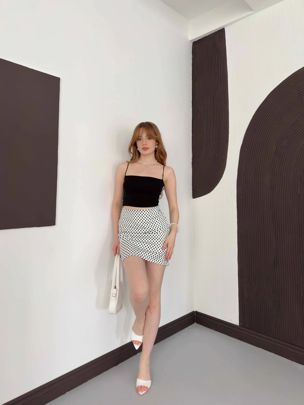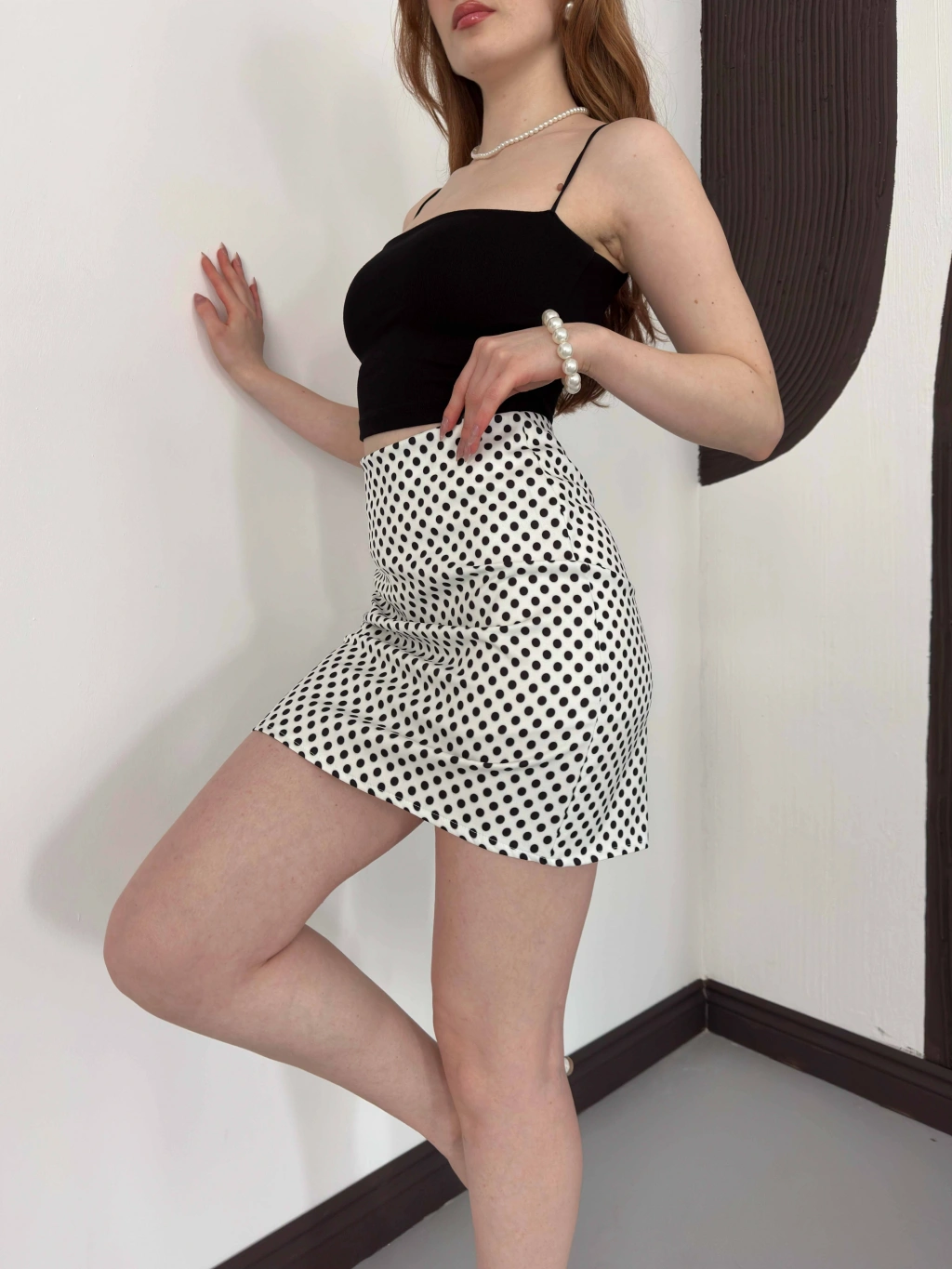 Puantiyeli İçi Şortlu Mini Etek Beyaz