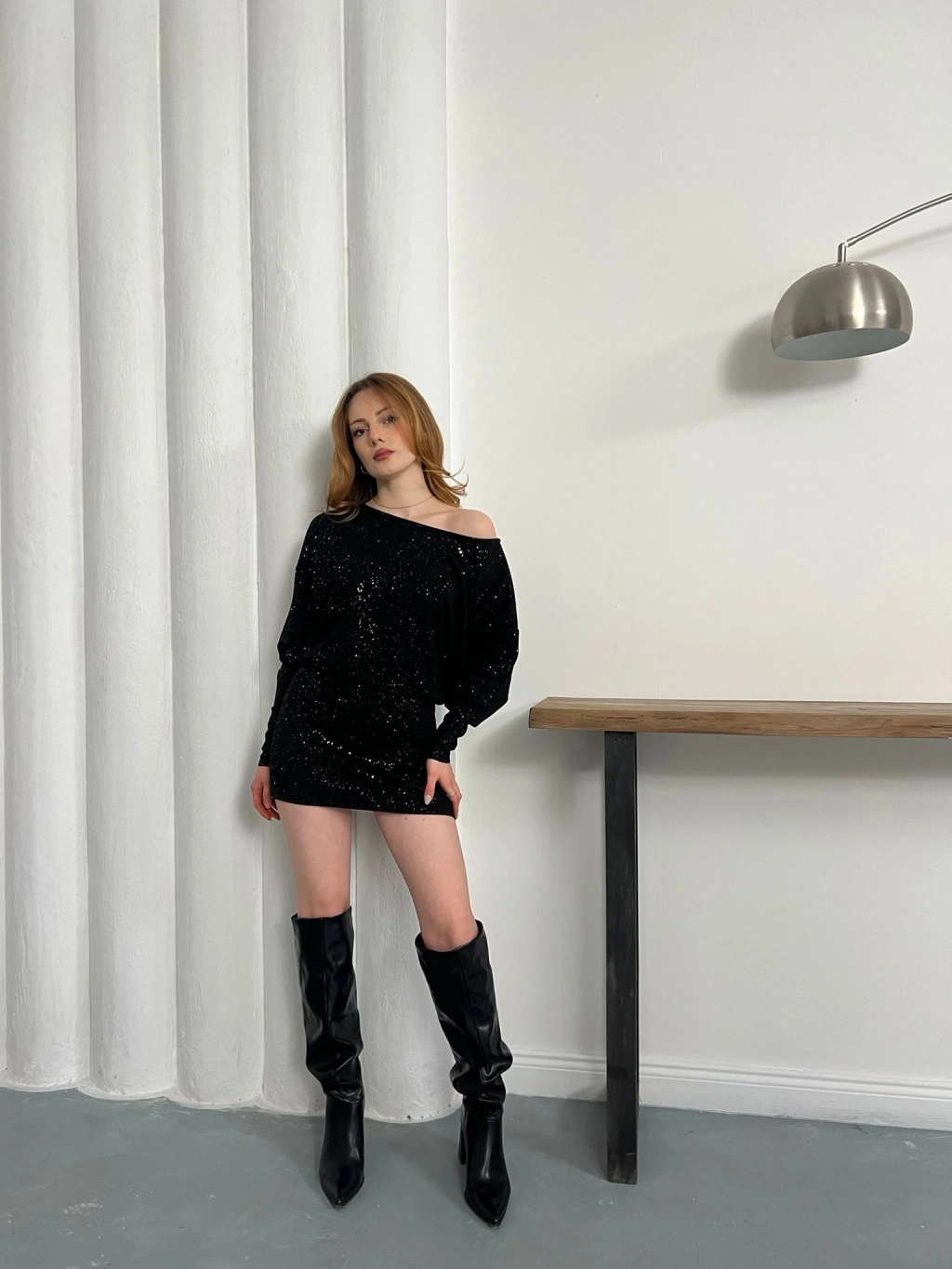 Sim Detaylı Tek Omuz Mini Elbise Siyah