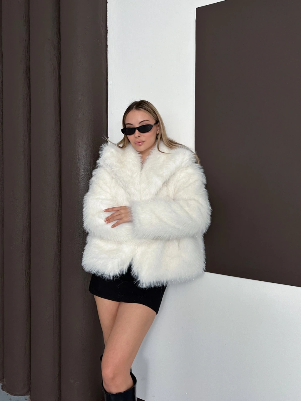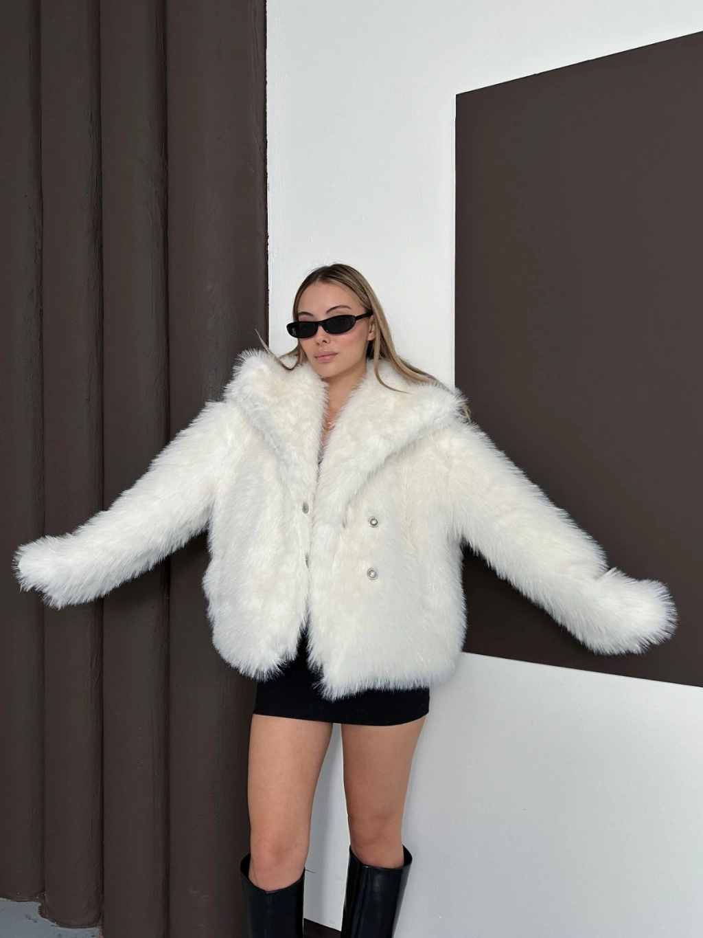 Oversize Salaş Teddy Peluş Ceket Ekru