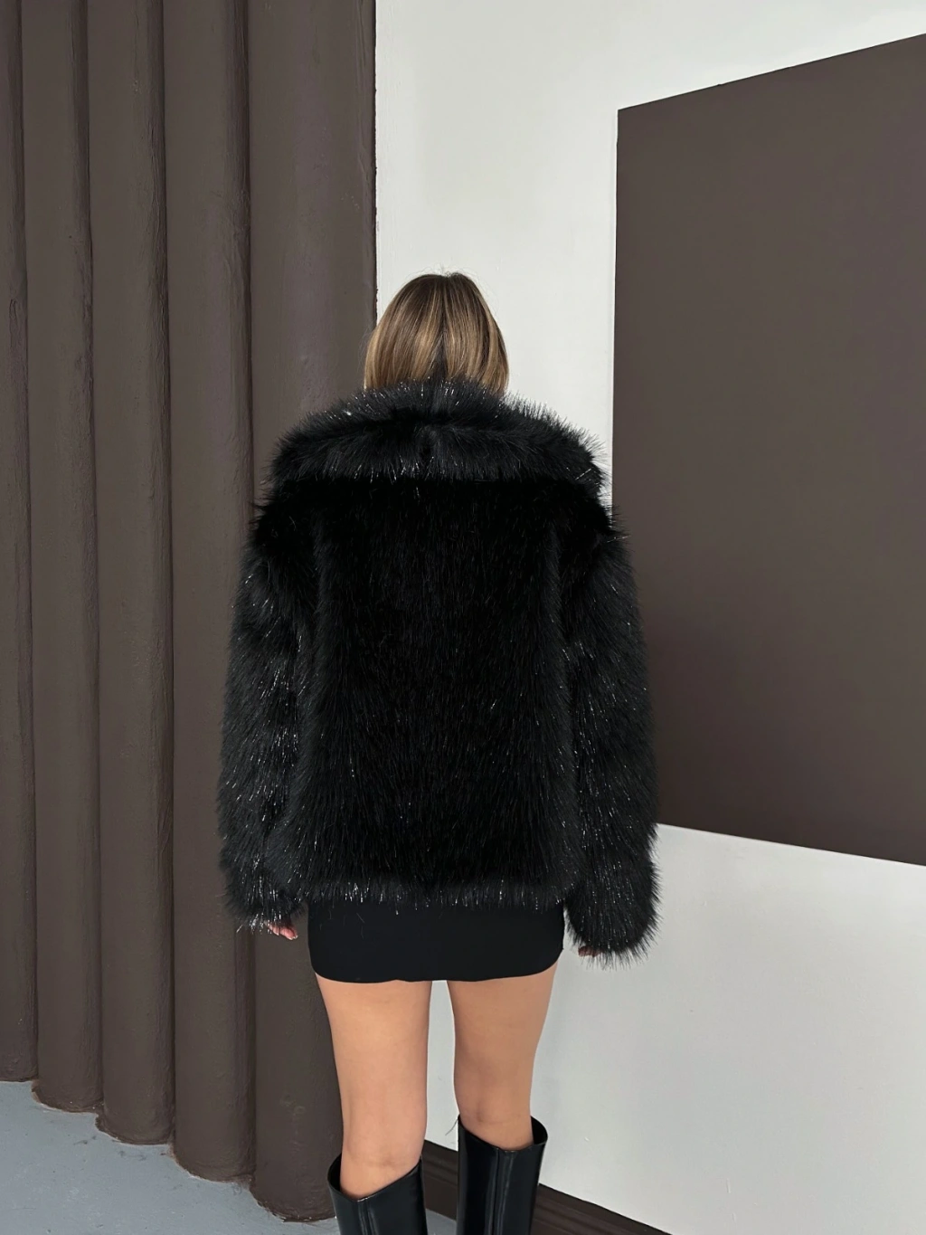 Peluş Cep detaylı Fermuarlı Ceket Siyah