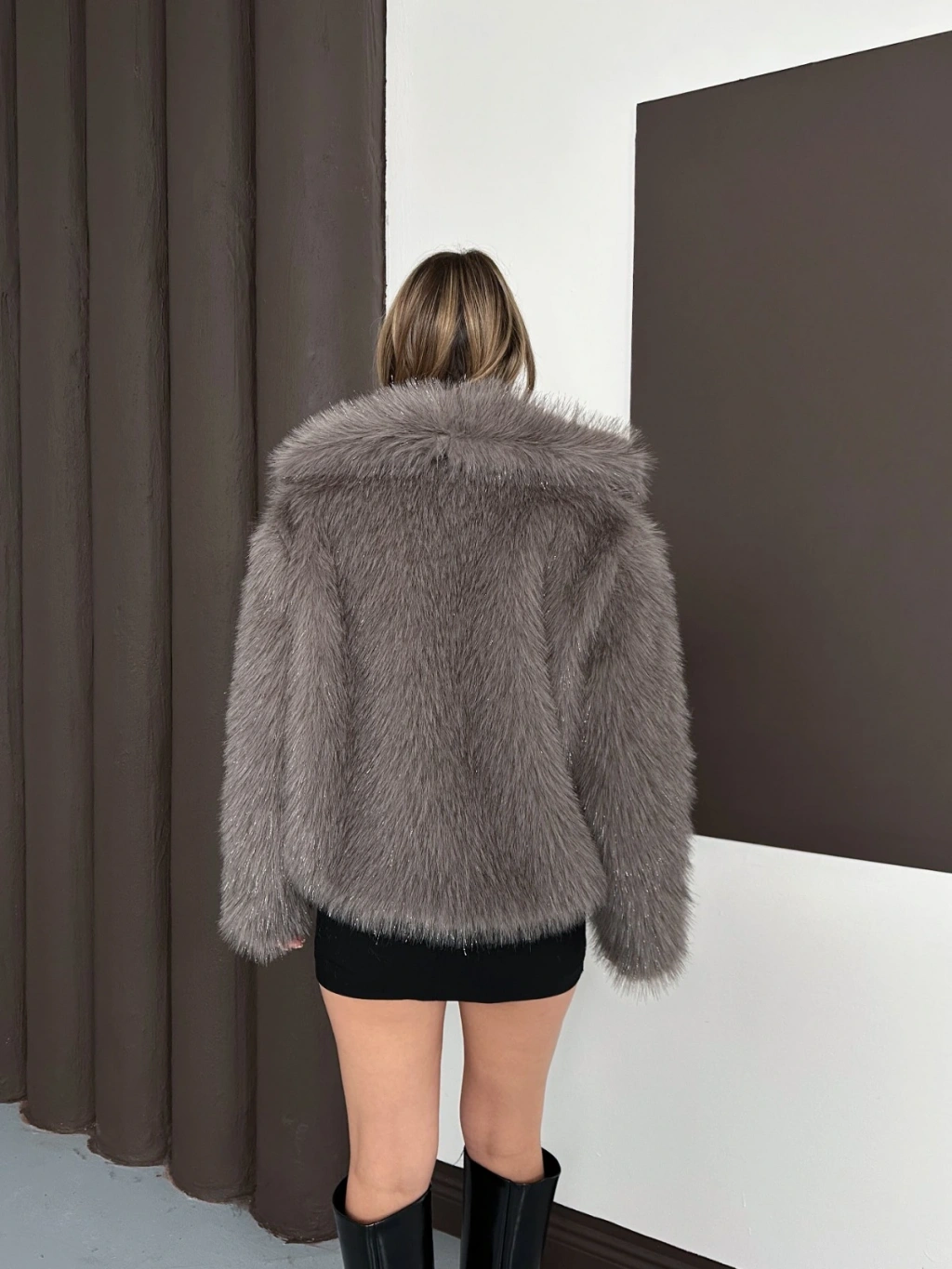 Peluş Cep detaylı Fermuarlı Ceket Acı Kahve