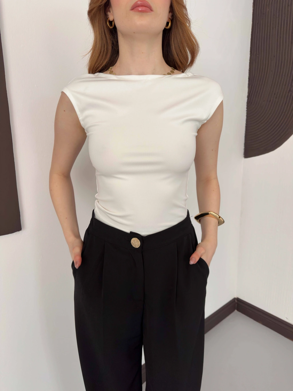 Sırt Dekolteli Bluz Beyaz