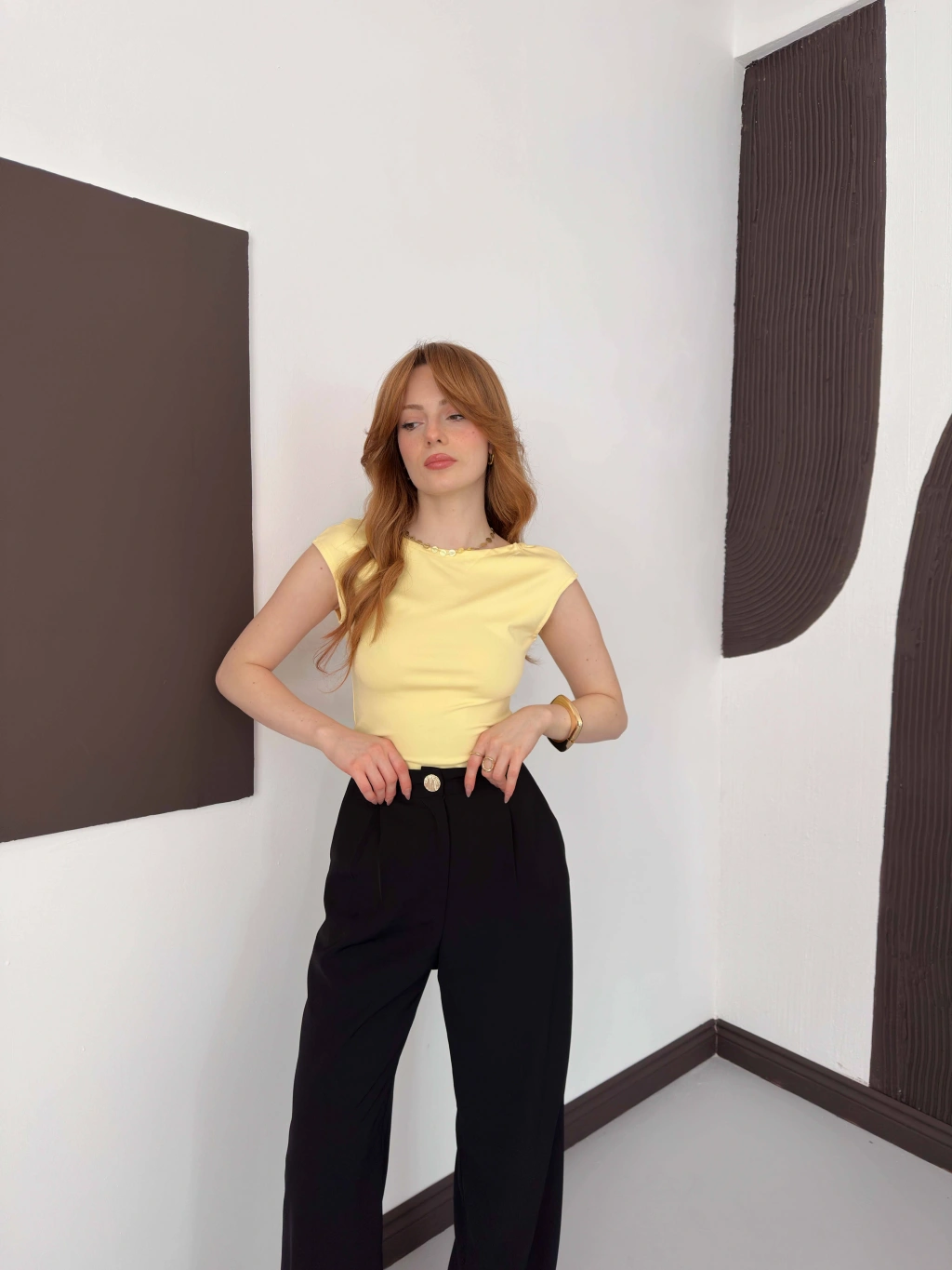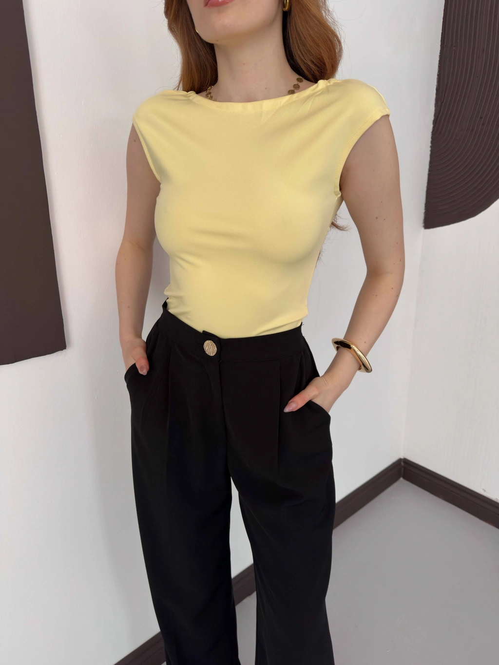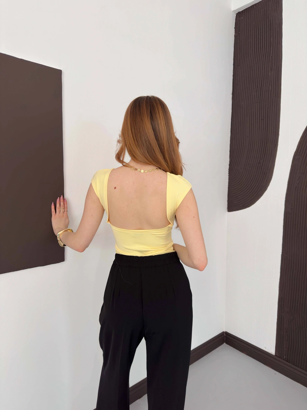 Sırt Dekolteli Bluz Sarı