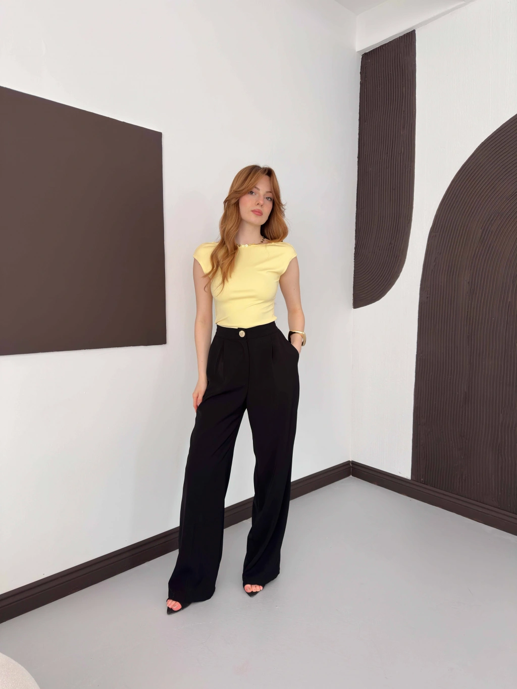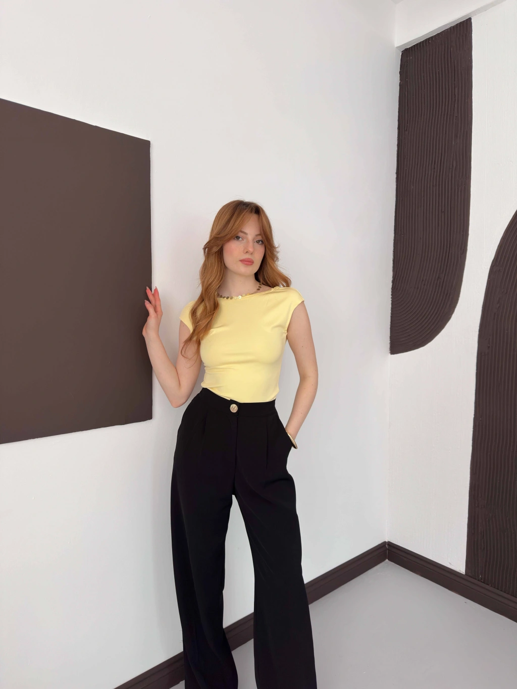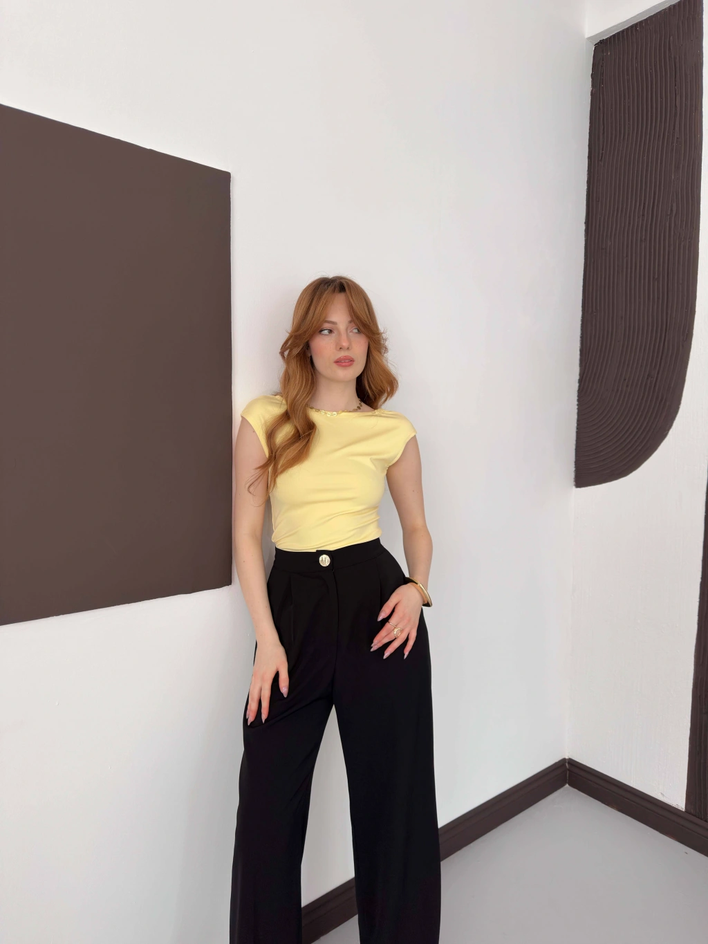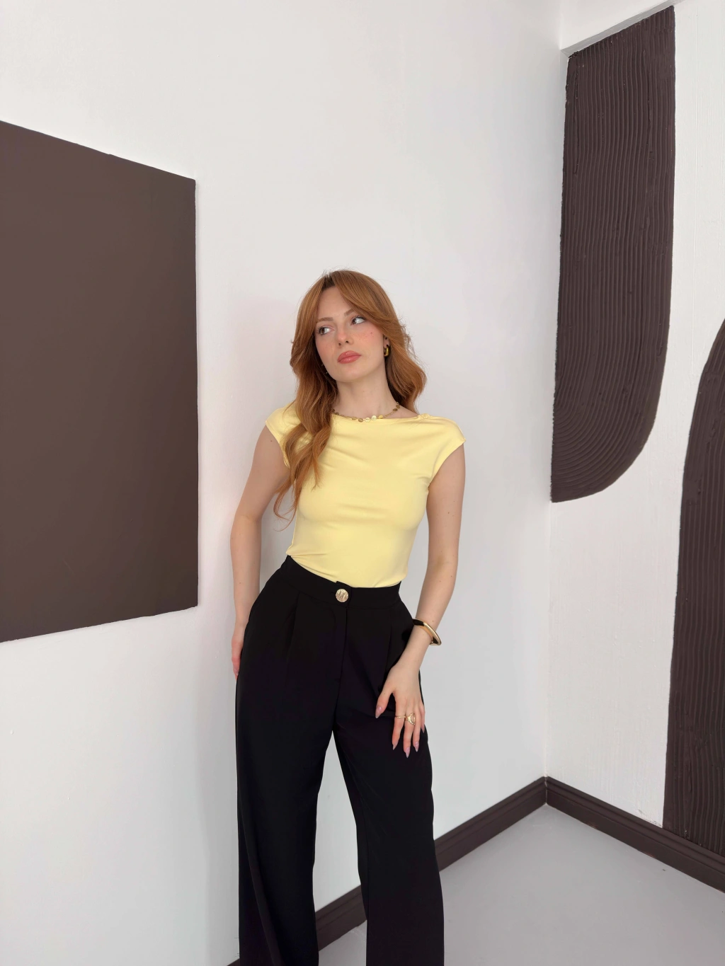 Sırt Dekolteli Bluz Sarı