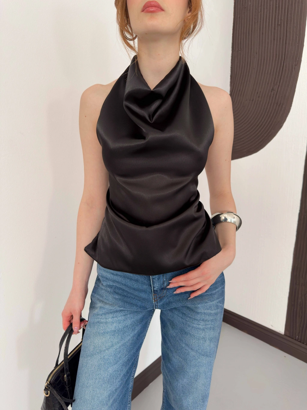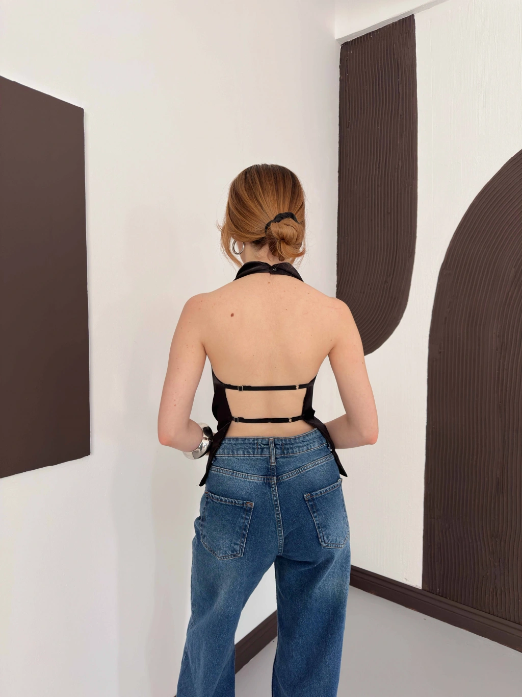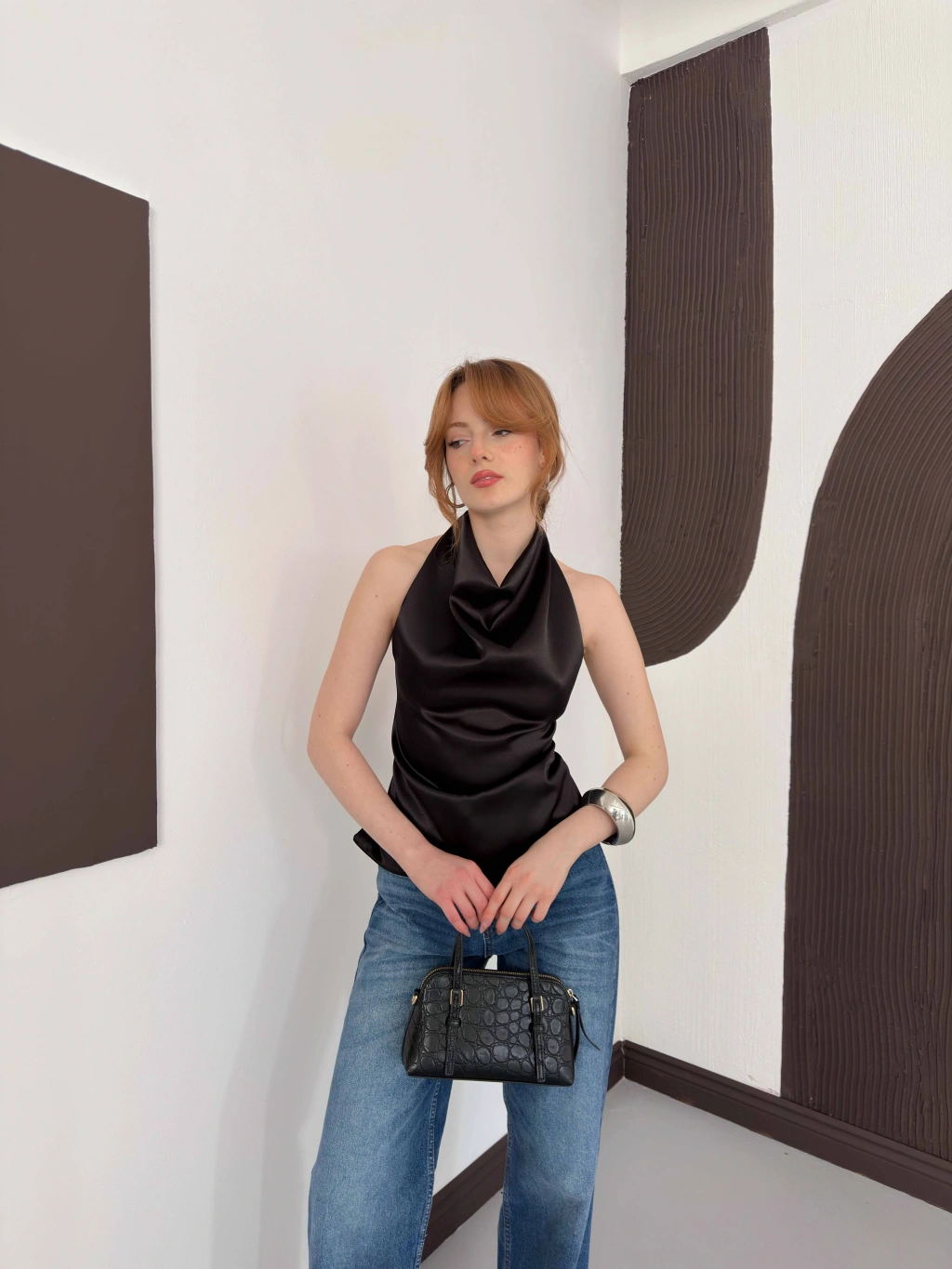 Aksesuar Detaylı Dekolte Bluz Siyah