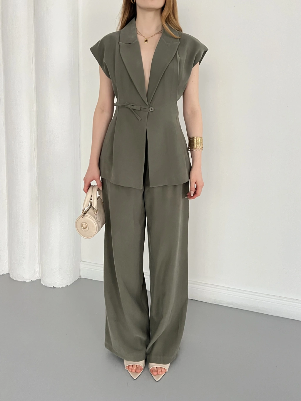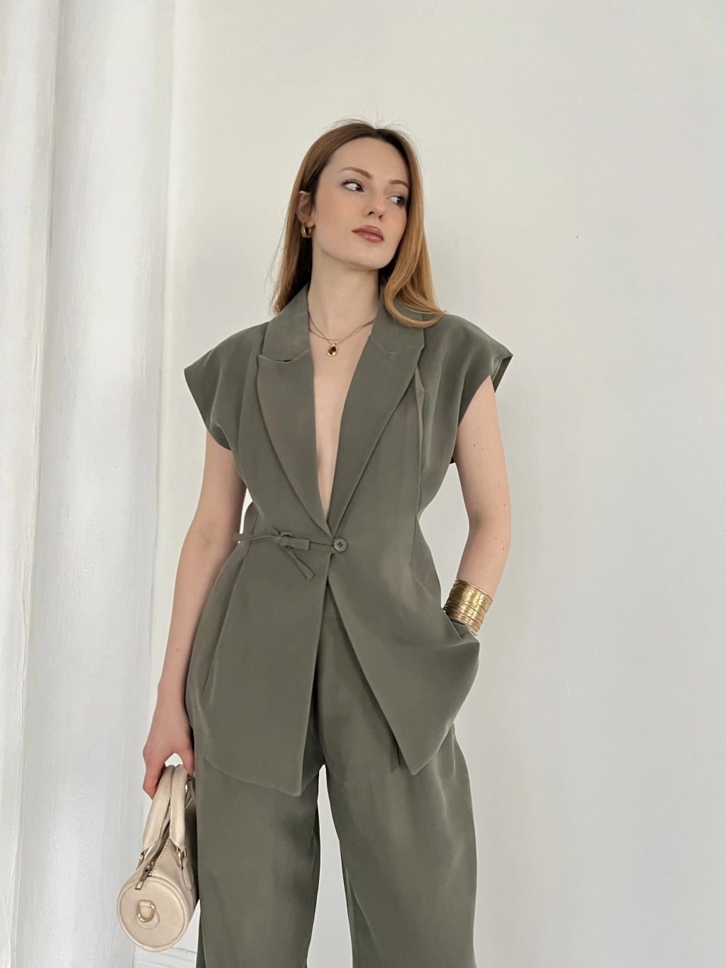 Tasarım Yelek Pantolon Takım Haki