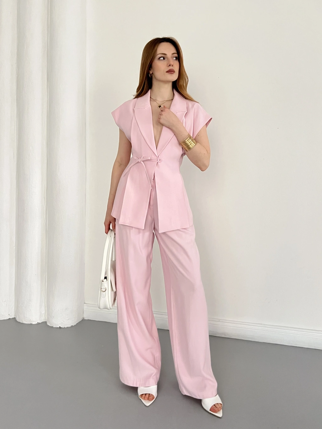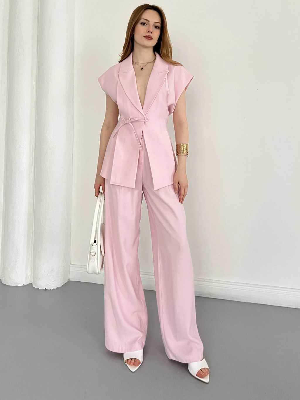 Tasarım Yelek Pantolon Takım Pembe