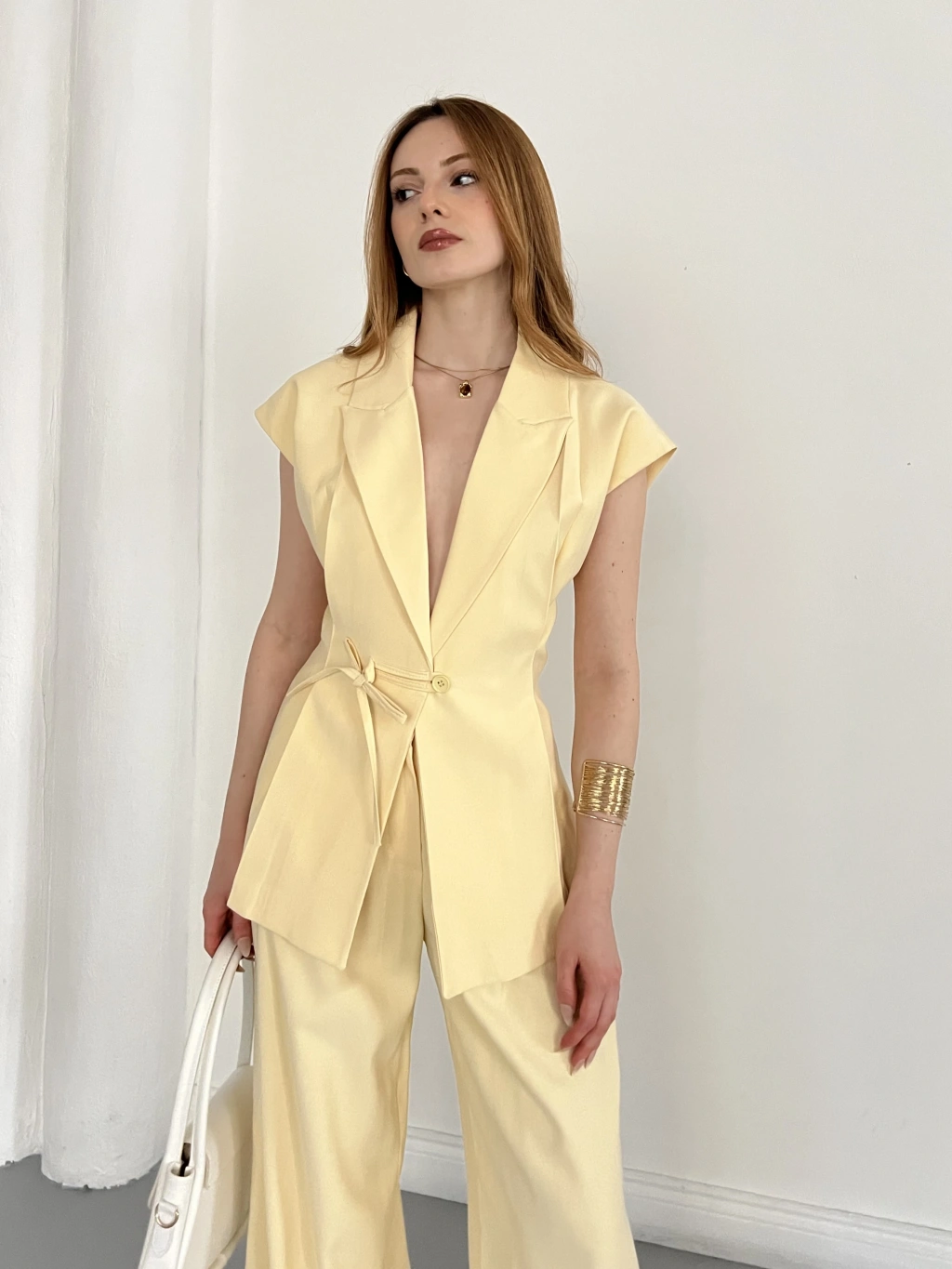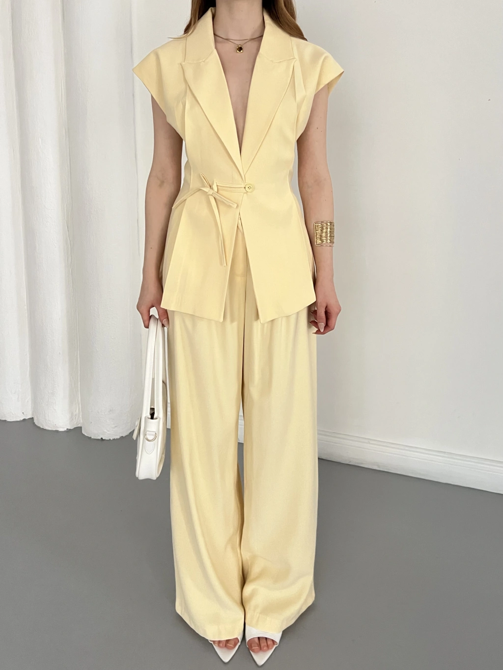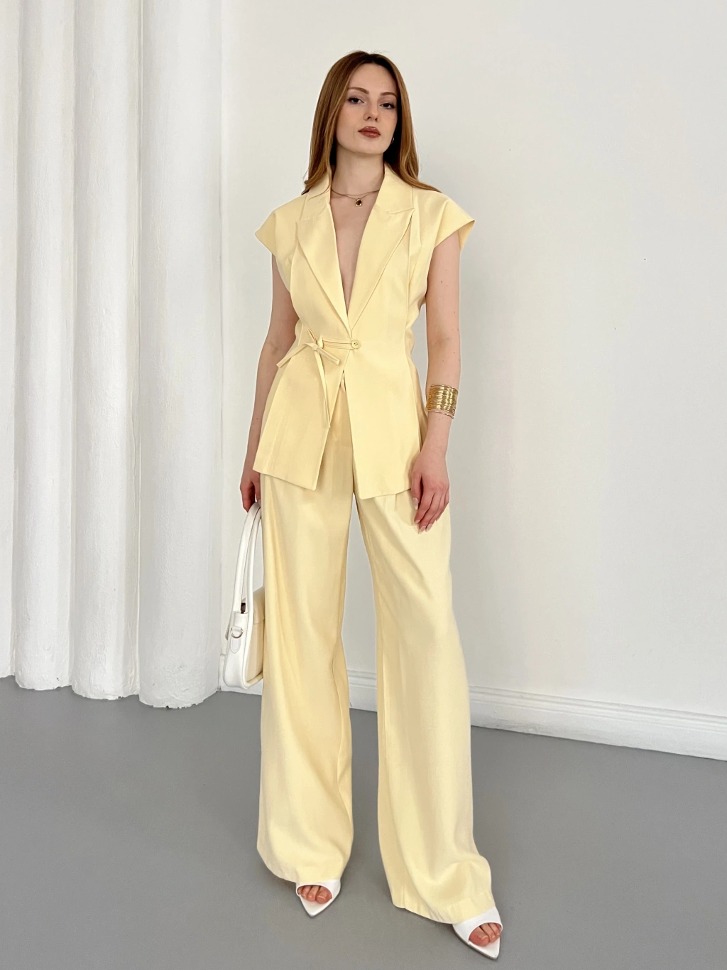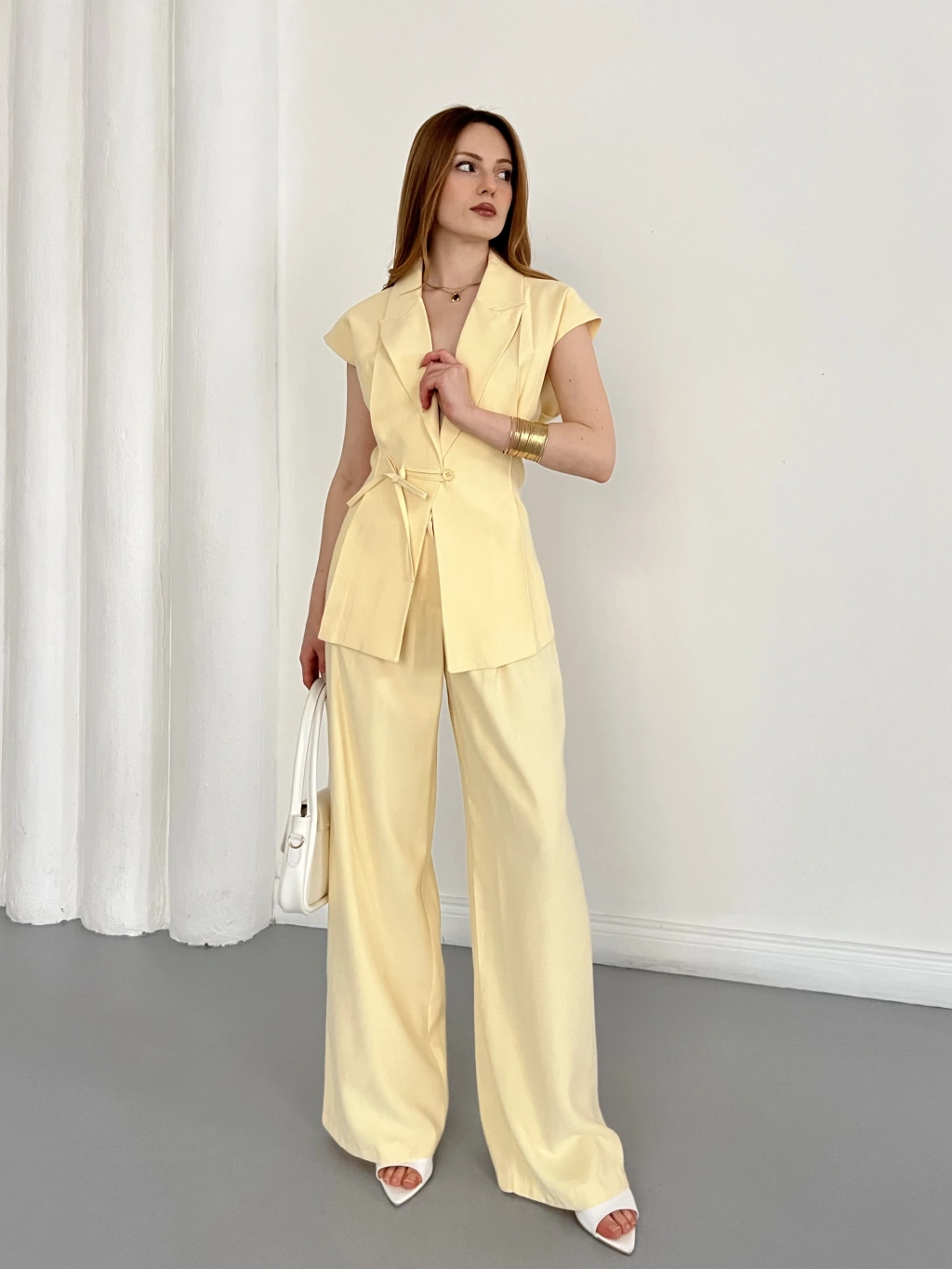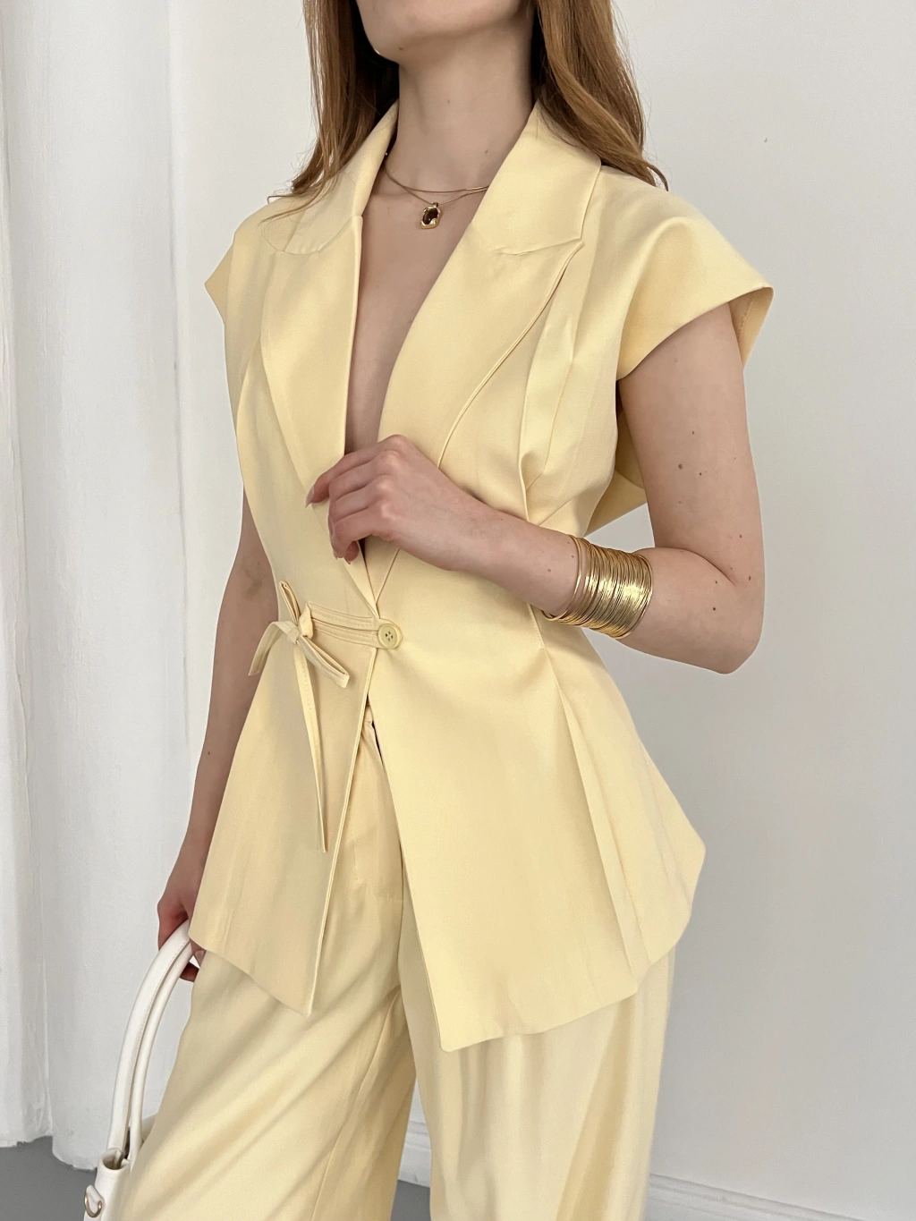 Tasarım Yelek Pantolon Takım Sarı