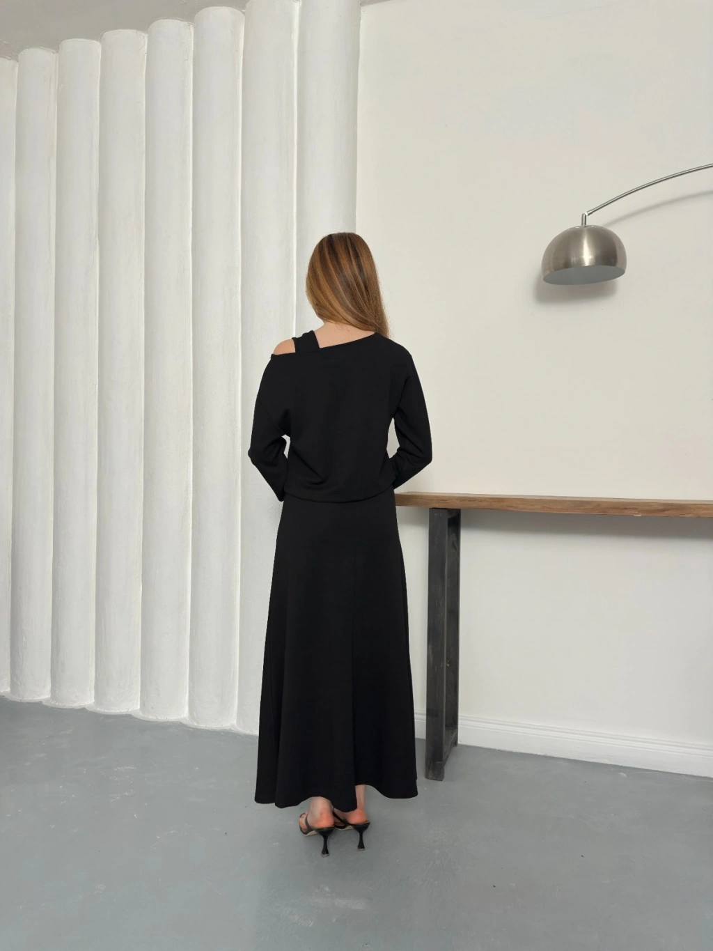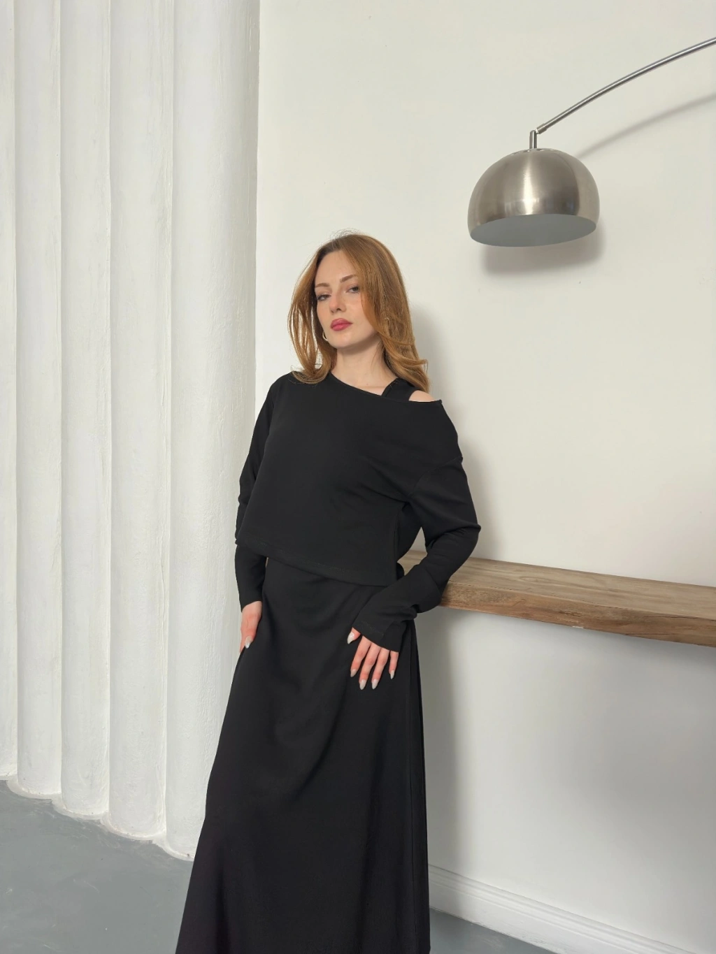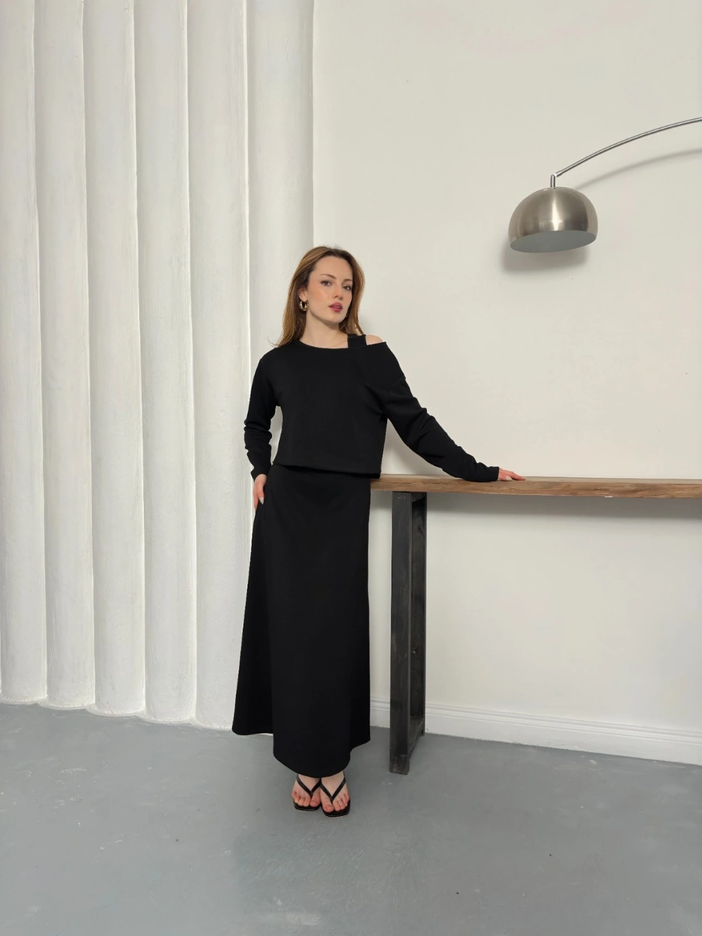 Tek Omuz Croplu Elbiseli Modal Takım Siyah