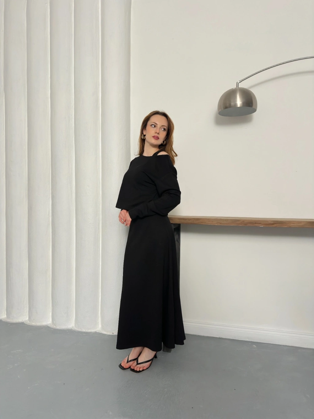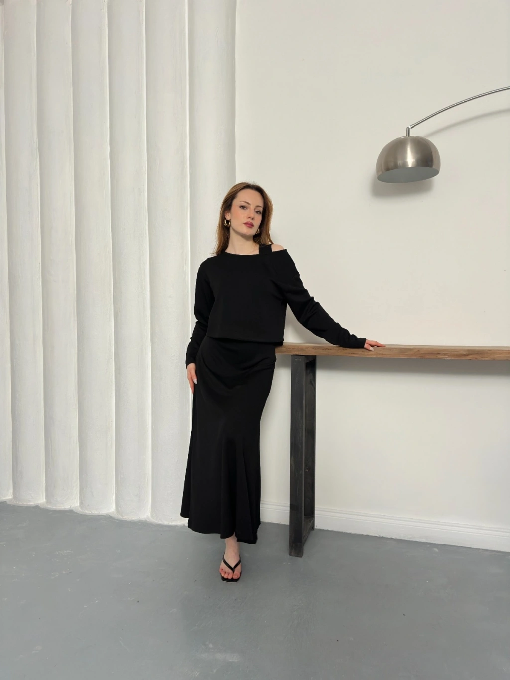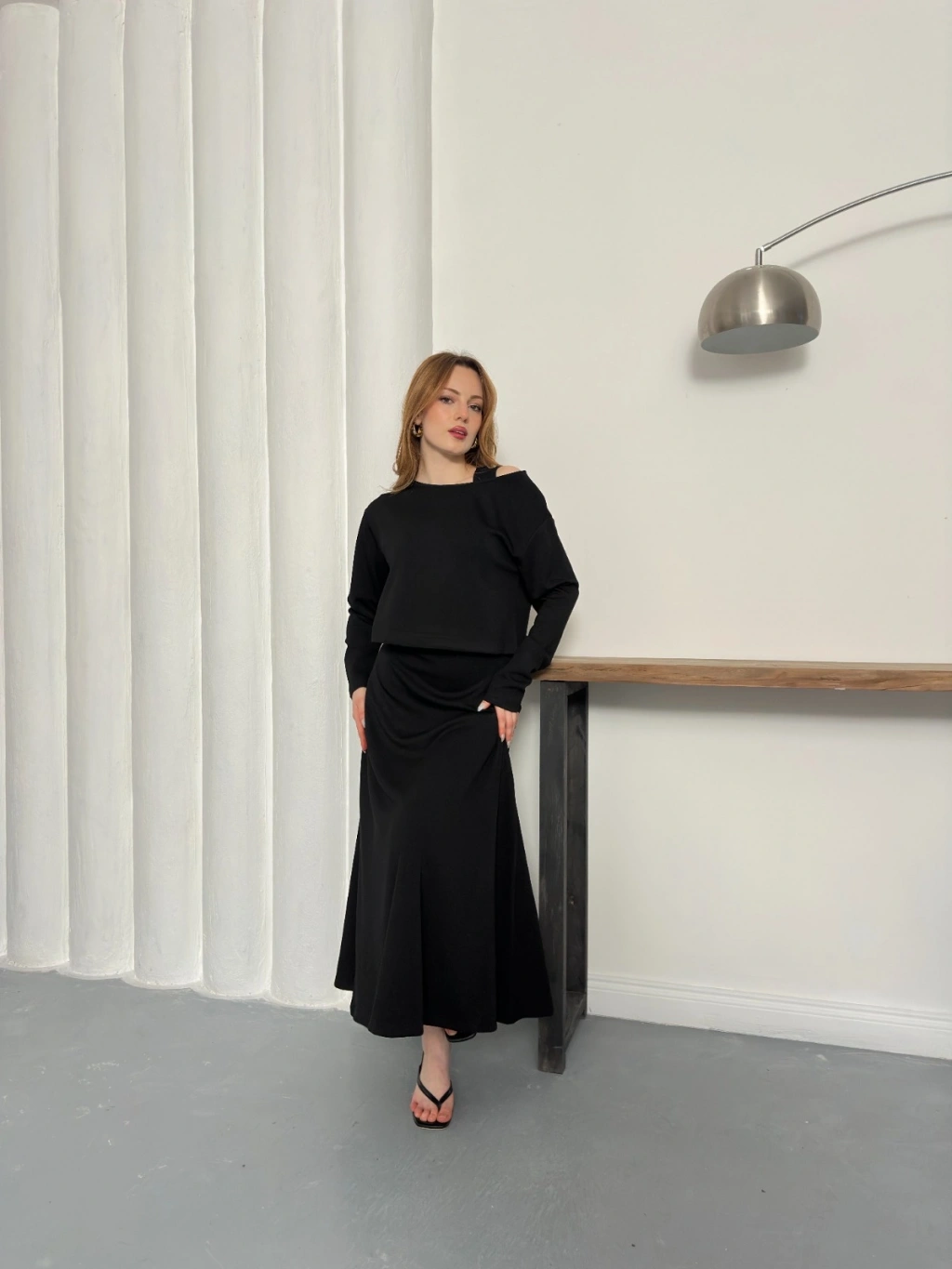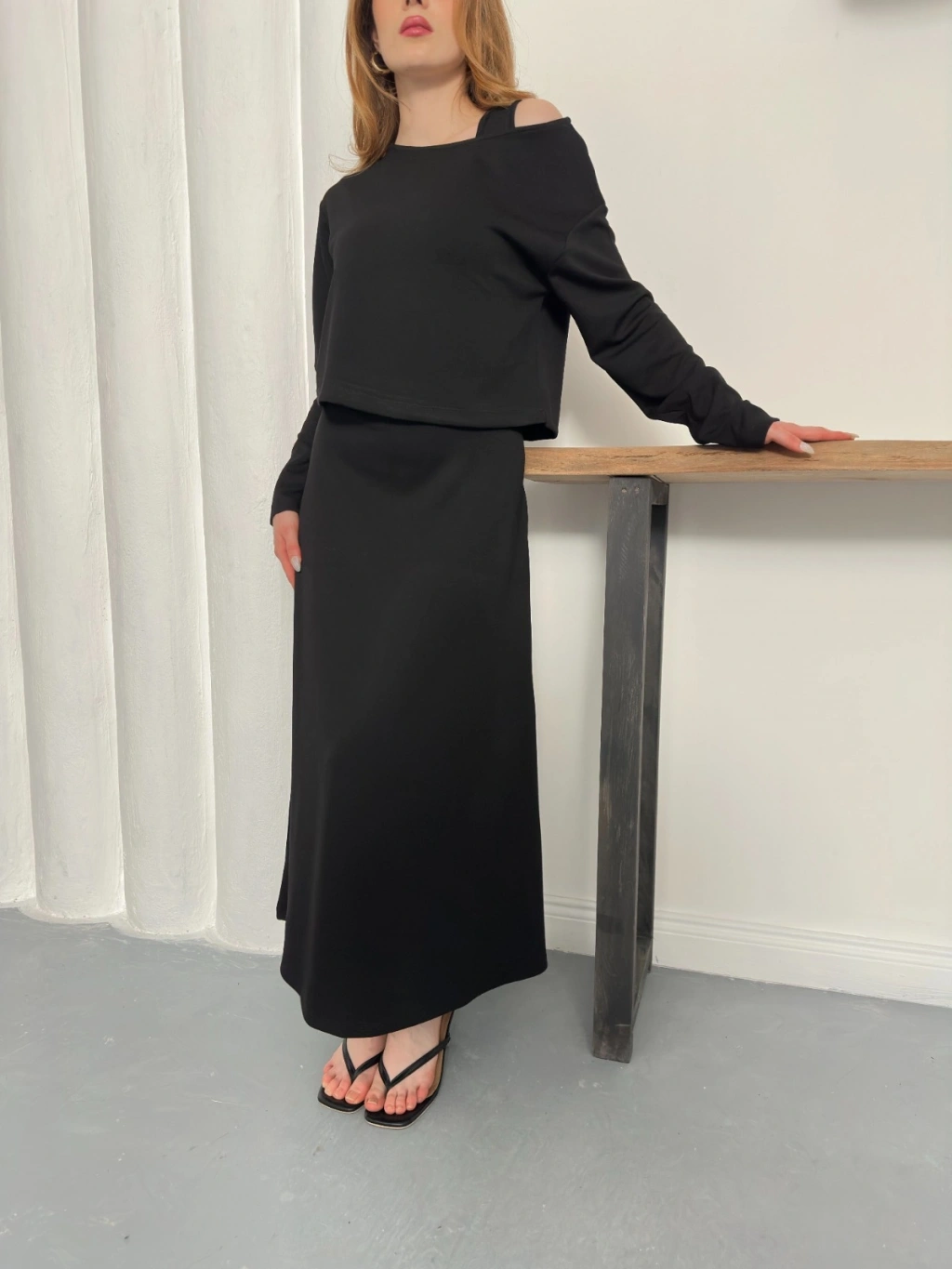 Tek Omuz Croplu Elbiseli Modal Takım Siyah