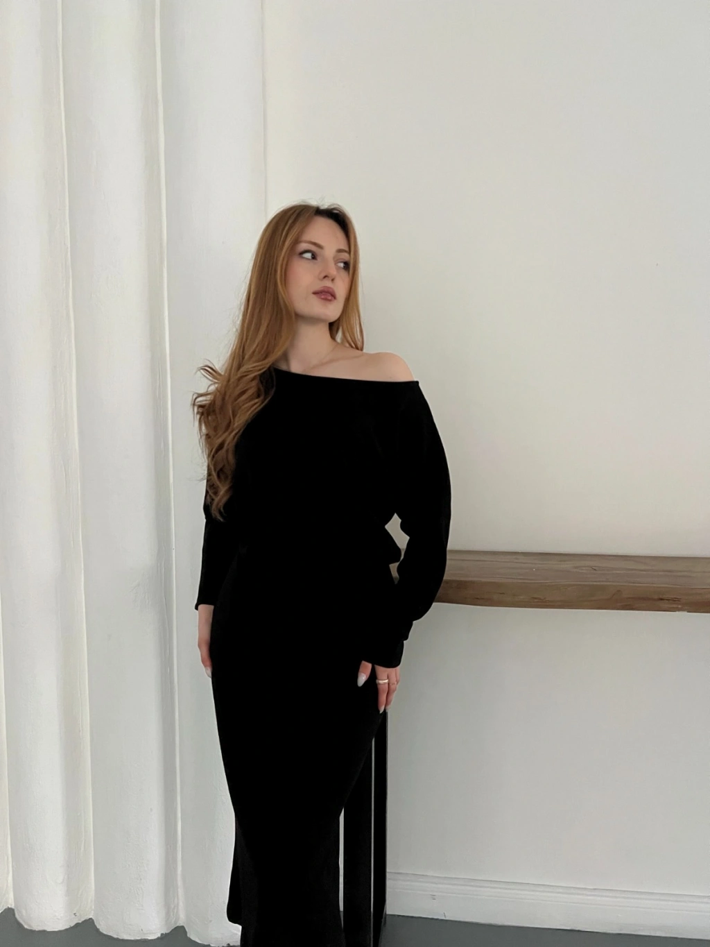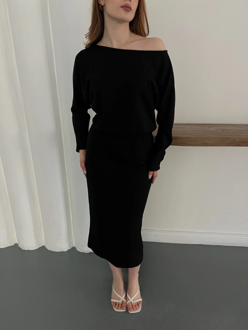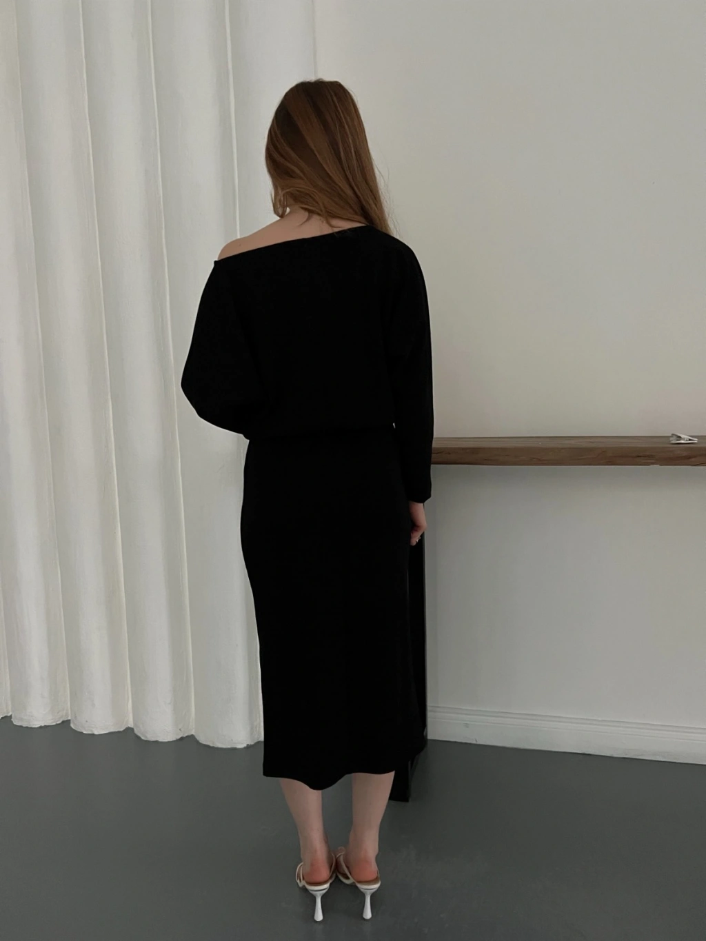 Tek Omuz Yarasa Kol Uzun Kol Elbise