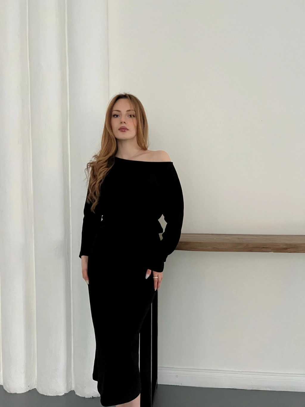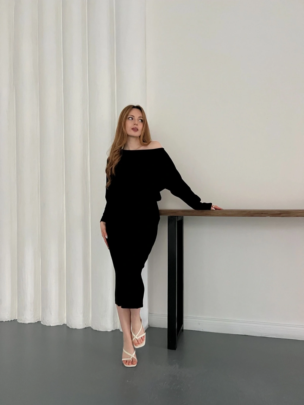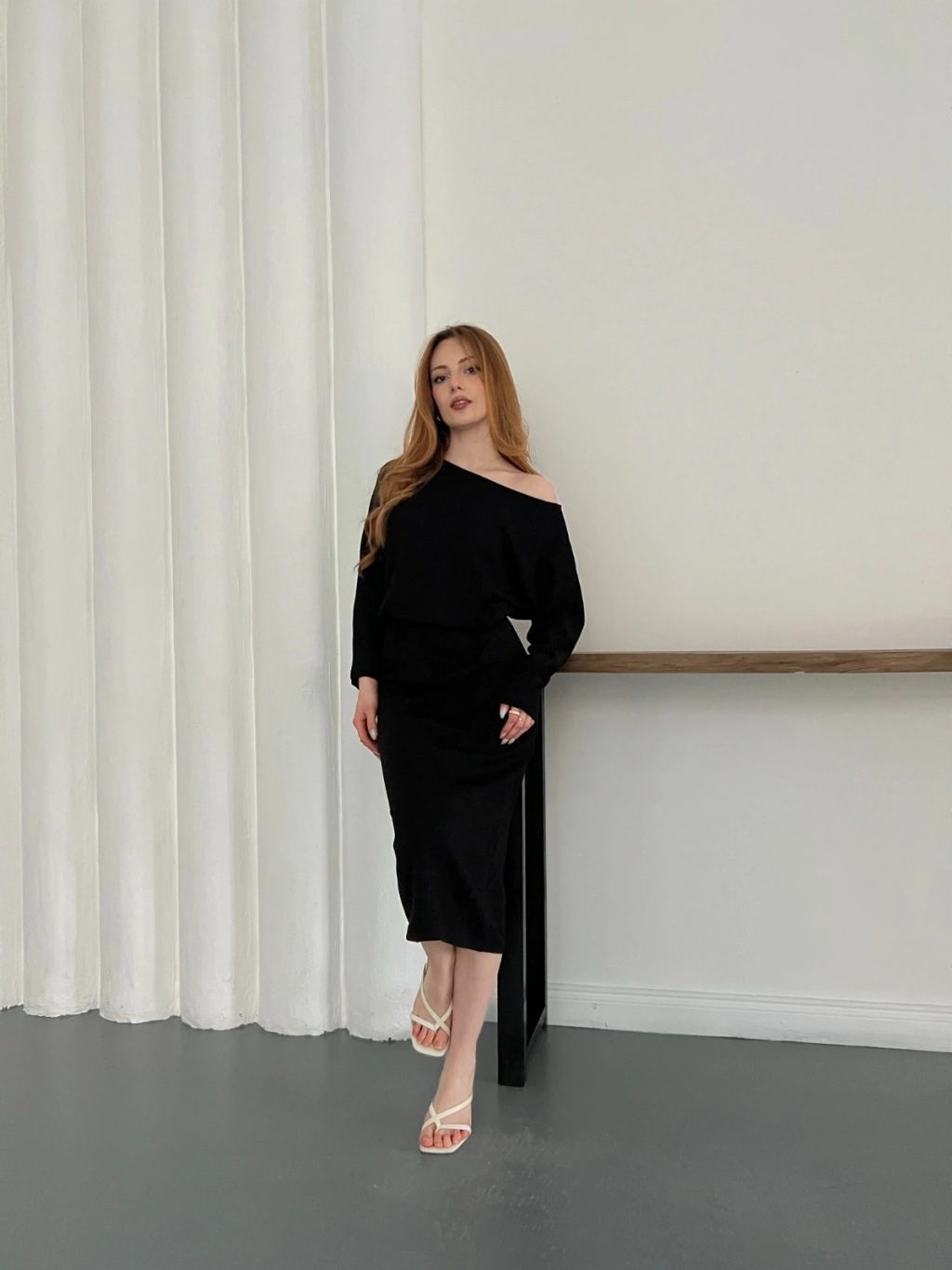 Tek Omuz Yarasa Kol Uzun Kol Elbise