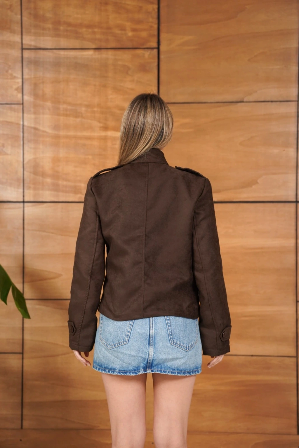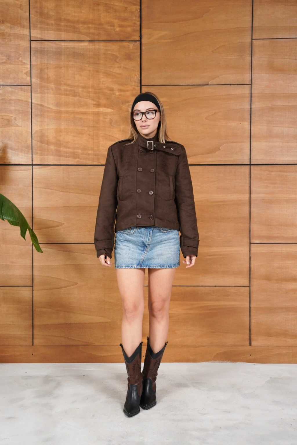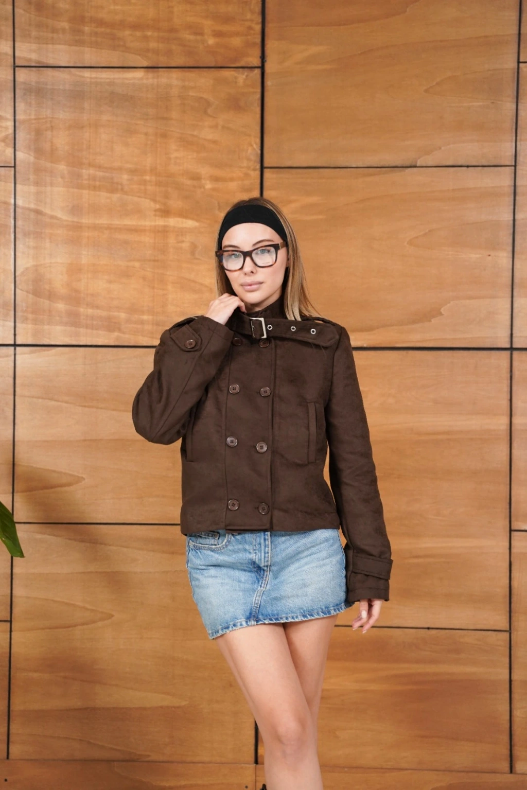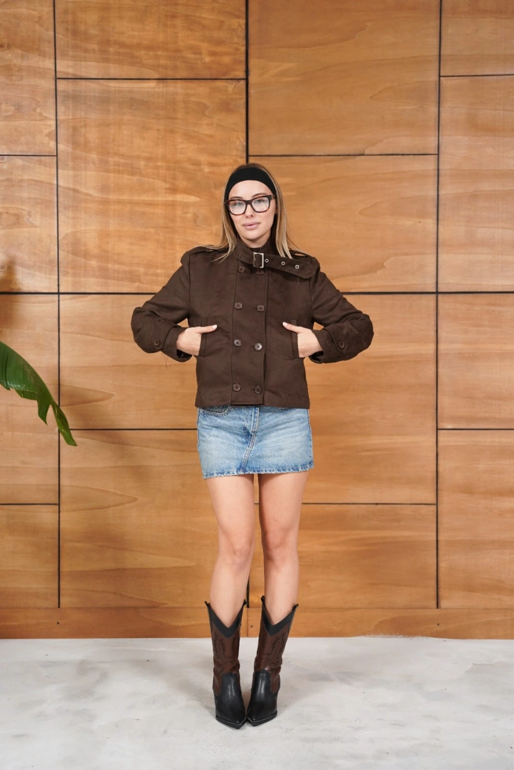 Yaka Kemer Detaylı Nubuk Ceket Kahve