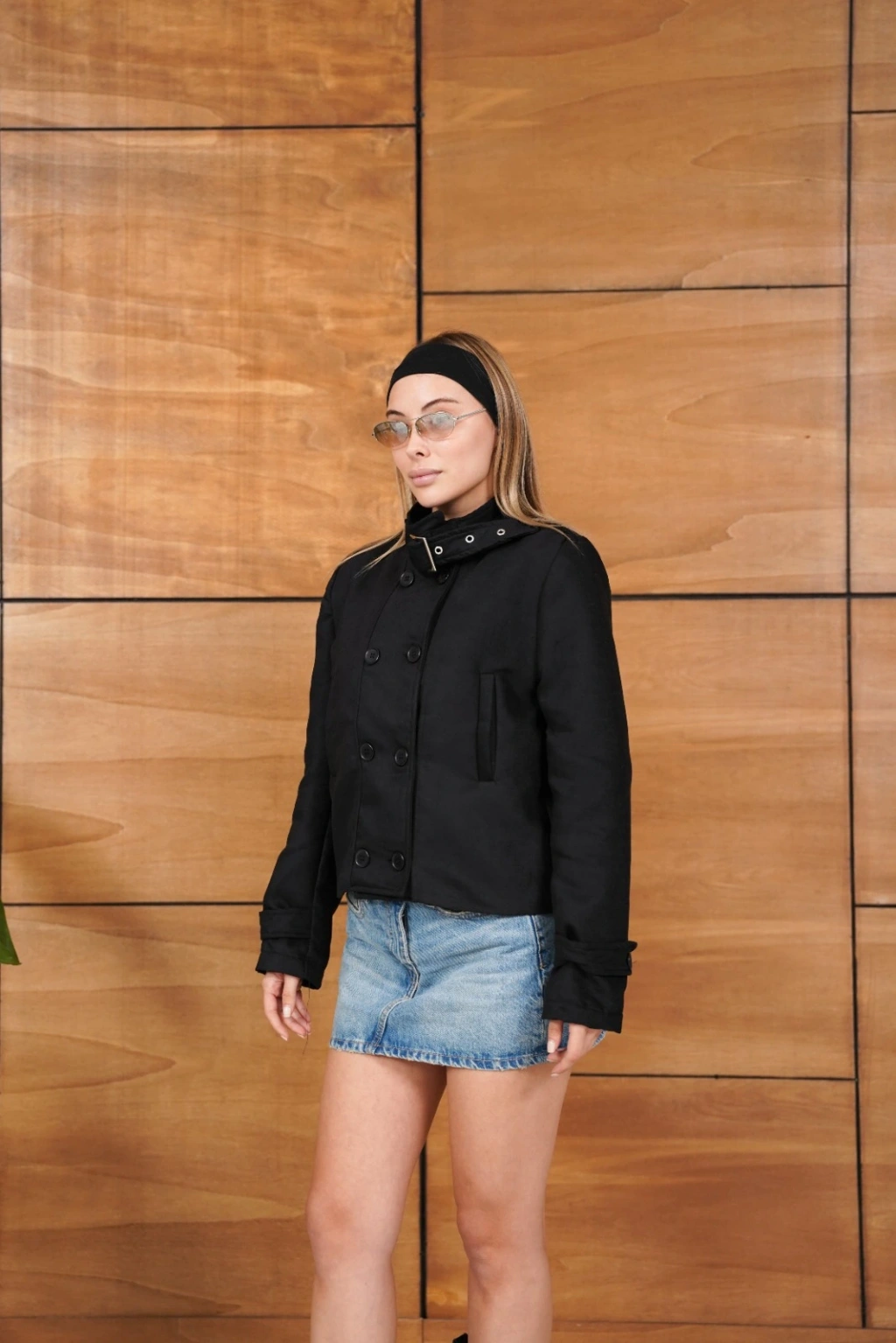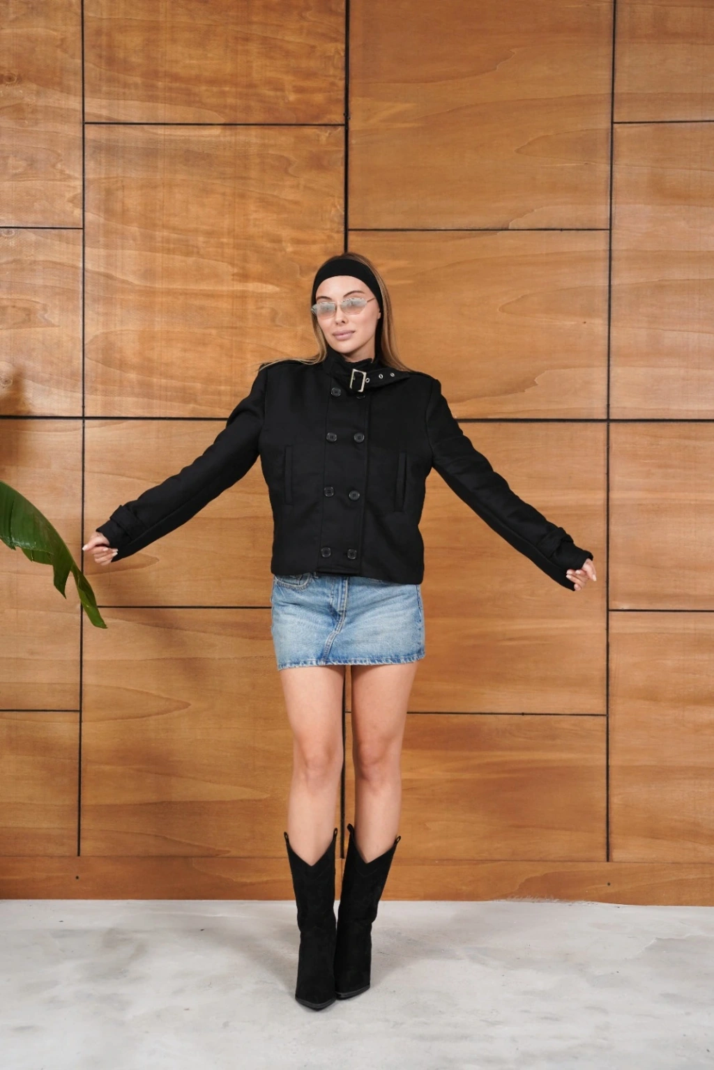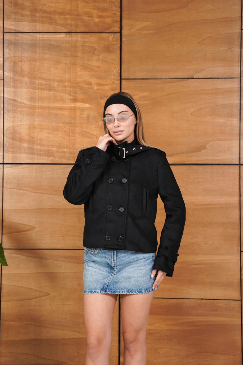 Yaka Kemer Detaylı Nubuk Ceket Siyah