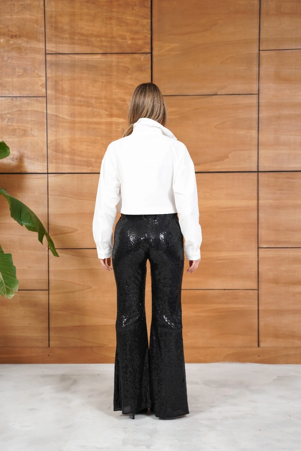 Yüksek Bel Şık Gömlek-Pantolon İkili Set Siyah